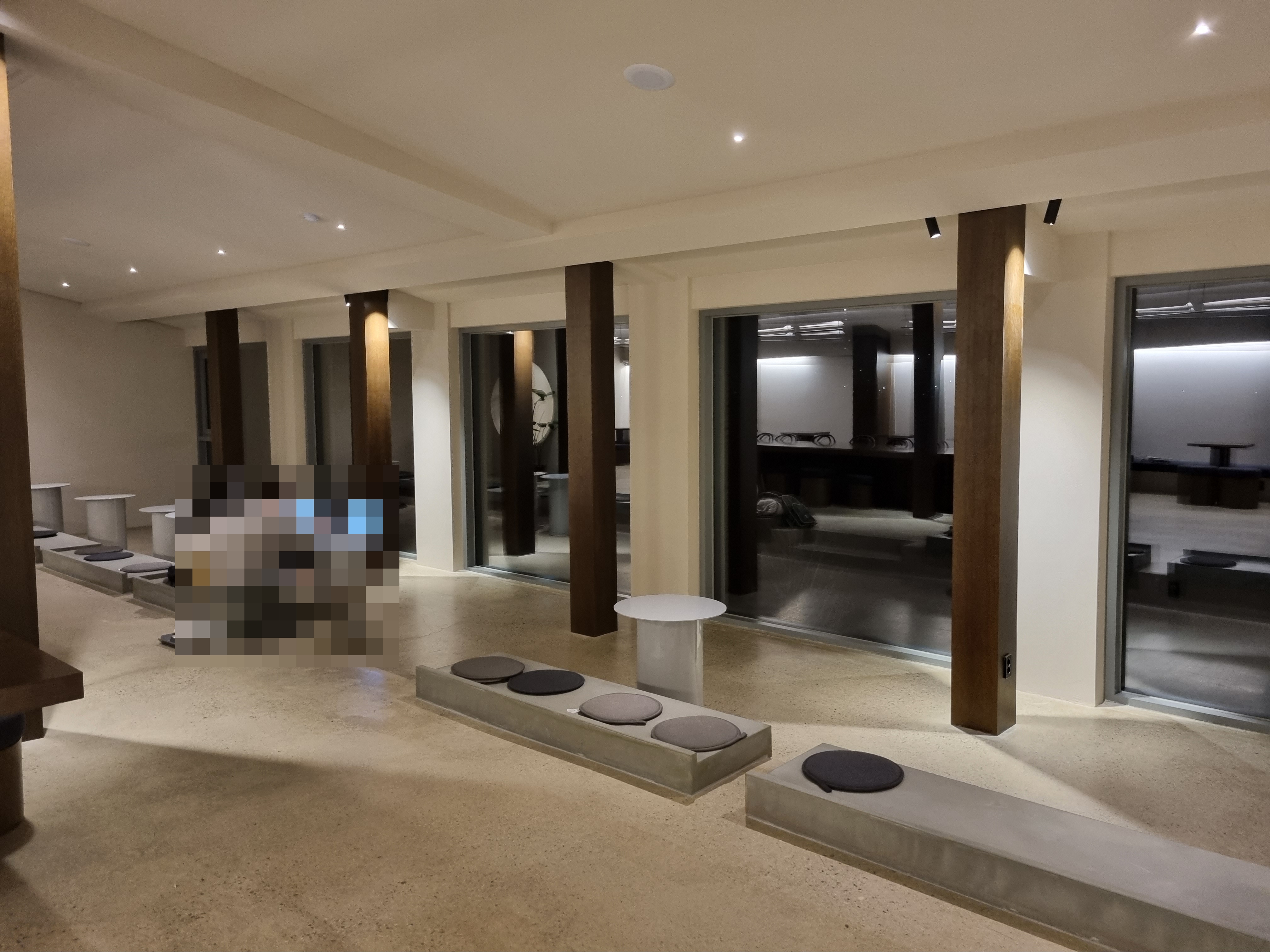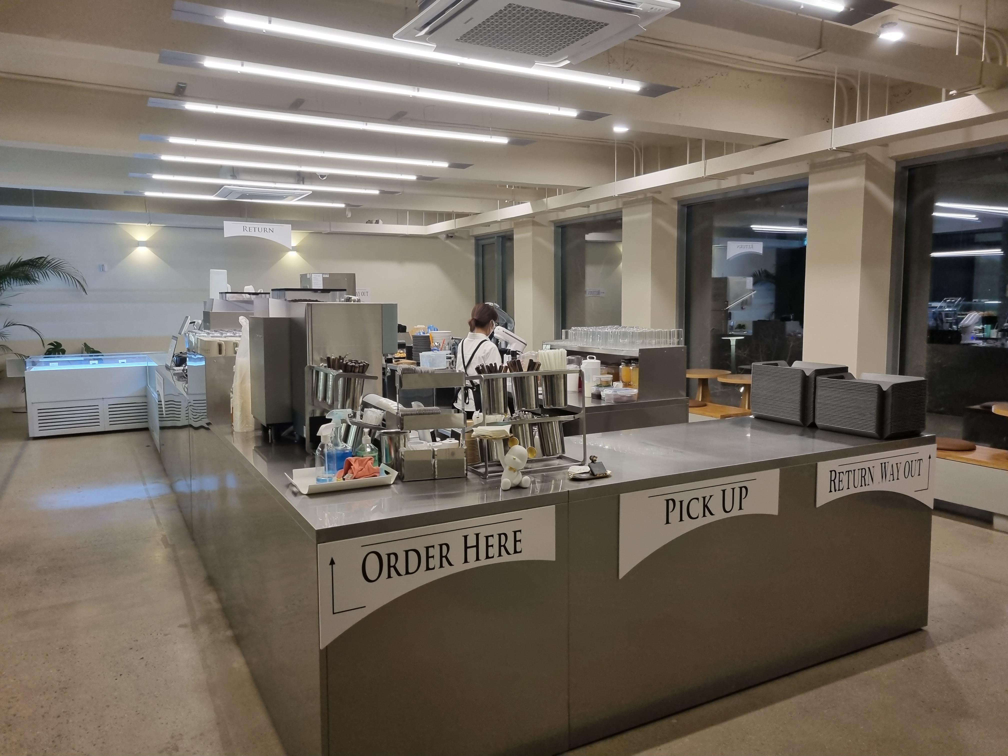 보여지는 자리 외에도 반대편쪽엔 일자형 탁자 테이블과 다양한 테이블이 배치되어 있습니다.