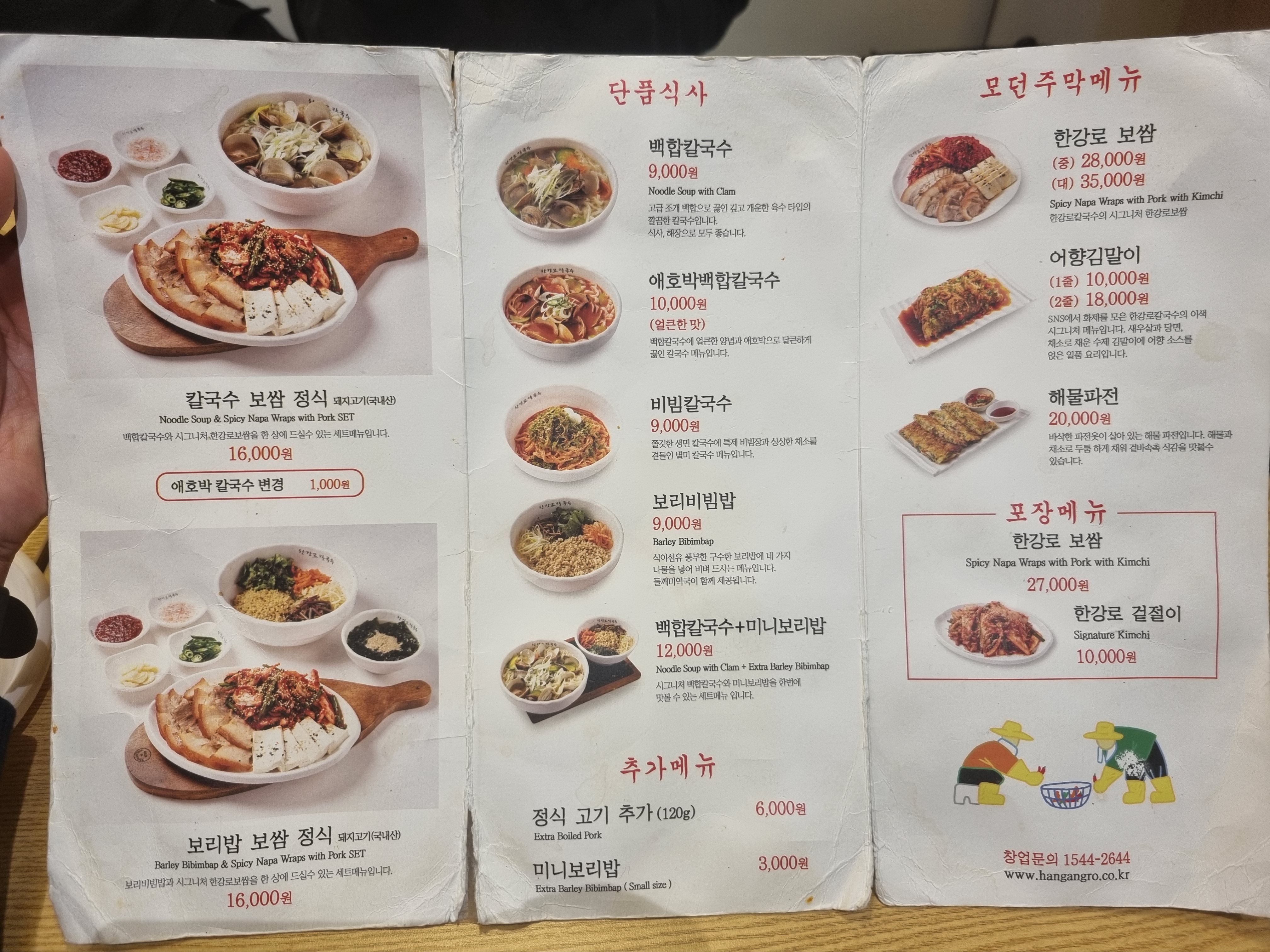 판교 현대 백화점에서 맛있게 먹었던 한강로 칼국수가 이곳에도 있어서 재방문 했습니다.