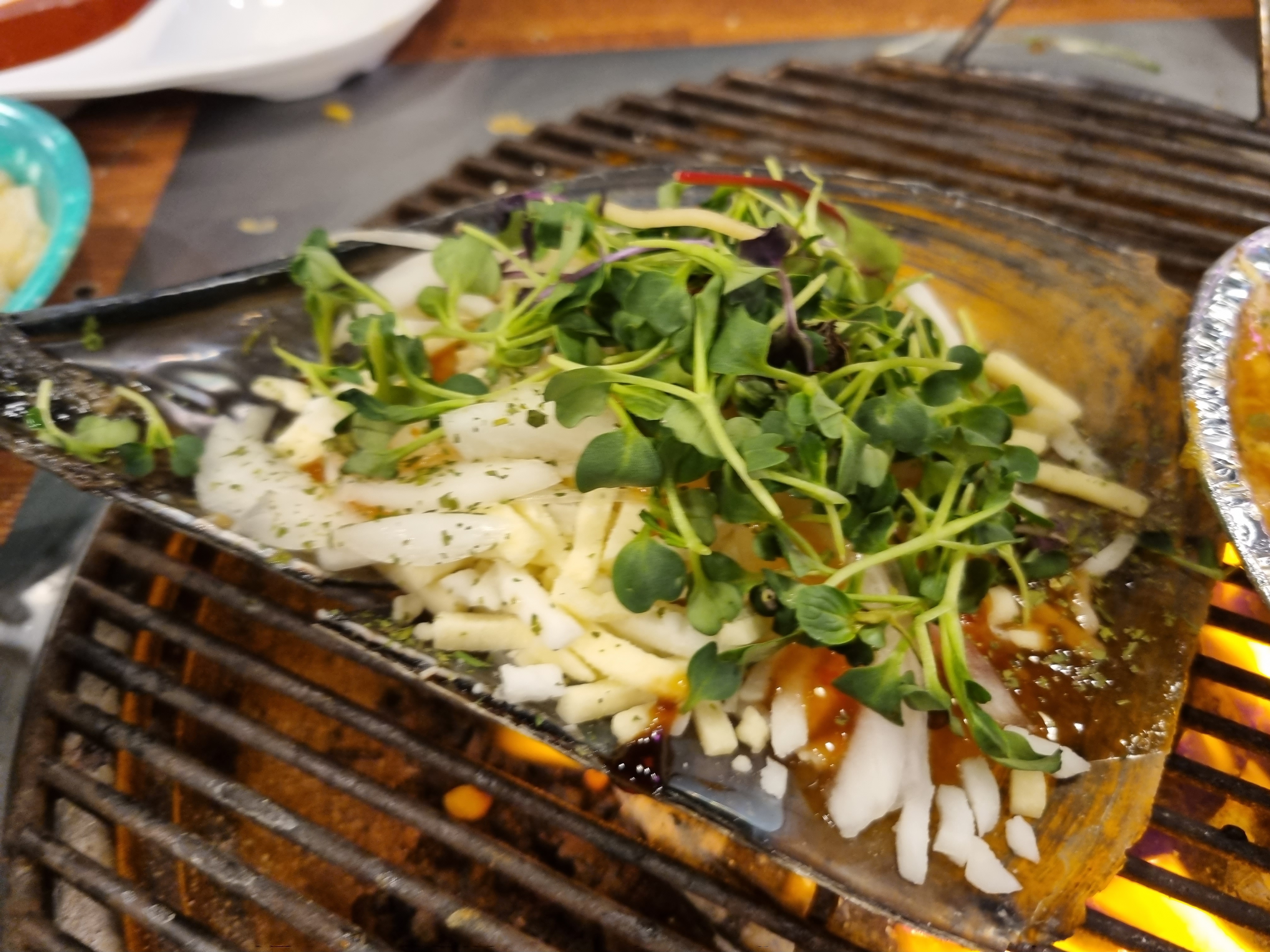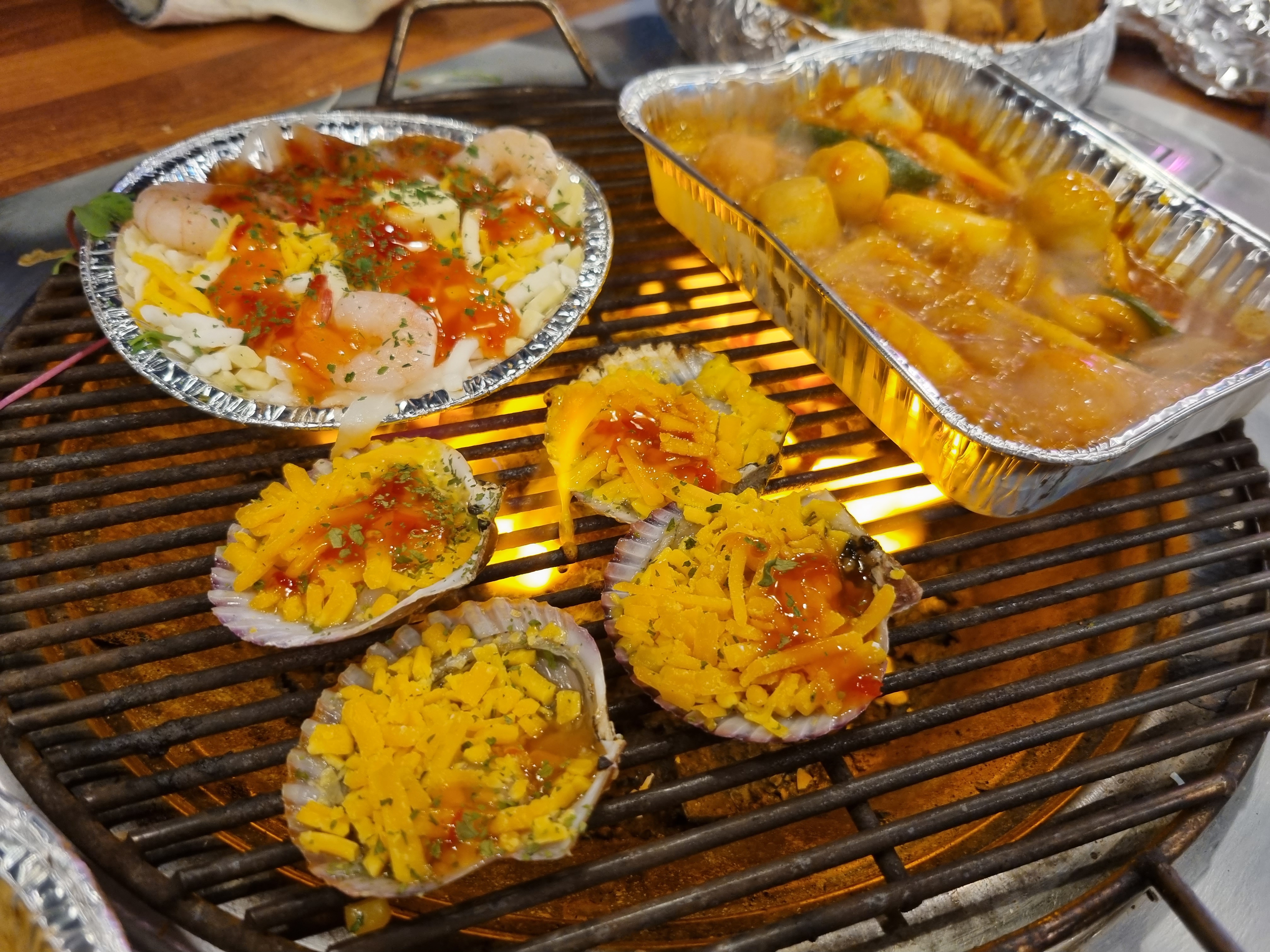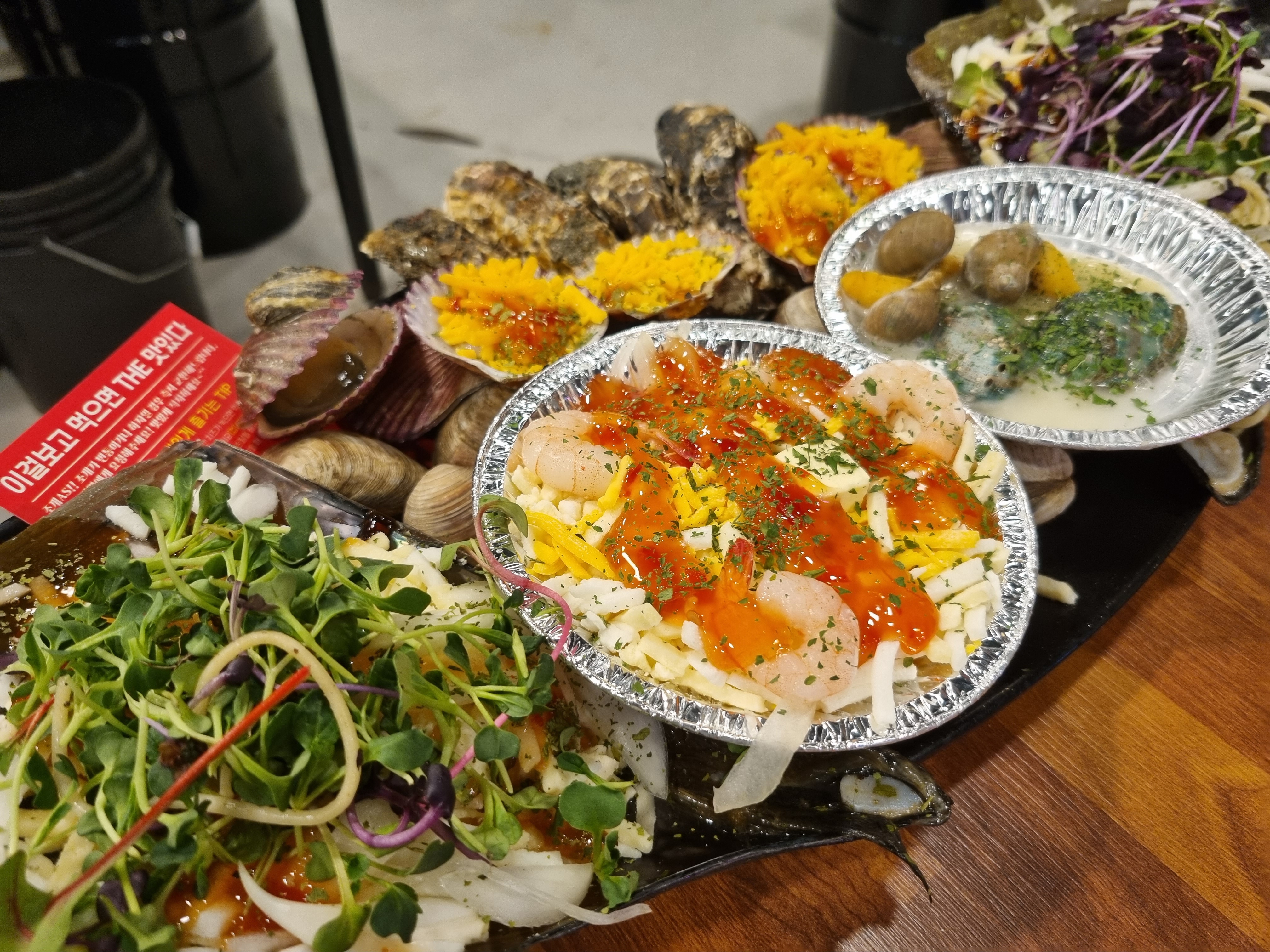 주문한 조개구이 세트가 나왔습니다.