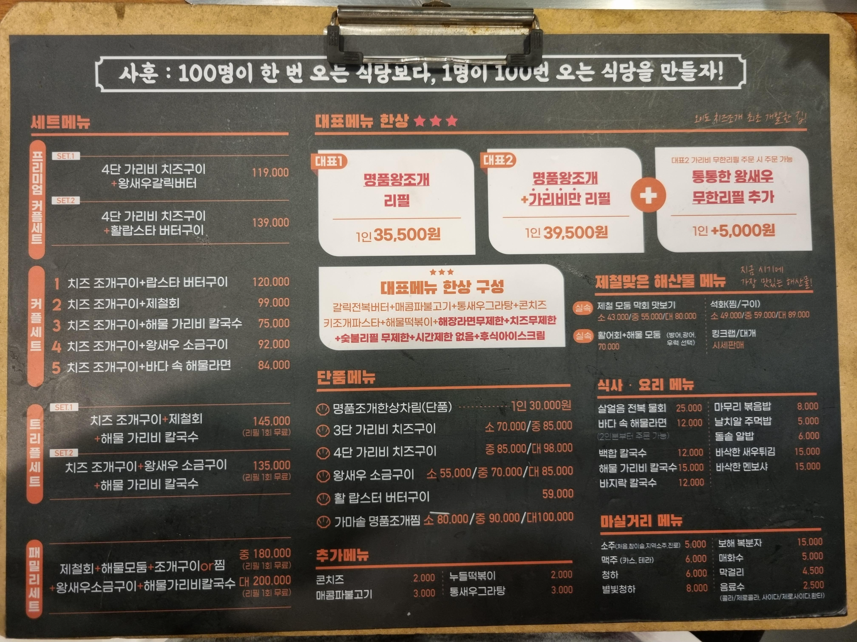 조개포차 메뉴판입니다.