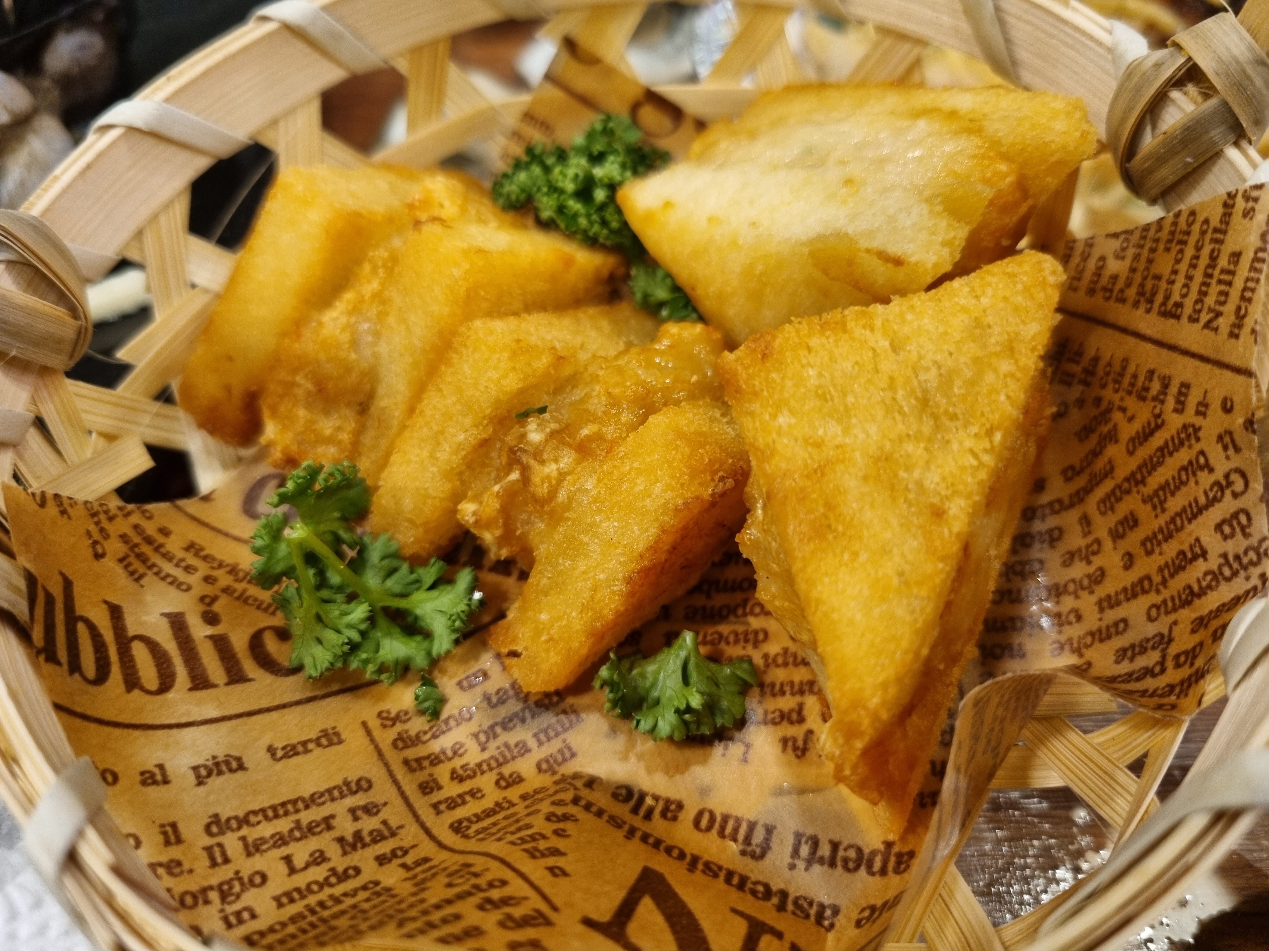 네이버로 예약을 하고 방문한 뒤 조개구이를 배부르게 먹고 있다보면 이렇게 멘보샤도 나옵니다.