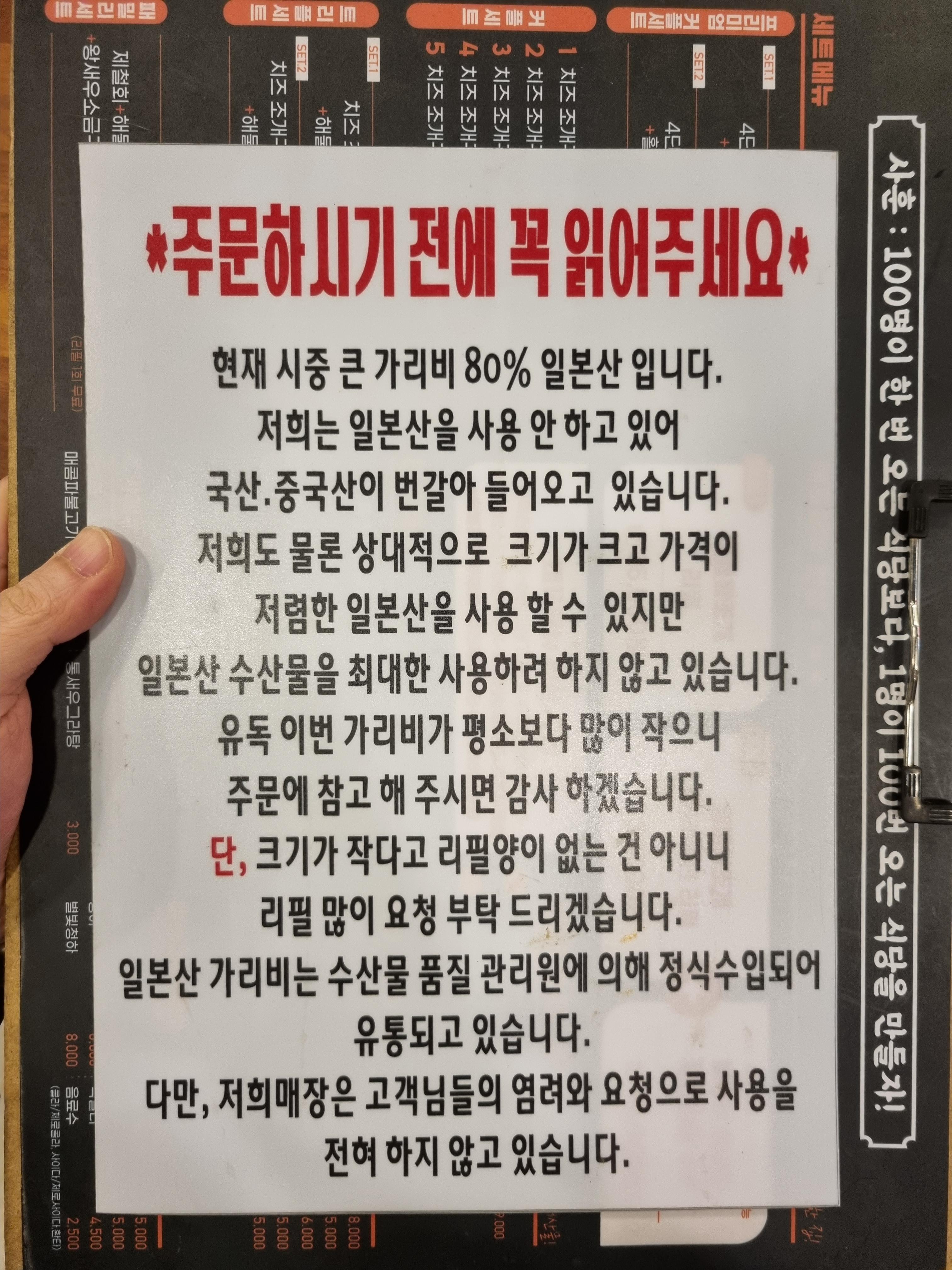 일본산 가리비는 최대한 사용하지 않으려고 한다네요.