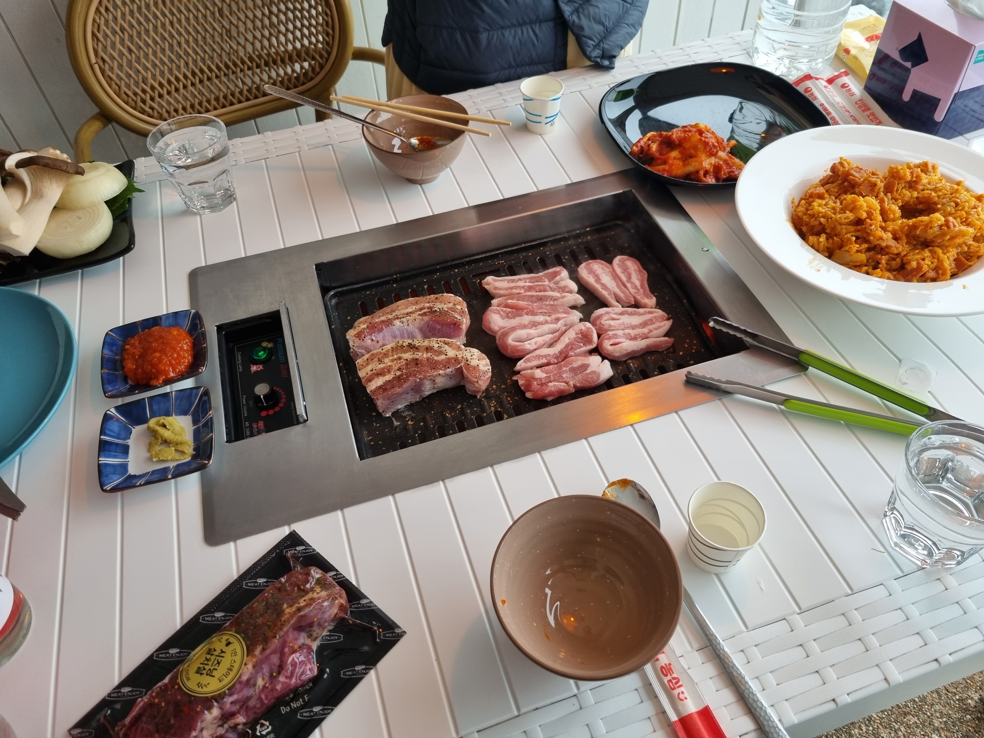 다만, 숙소안에서 고기를 굽는 행위는 할 수 없으며 자이글 (?)을 빌리셔서 고기를 구워야 합니다.