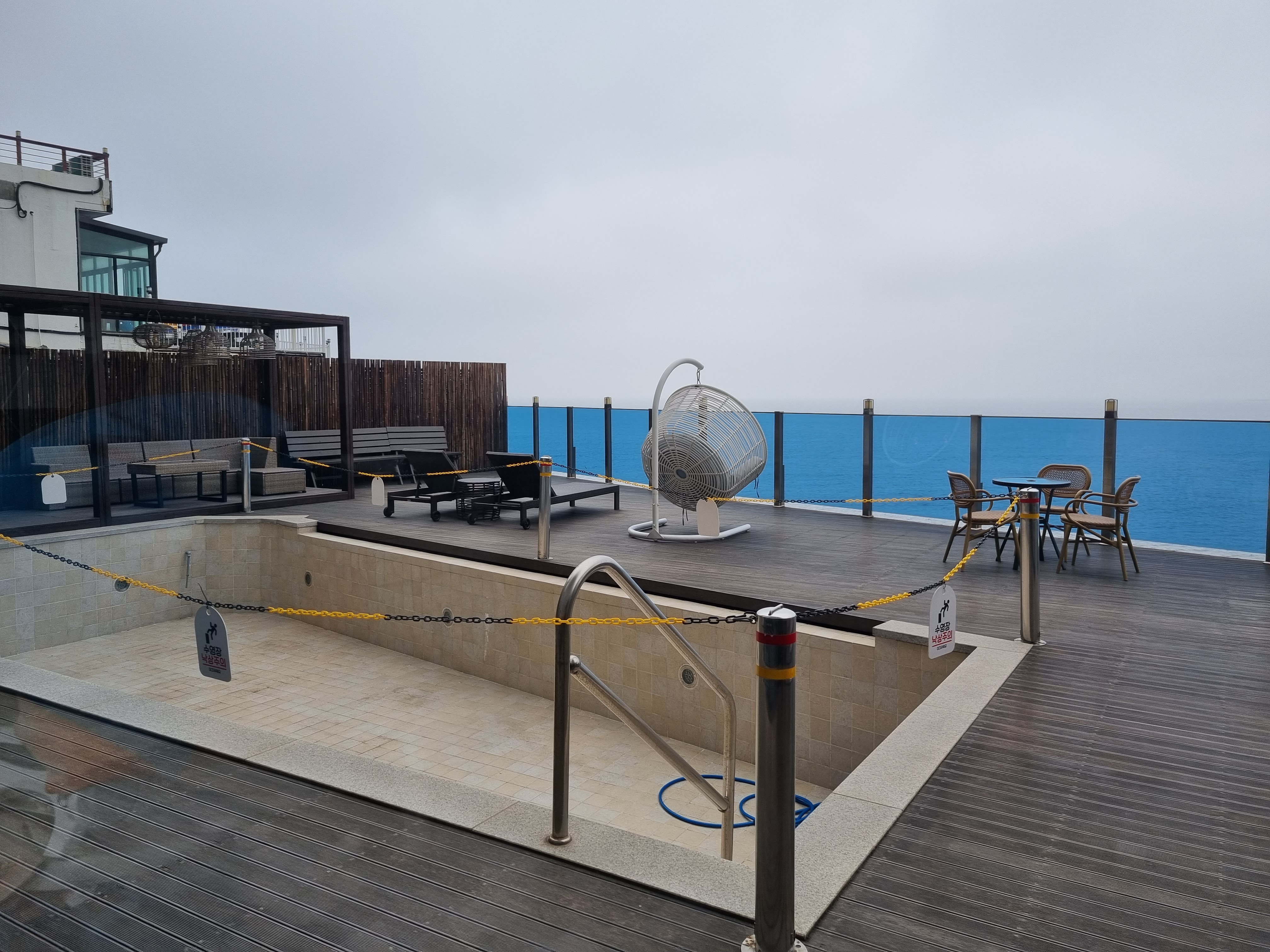 오션뷰를 바라보며 술 한 잔할 수 있는 작은 테이블과 의자도 있습니다.