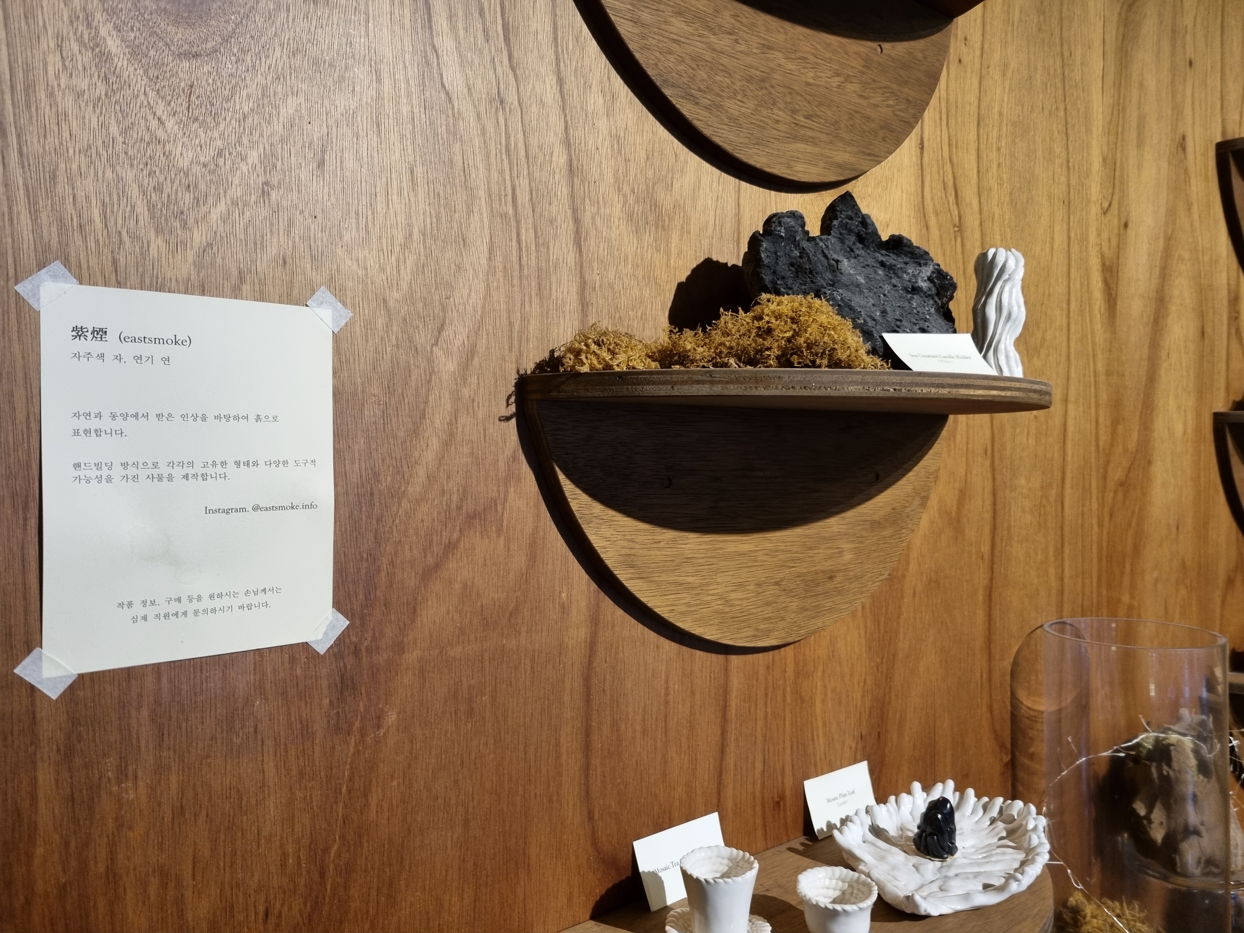 한 쪽 벽면에는 이렇게 돌덩이(?) 작품이 있으며 작품 정보나 구매를 원하시는 경우 직원에게 문의하시면 답변을 받으실 수 있습니다.