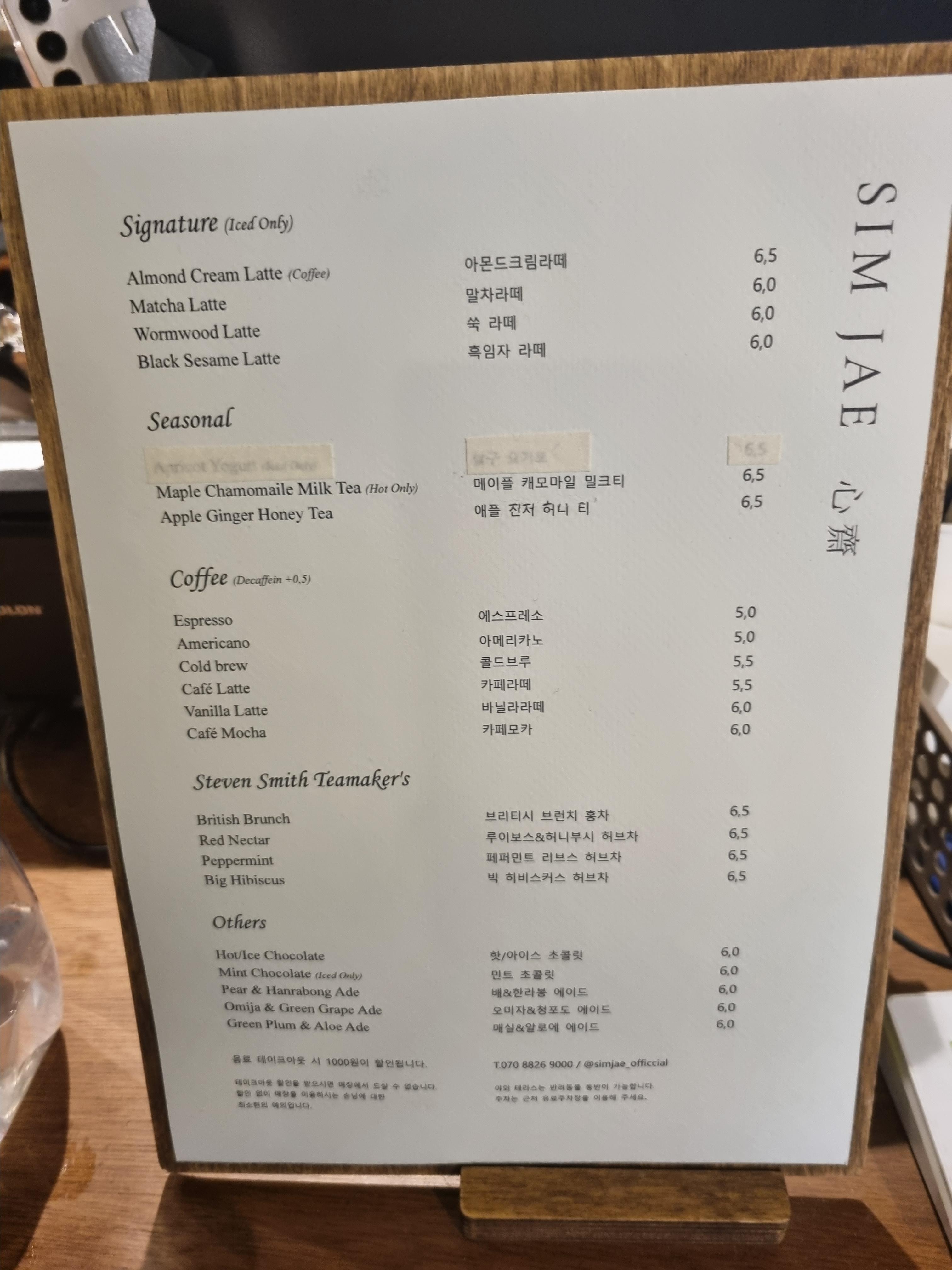 시끄럽고 정신없는 분위기가 아닌 조용하고 여유를 즐길 수 있는 카페 심재를 추천합니다.