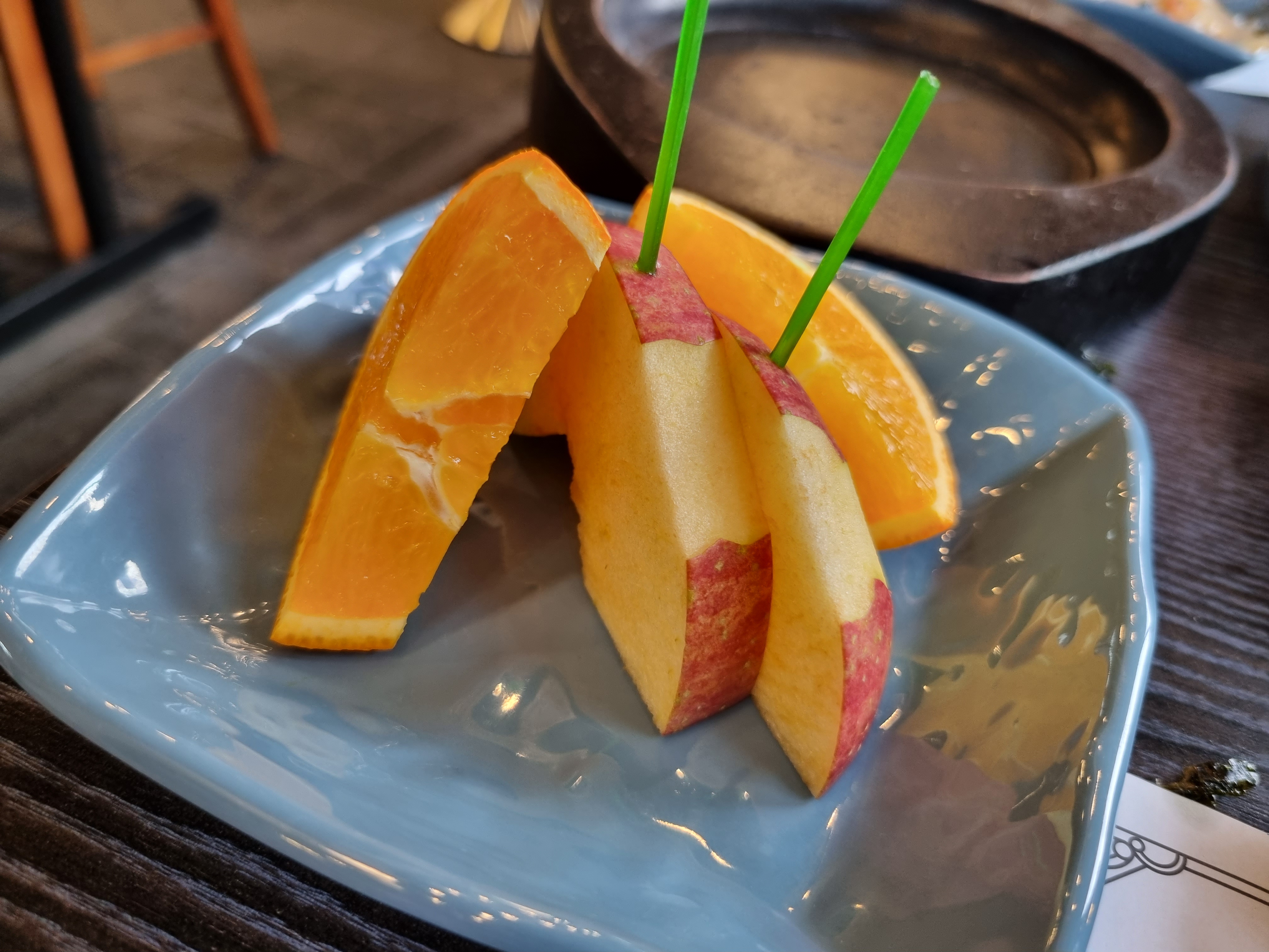 고기를 어느정도 다 먹고 나면 직원분께서 이렇게 후식으로 사과와 오렌지 등 디저트를 주십니다.