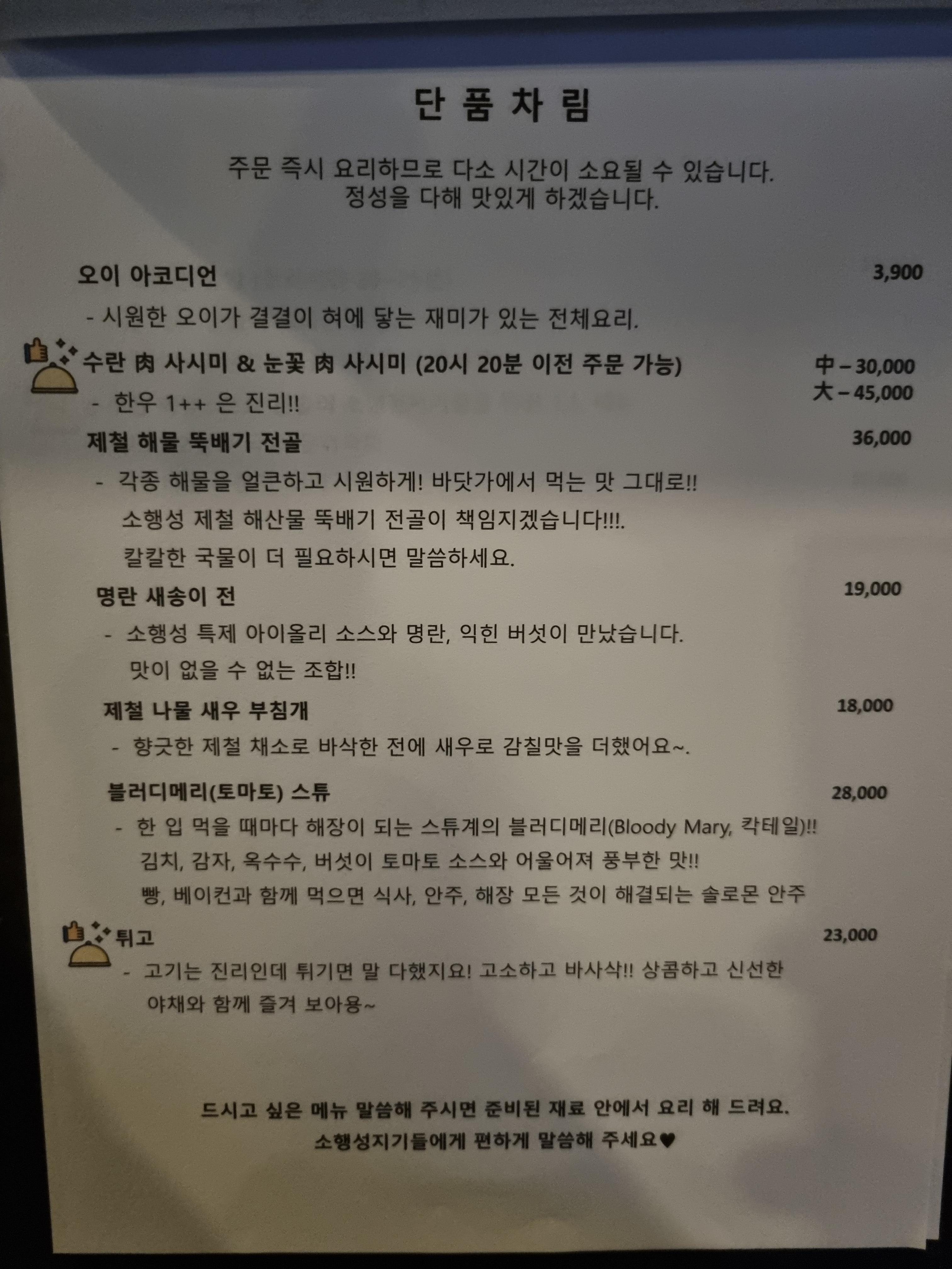 밥집이 아닌 술집이며 1인 1주류 필수 입니다.
