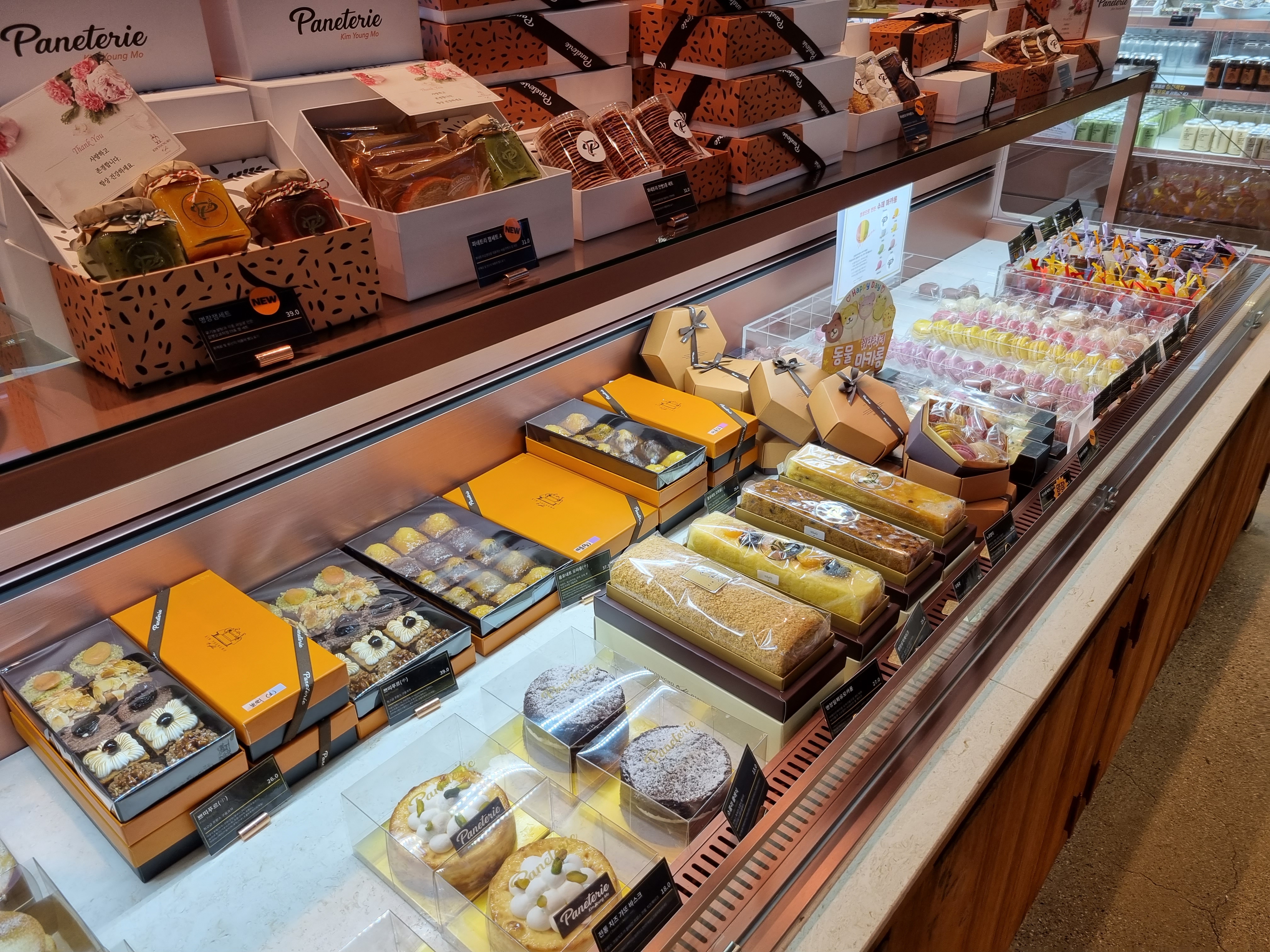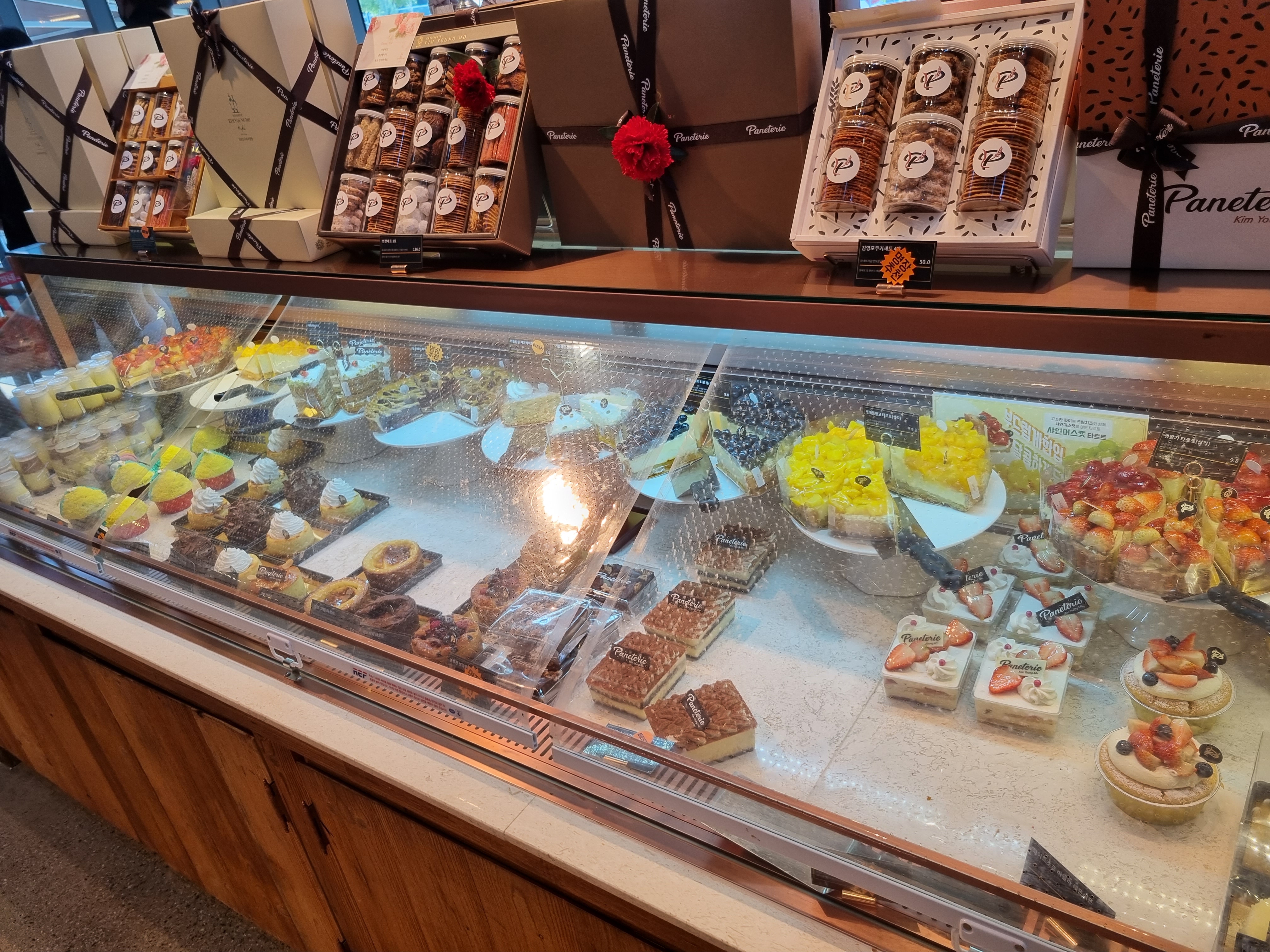 이렇게 한쪽에는 다양한 종류의 케이크와 선물하기 좋은 빵들이 진열되어 있습니다.