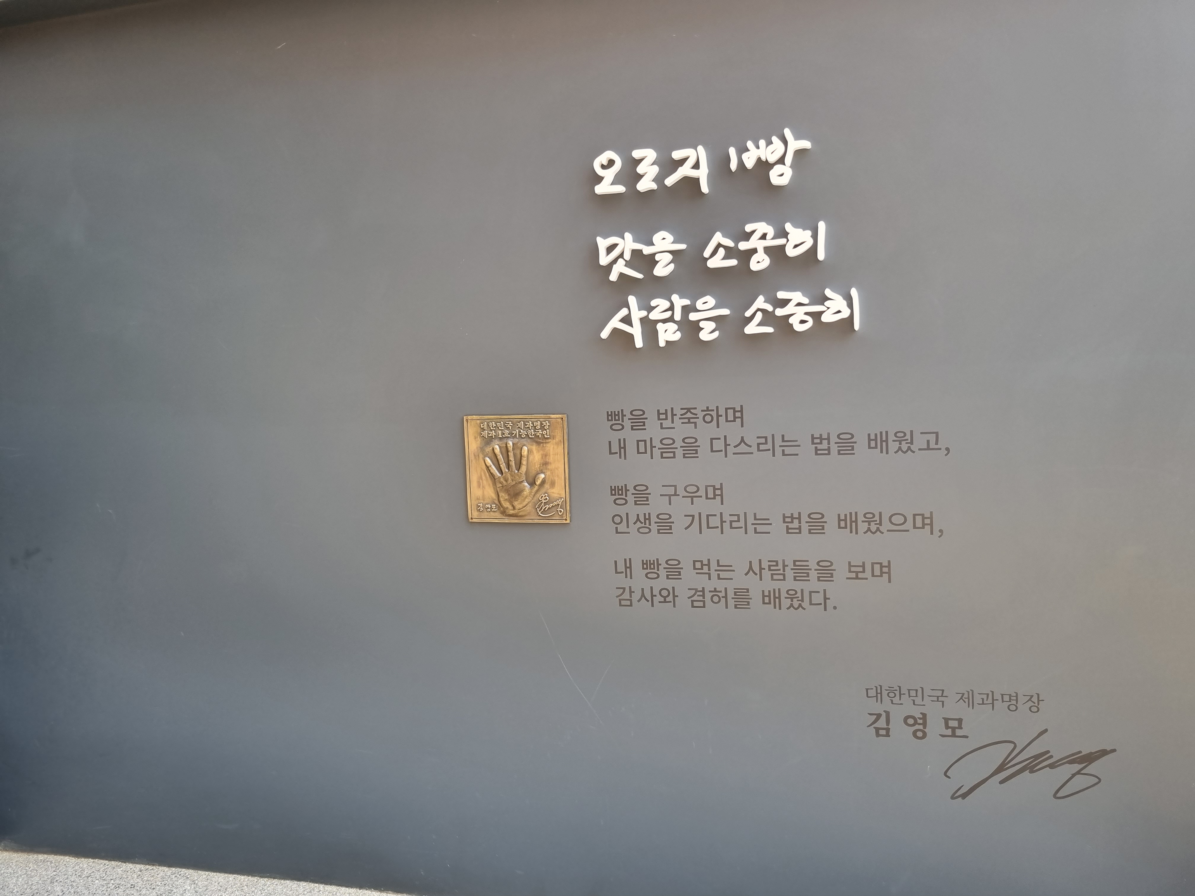 대한민국 제과명장 김영모 님의 사인과 핸드프린팅이 눈에 띄네요.