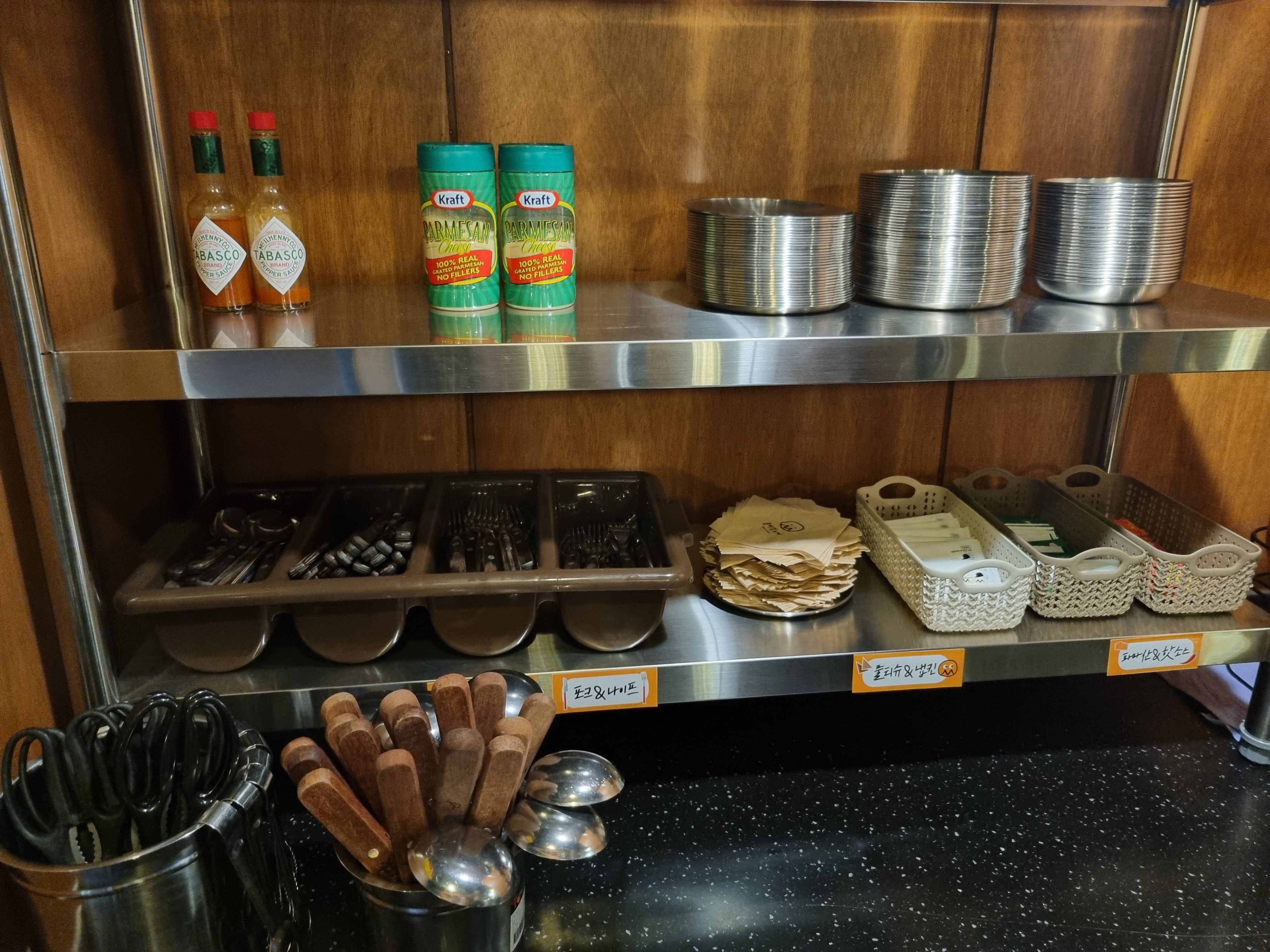 셀프로 이루어지는 것이 많다보니 이렇게 구석에 셀프 바가 있습니다.