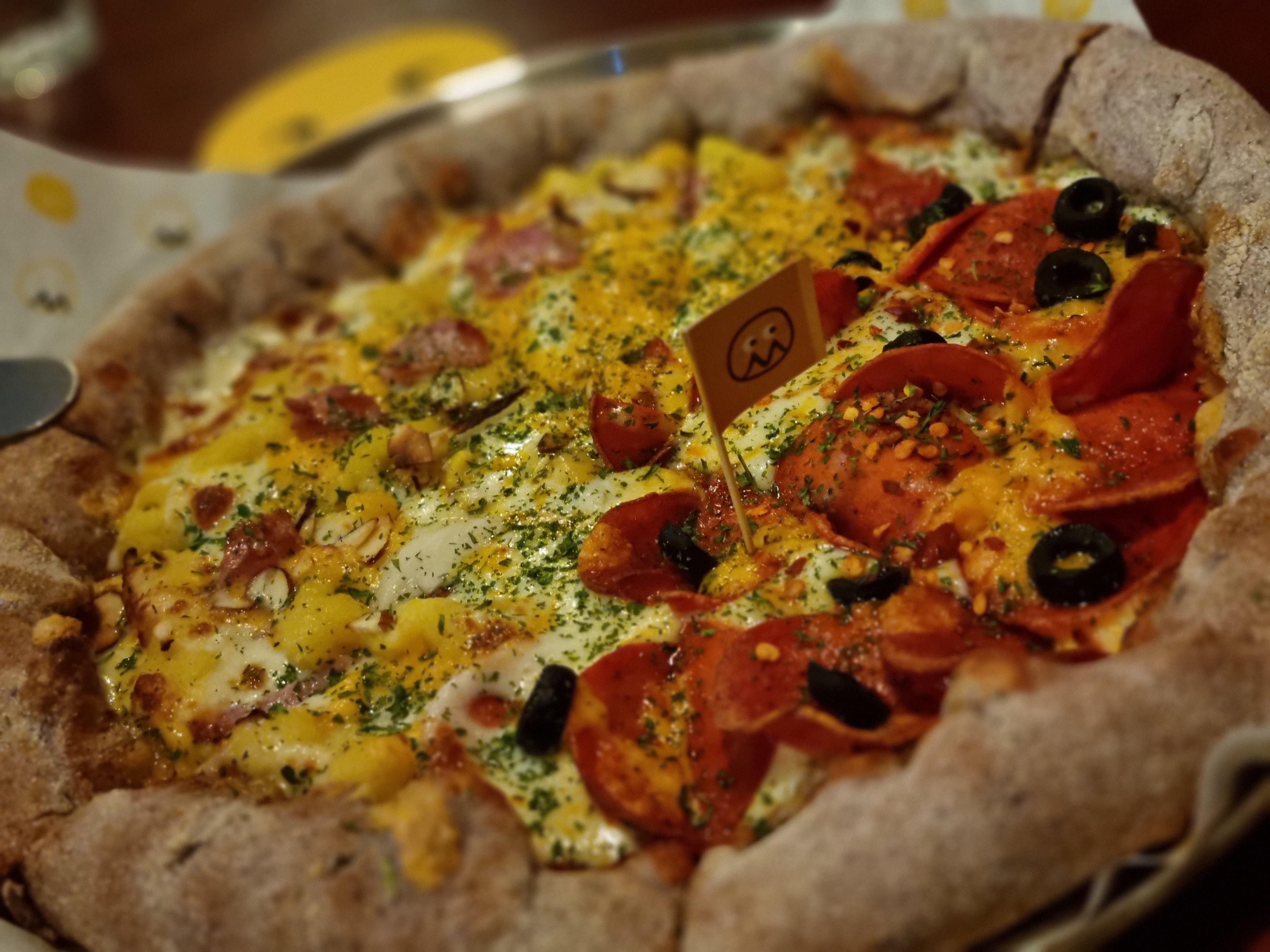 저희는 하프 & 하프 피자를 주문했고 2가지 맛은 페퍼로니와 고구마를 택했습니다.