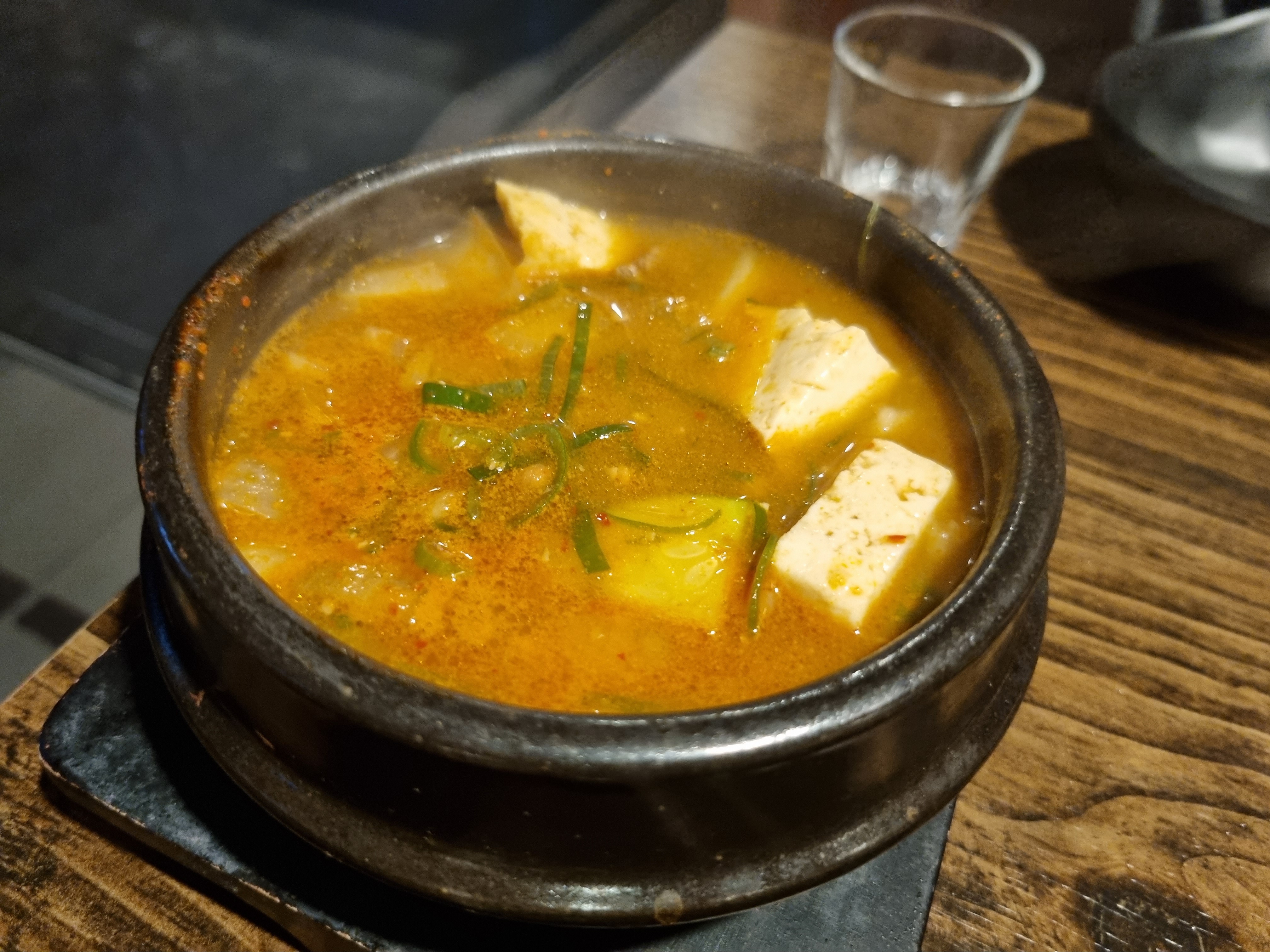 고기를 주문하면 된장찌개가 기본으로 나오는데 이 된장찌개도 칼칼한 맛이 나서 맛있습니다.