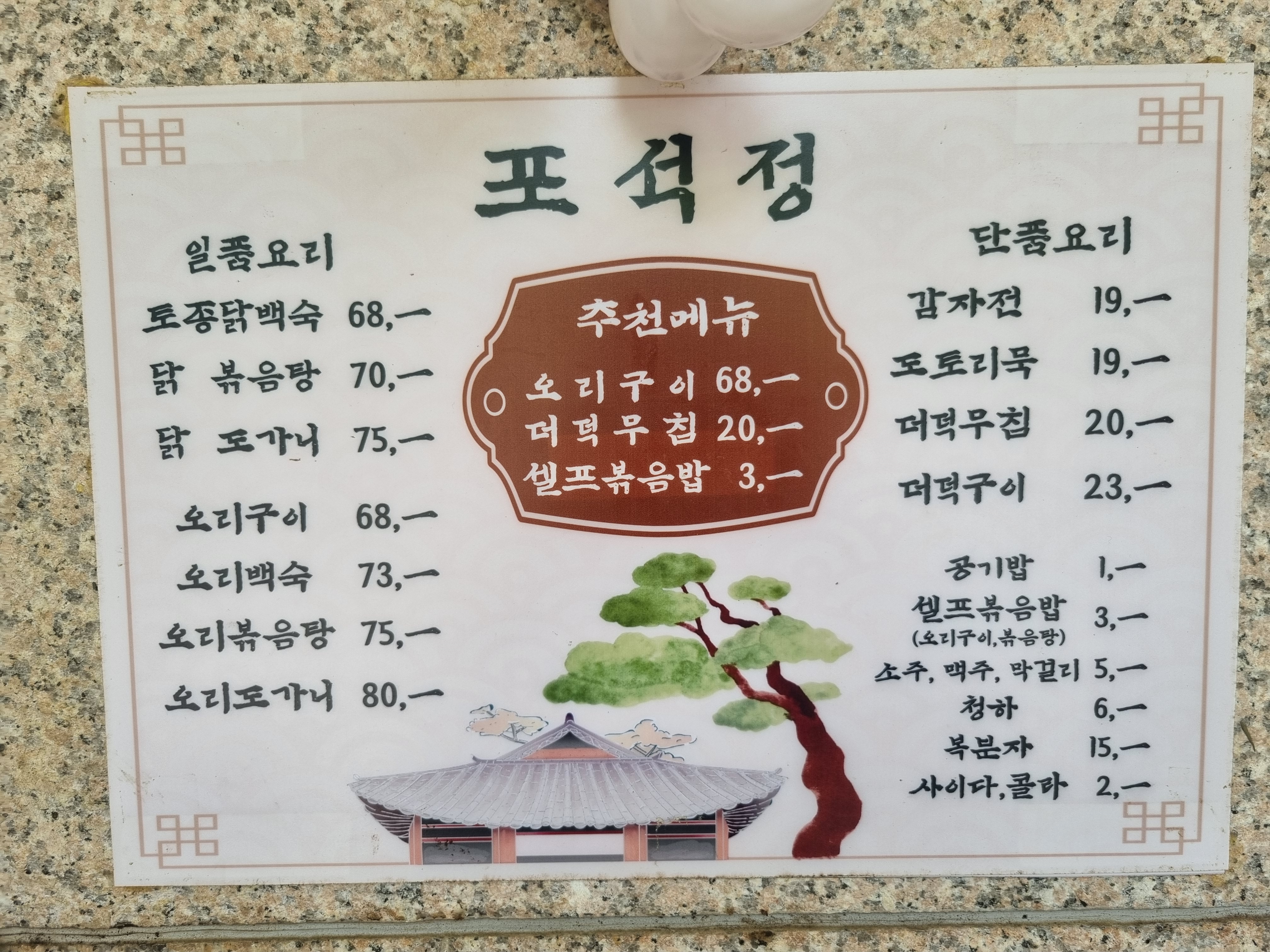 포석정 메뉴입니다.