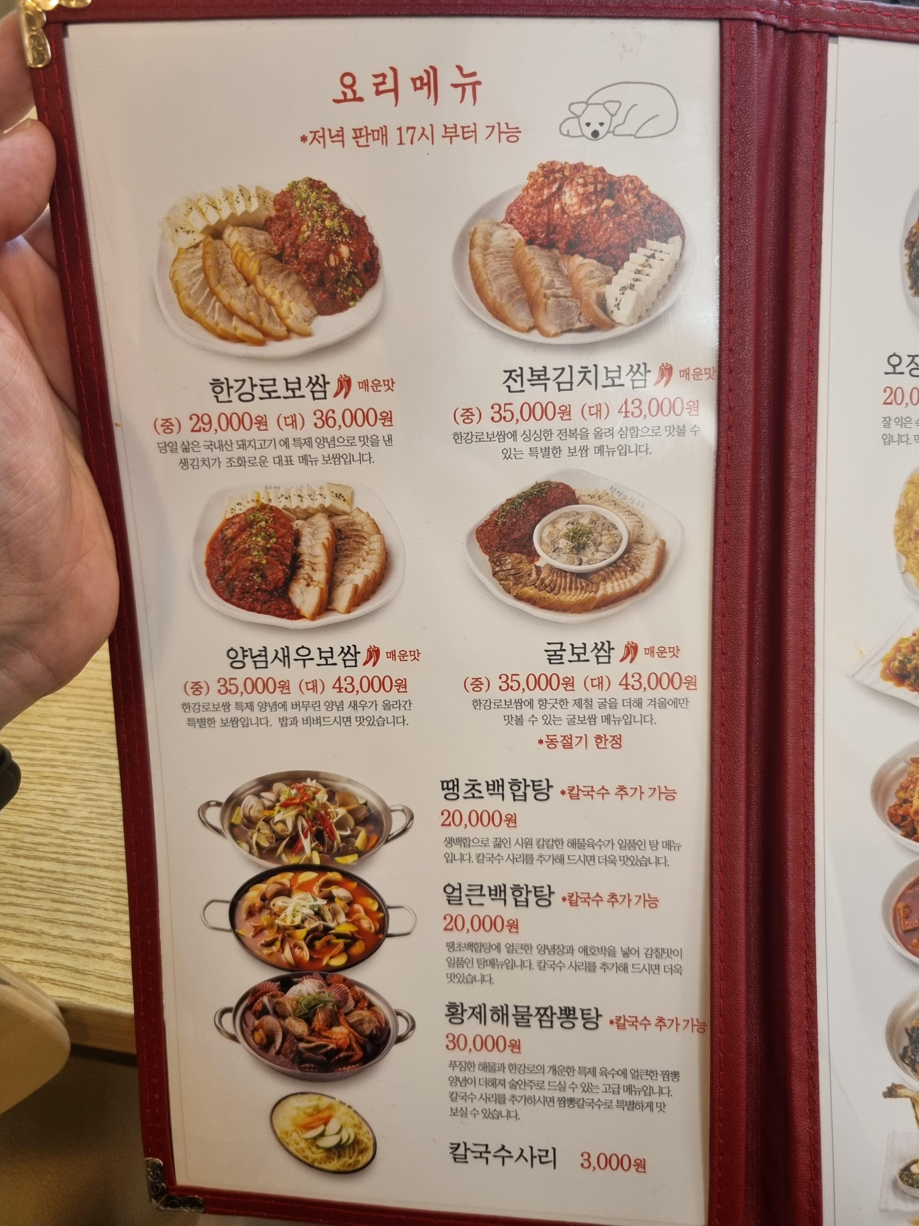 앞으로 한강로칼국수는 보쌈과 김치 그리고 얼큰칼국수 이 3가지 메뉴만 먹는걸로 정했습니다.