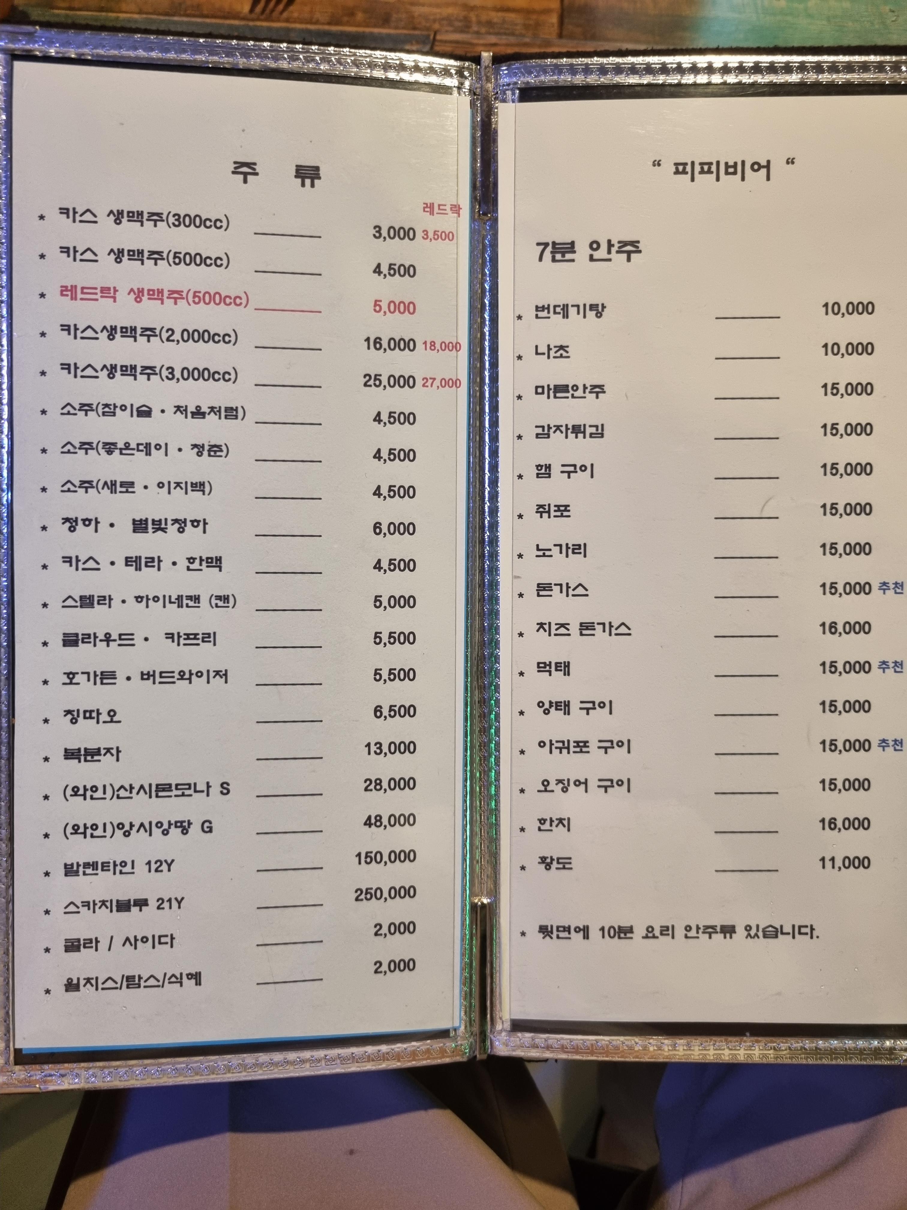 먹자골목에 비하면 주류 가격이 착한 편입니다.
