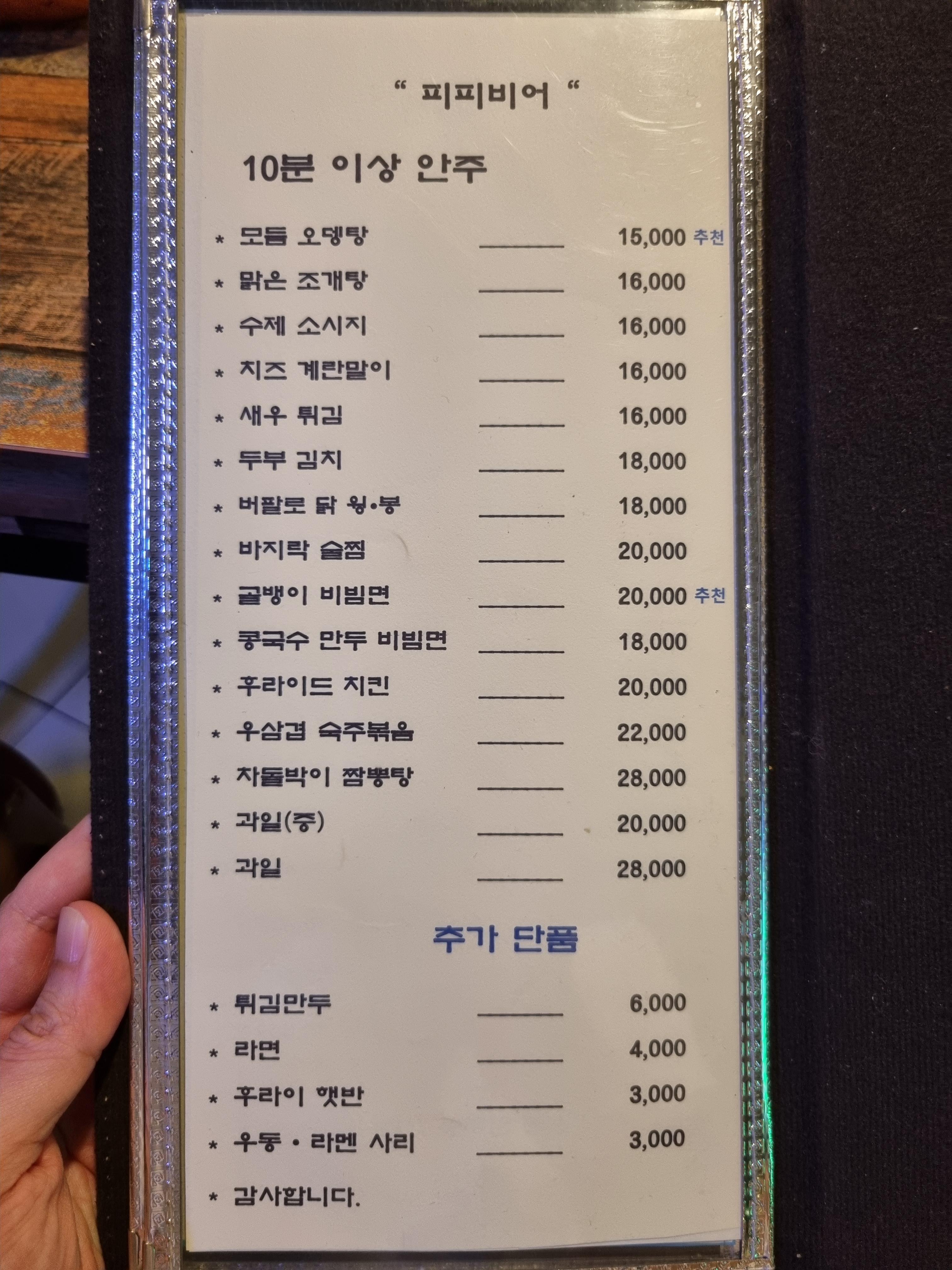 피피비어 메뉴입니다.