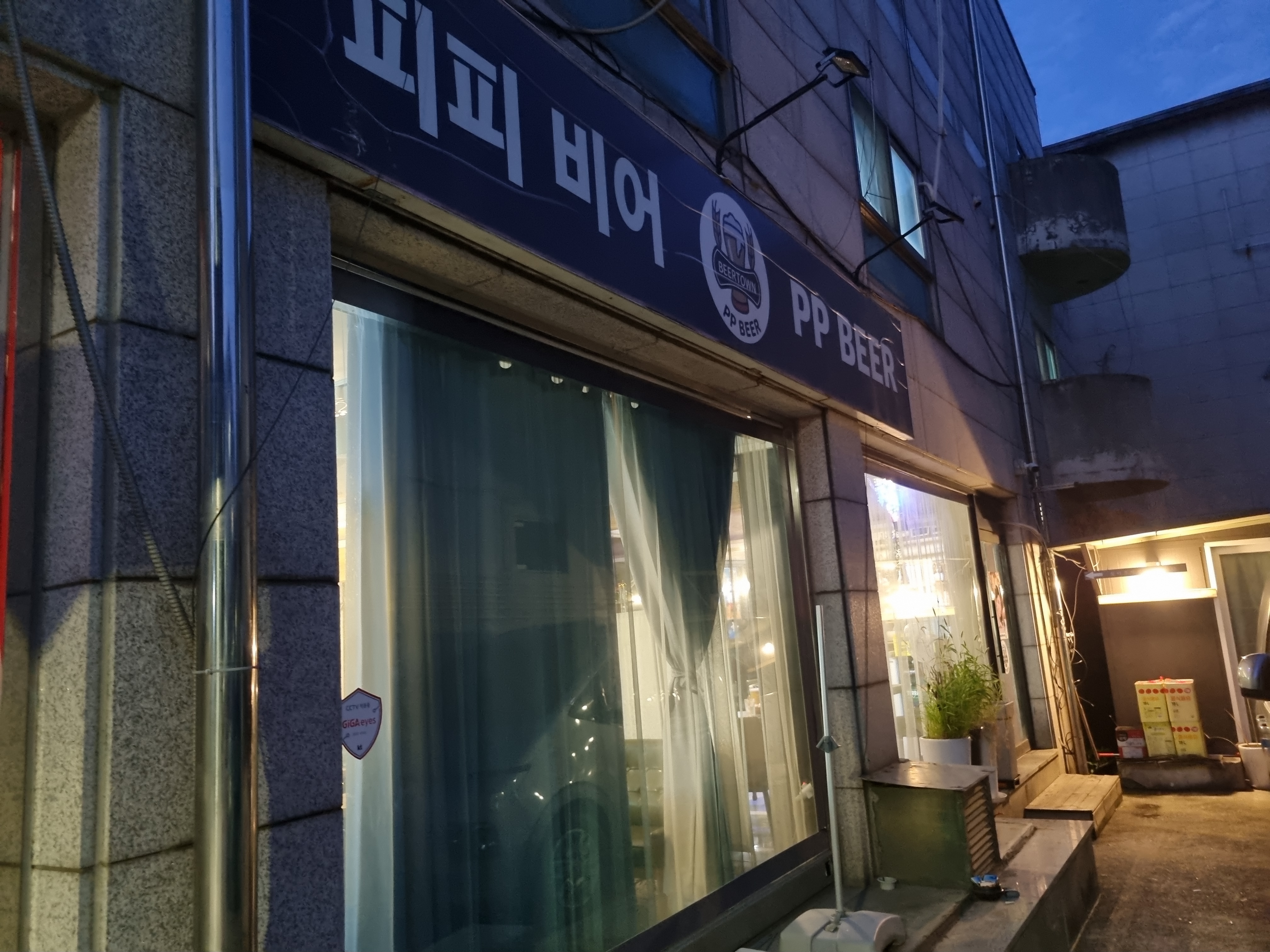 주택 단지쪽 입구에 있는 피피비어 외부 모습입니다.