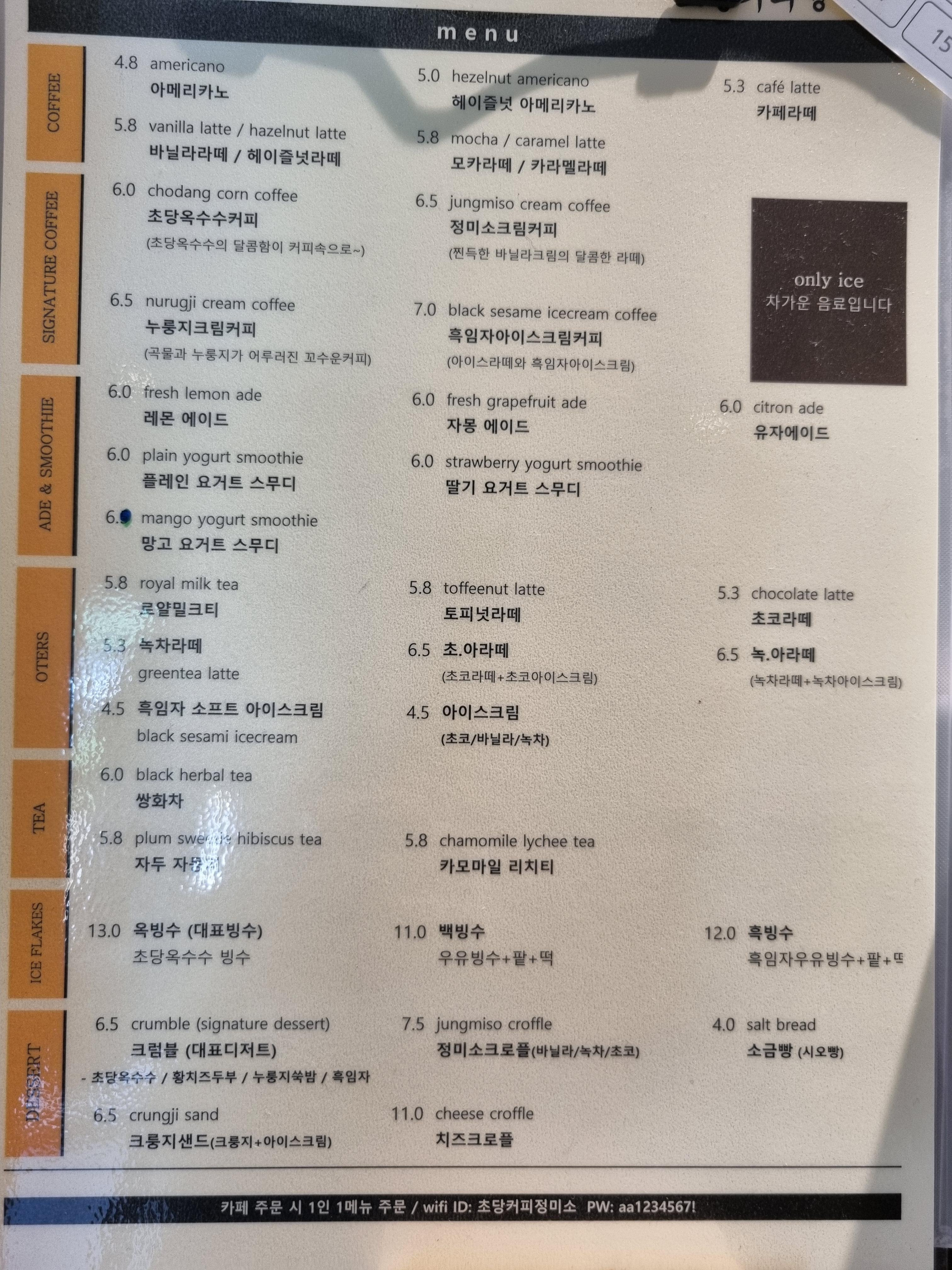 저희는 초당 옥수수로 만든 빙수 옥빙수를 먹기 위해 이곳을 왔으니 옥빙수를 바로 주문합니다.