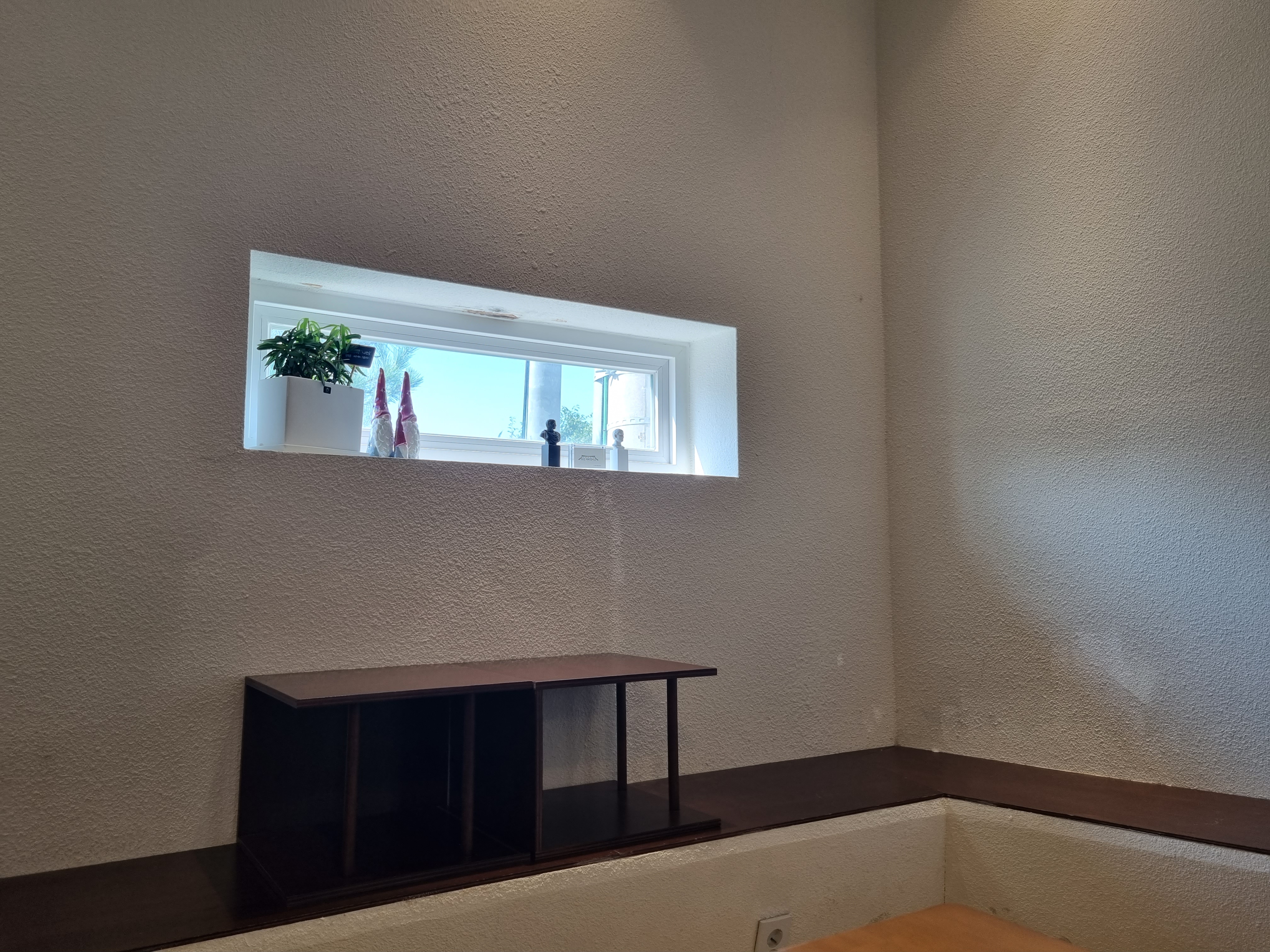 건물 벽을 따라서 좌석을 만들고 그 위에 작은 간이 테이블을 놨습니다.