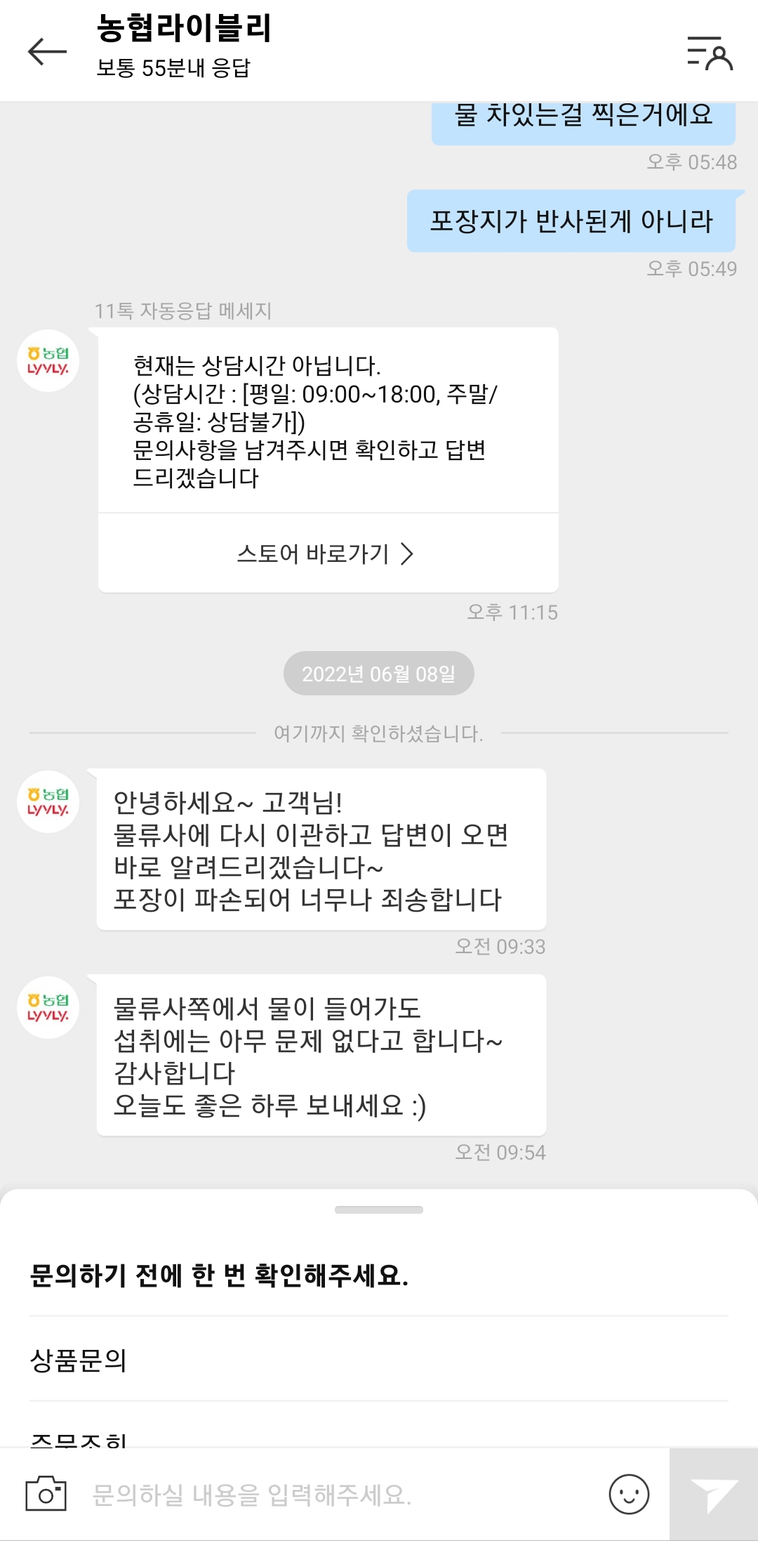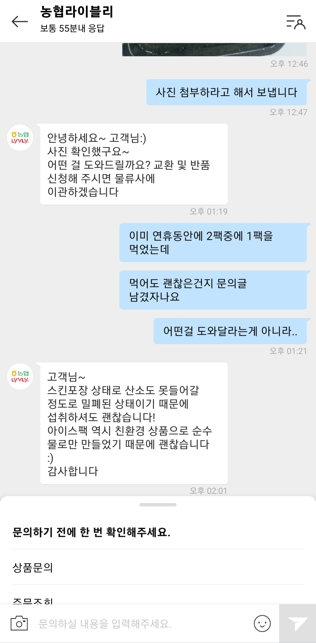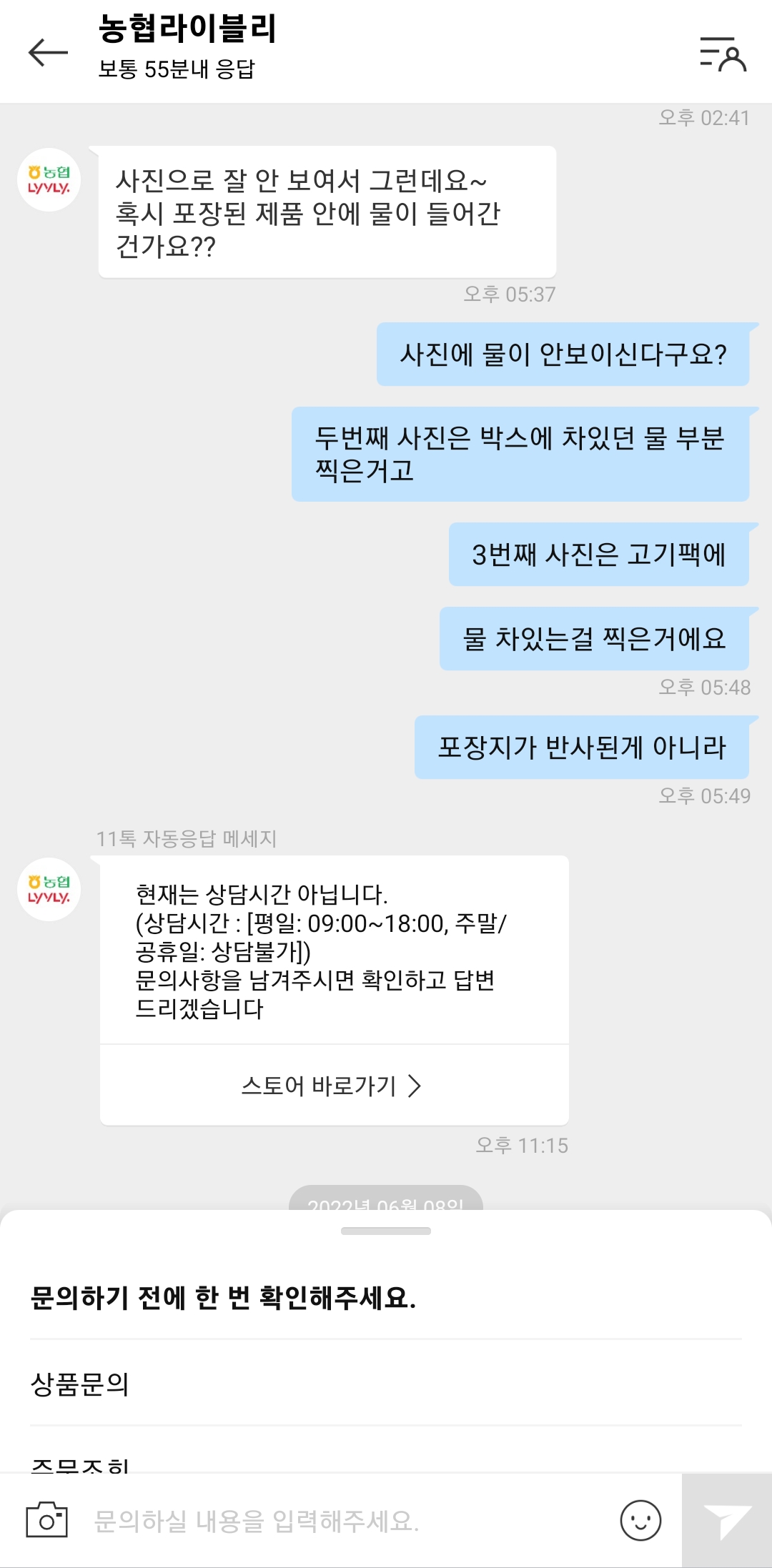 어쨌든 답변대로 사진을 첨부해서 다시 상담을 시작했습니다.