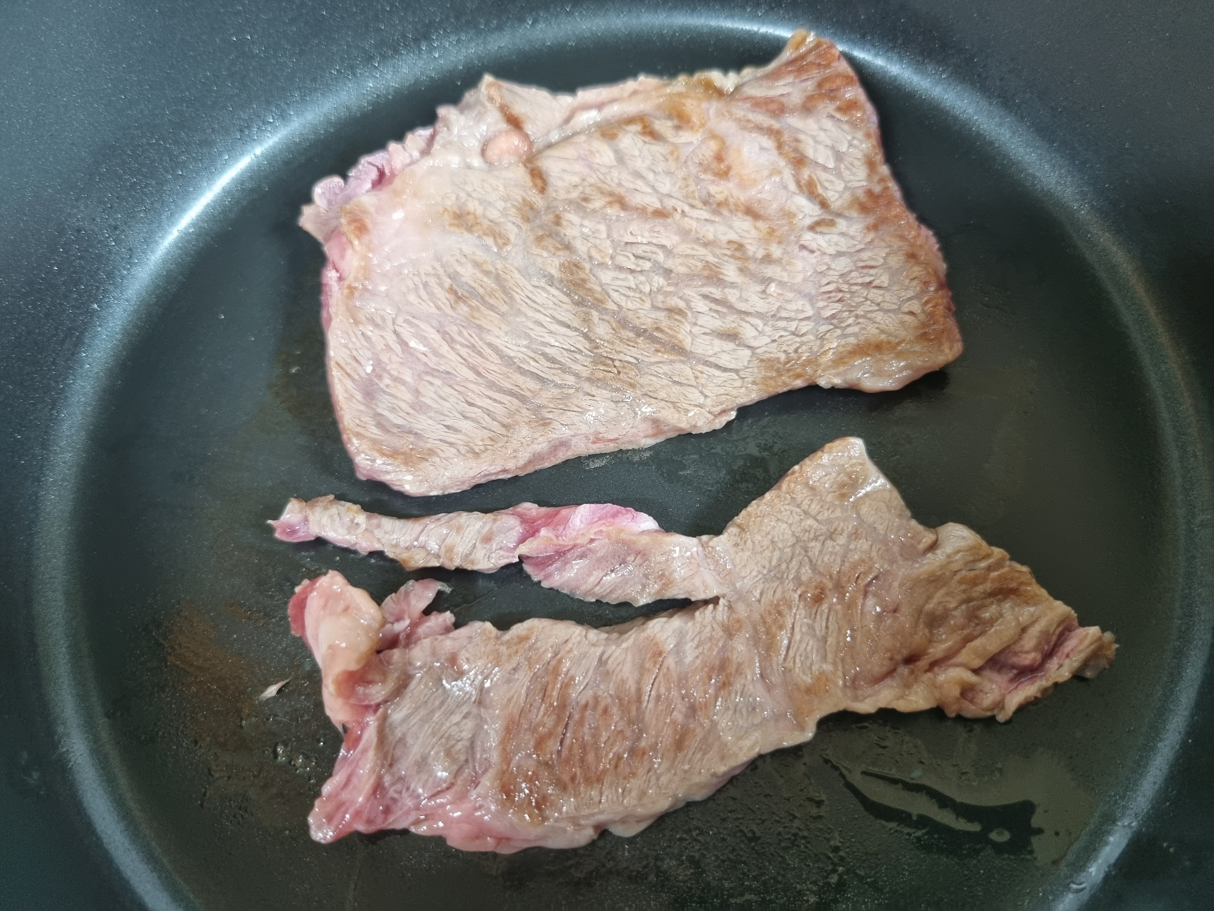 어느정도 핏기가 사라지면 뒤집어서 반대편을 구워줍니다...