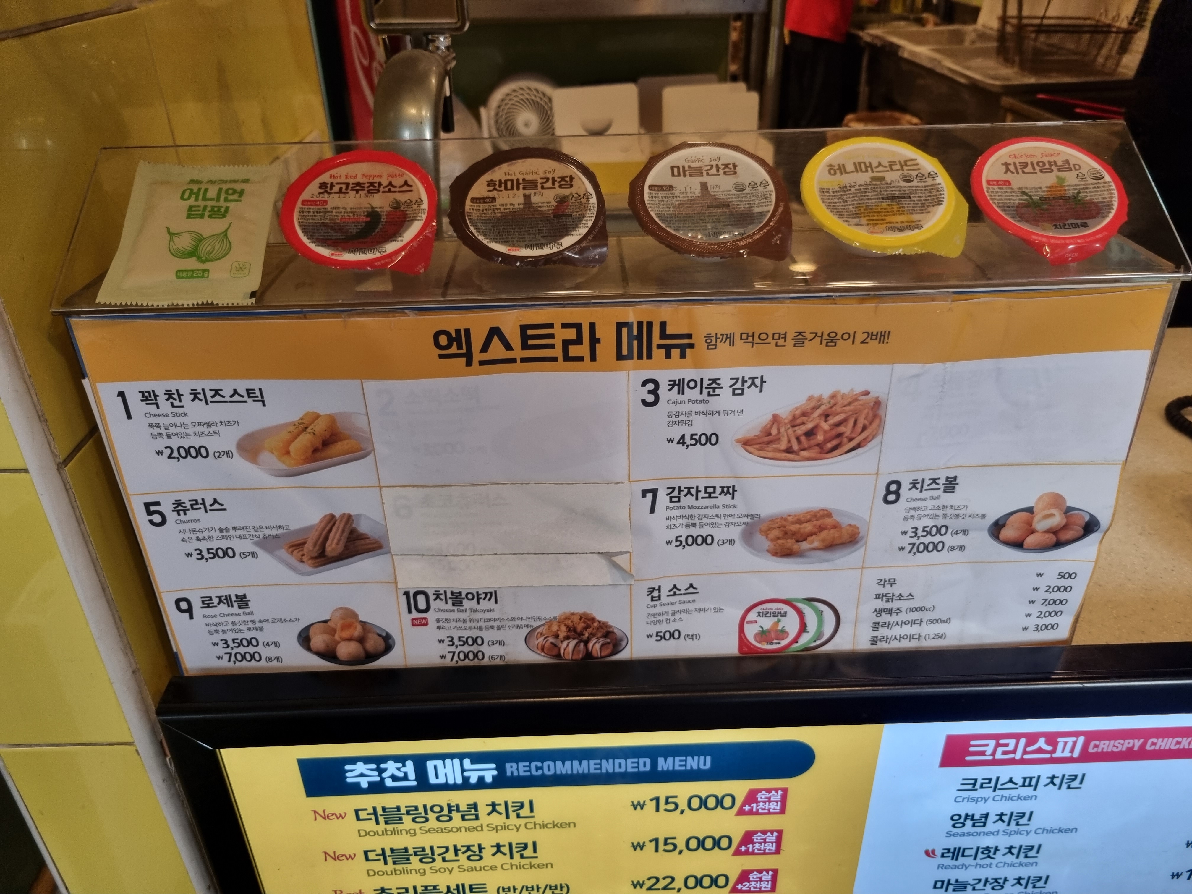 소스류를 추가로 구매할 수 있는데 소스 하나당 500원 입니다.