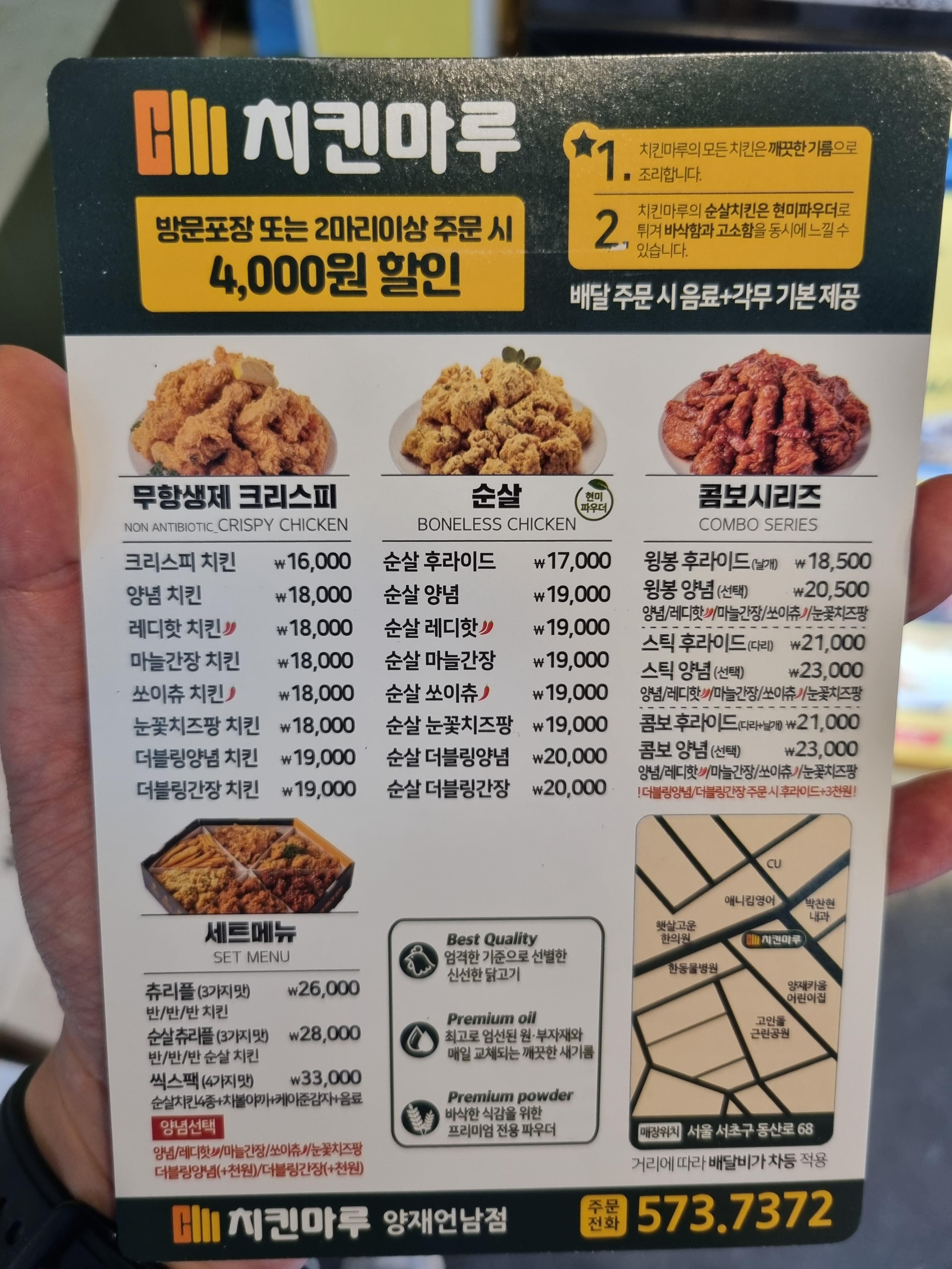 서울 서초구 양재동 가성비 치킨 맛집 치킨마루 방문 포장 후기