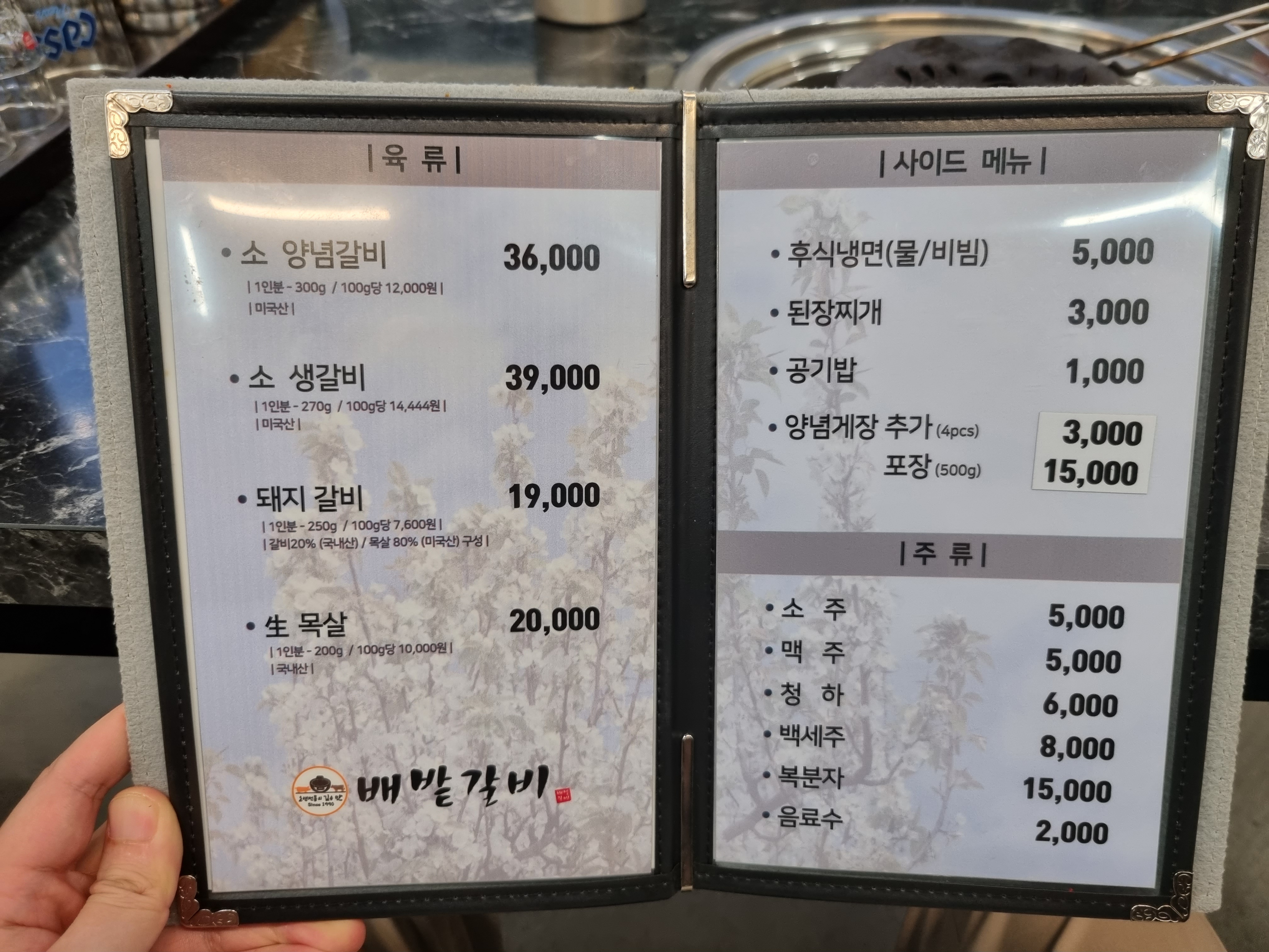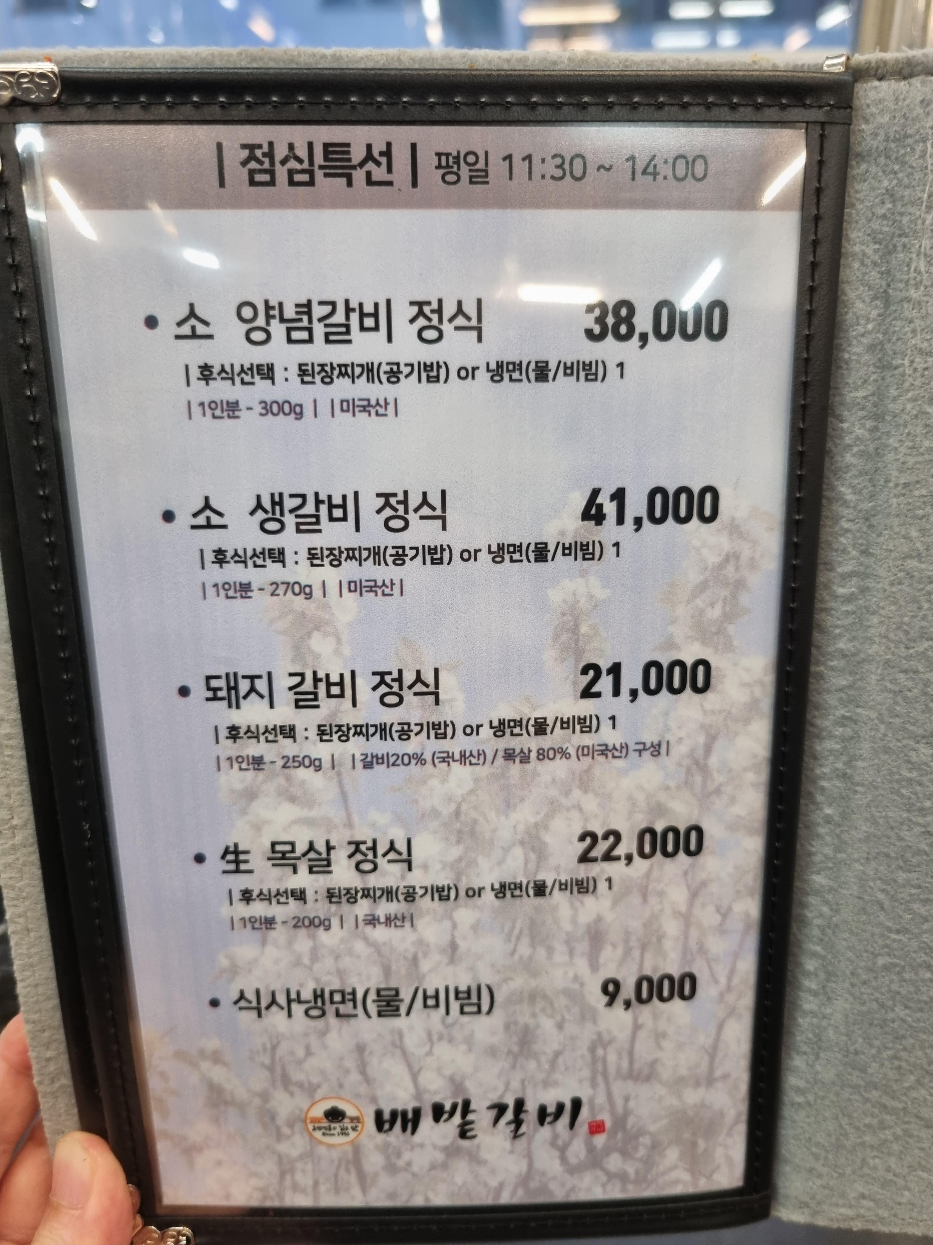 배밭갈비 메뉴입니다.