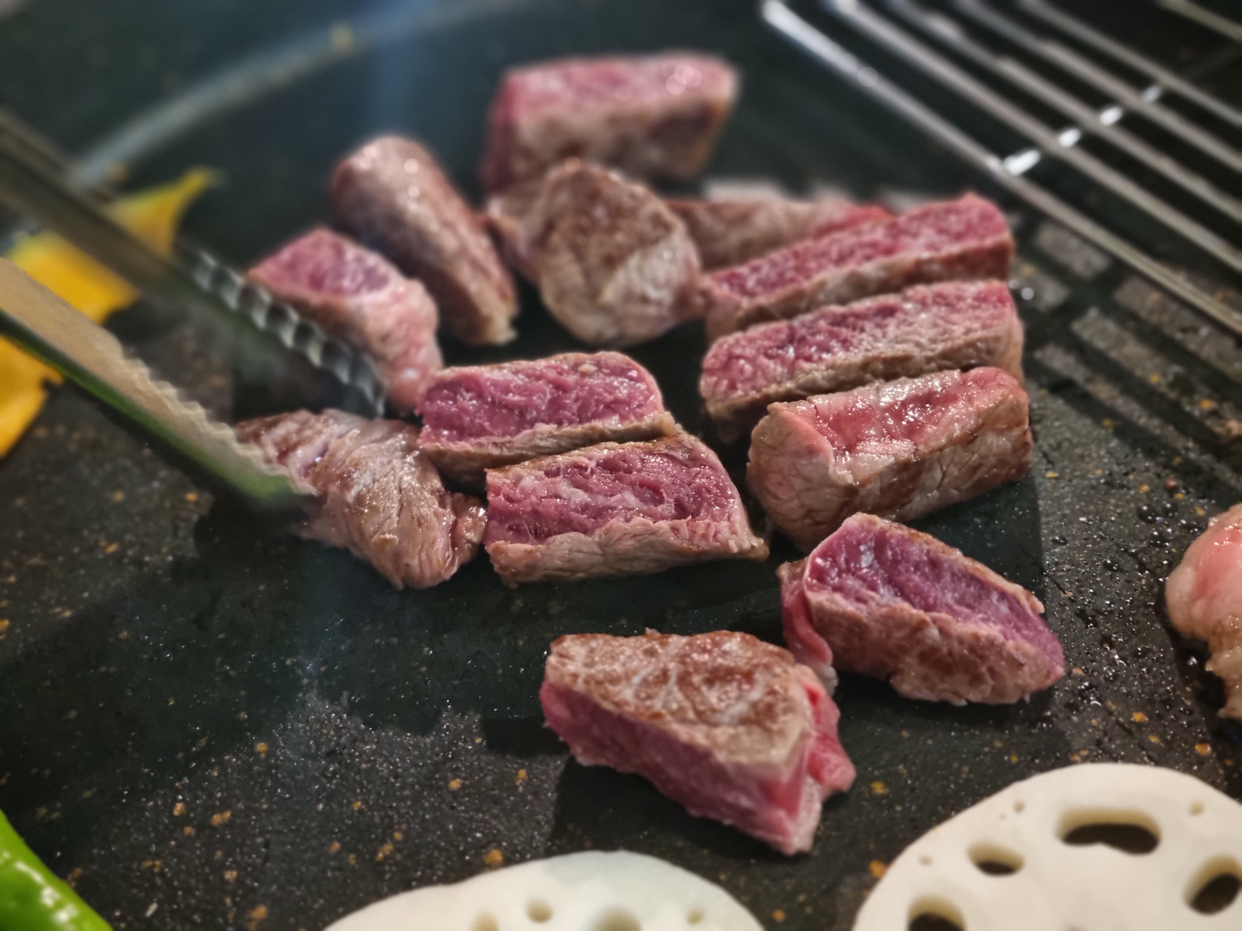빨간 부분이 보이도록 구운 후 취향에 맞게 조금 더 굽거나 또는 바로 먹을 수 있게 굽는 스타일입니다.