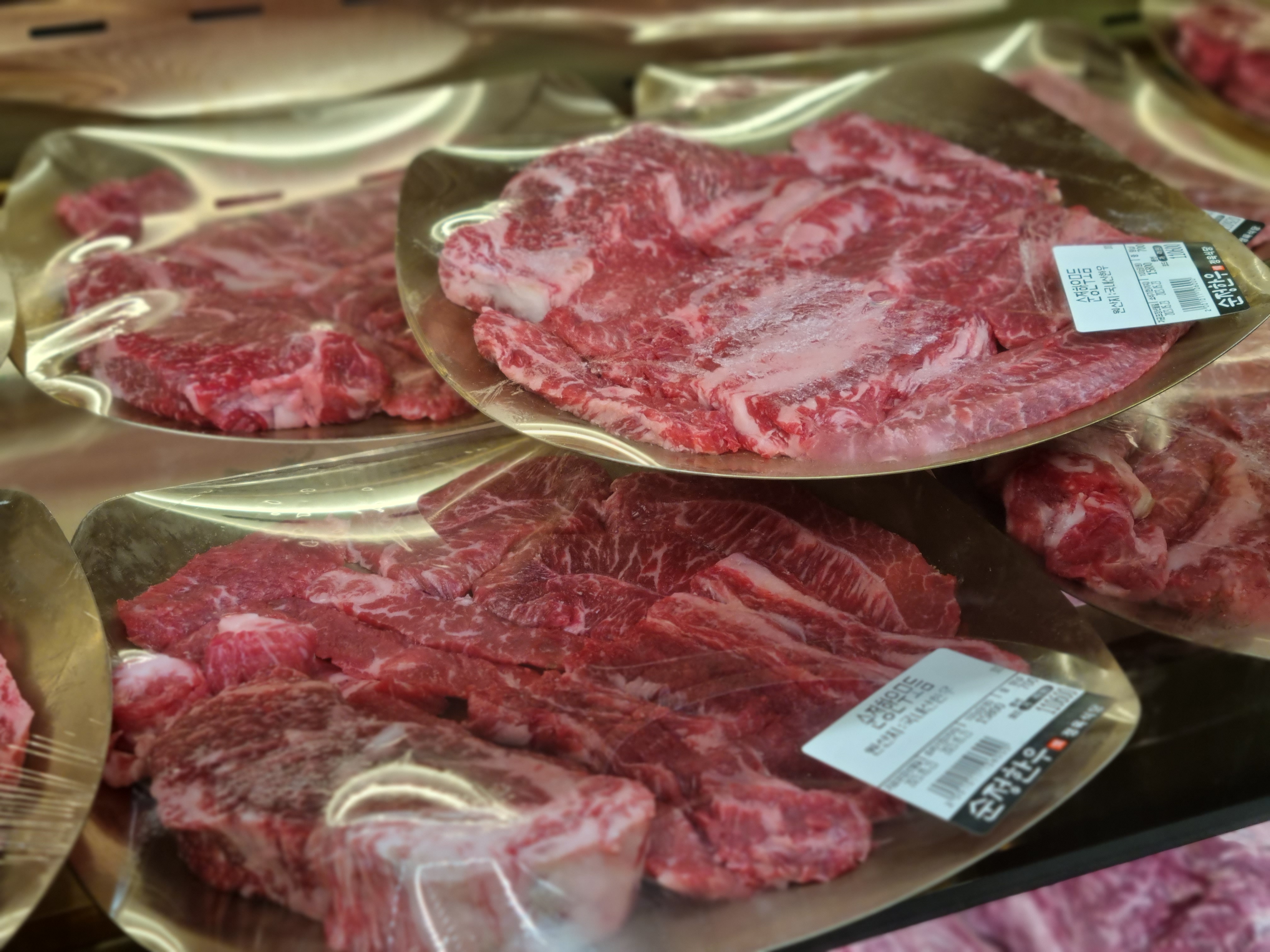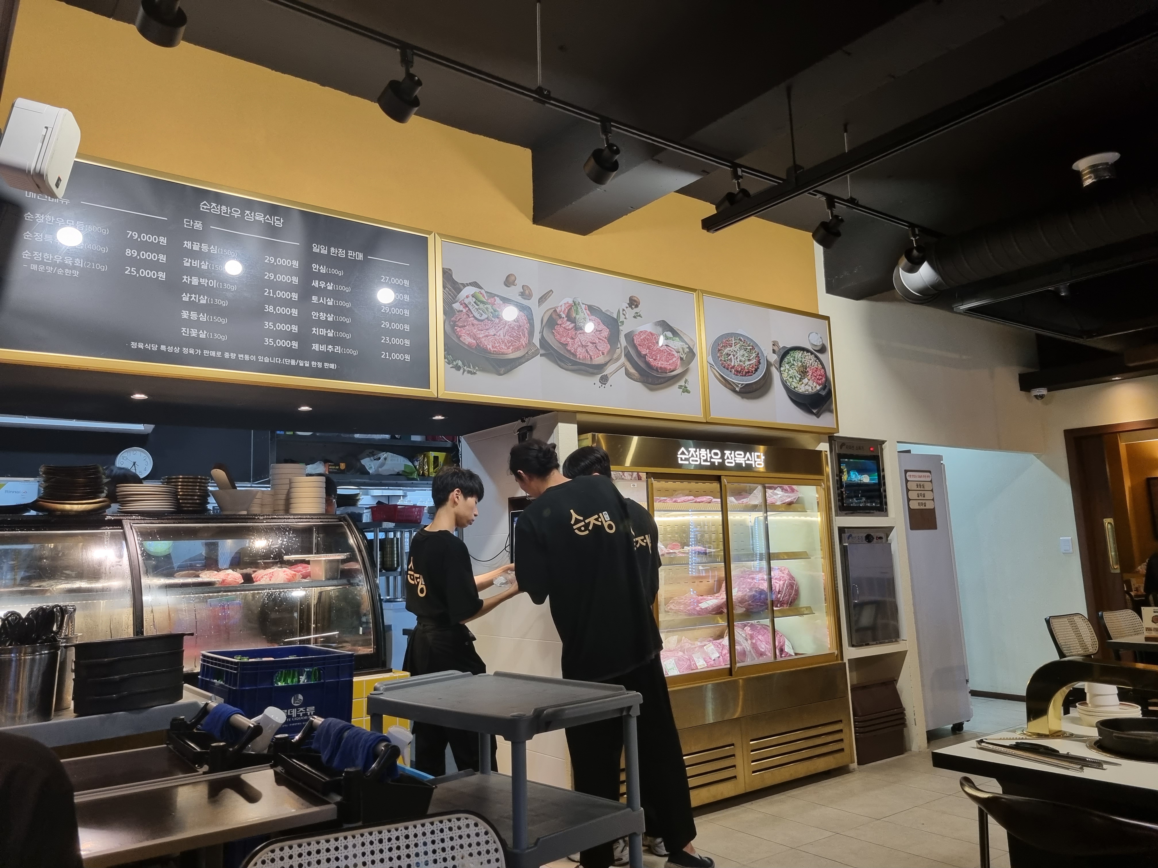 가게 내부에 있는 냉장고를 통해 준비된 순정한우모듬를 구경할 수 있습니다.
