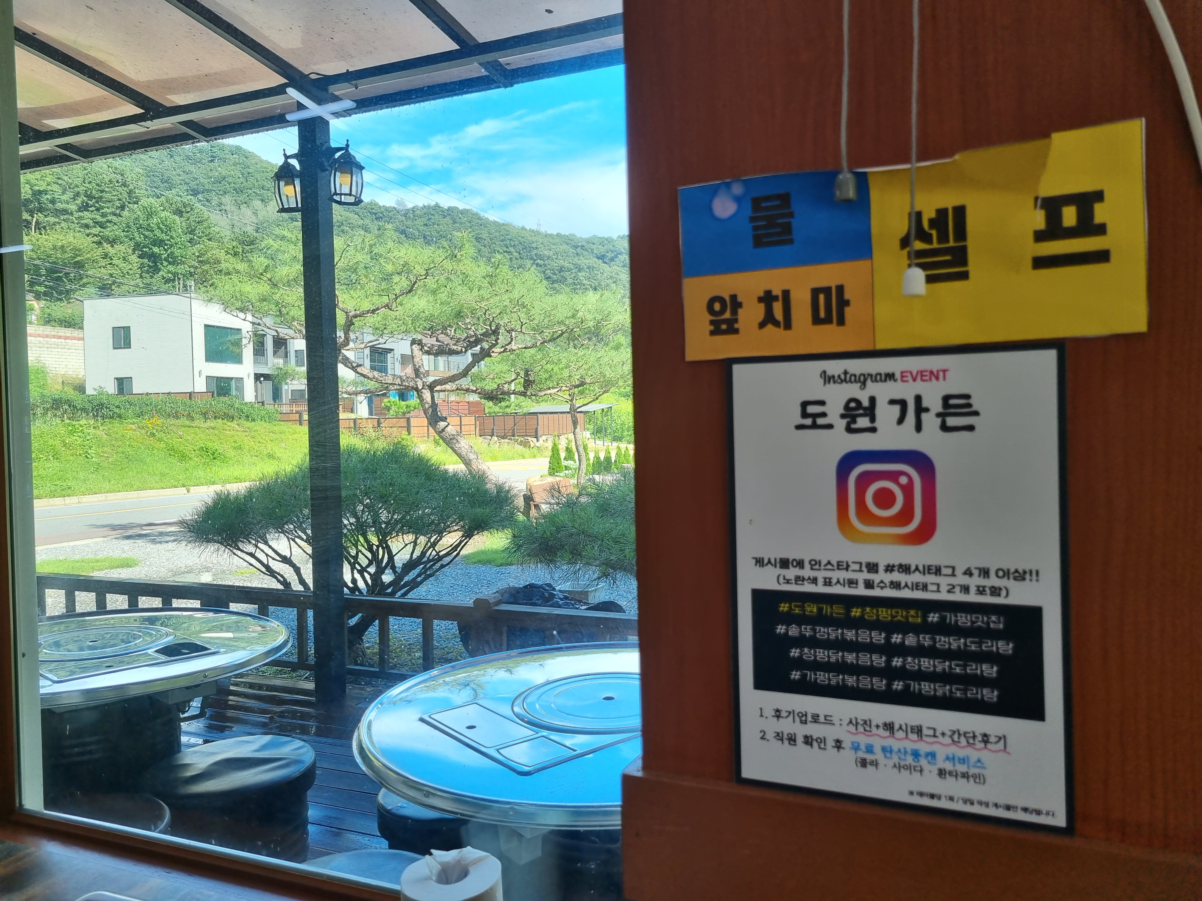 솥뚜껑 닭볶음탕 원조인 산골농원은 이미 여러 차례 방문해봤고 더운 날 야외에서 먹기엔 불도 뜨겁고 더울것같아서 실내에서 먹을 수 있는 곳을 찾고 있었는데 도원가든이 딱 원하던 곳이었습니다.