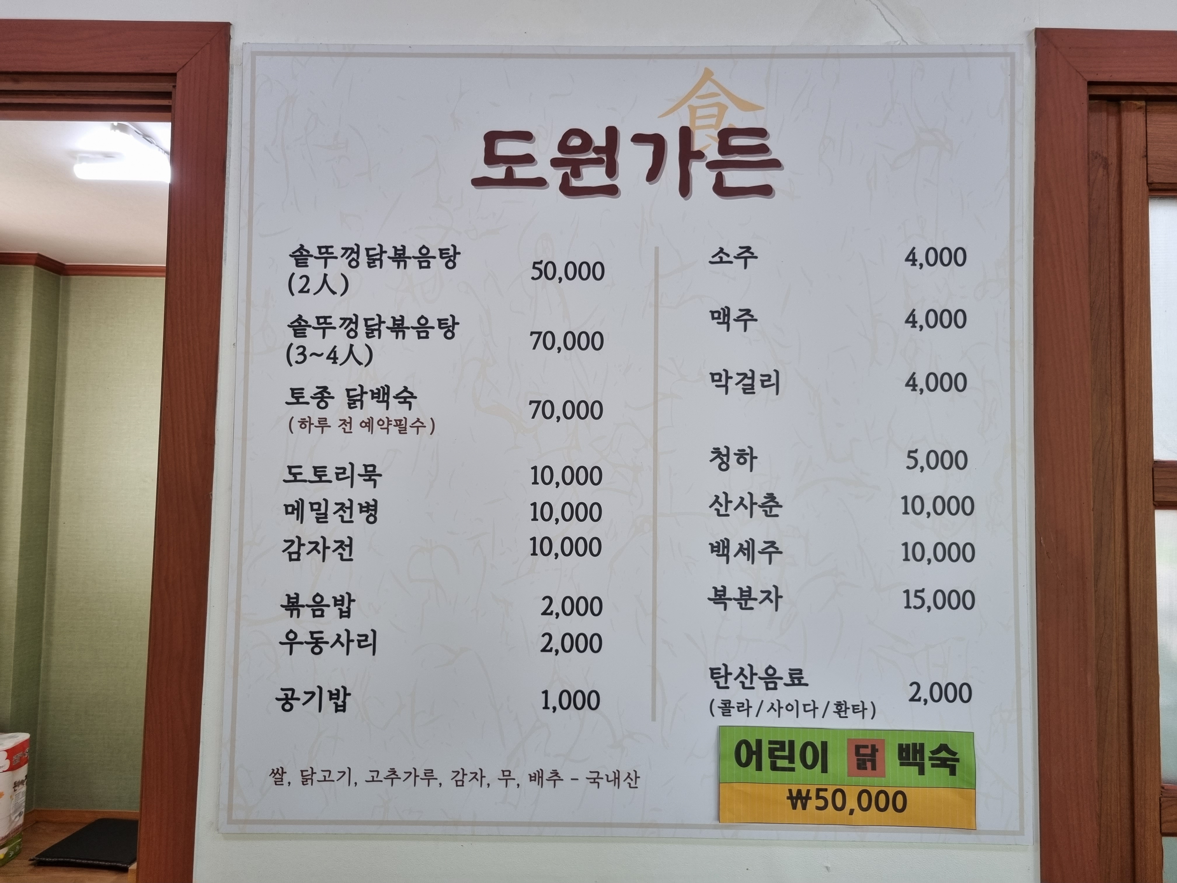 그래서 저는 미리 솥뚜껑닭볶음탕 2인 50,000원짜리를 전화로 주문하고 방문했습니다.