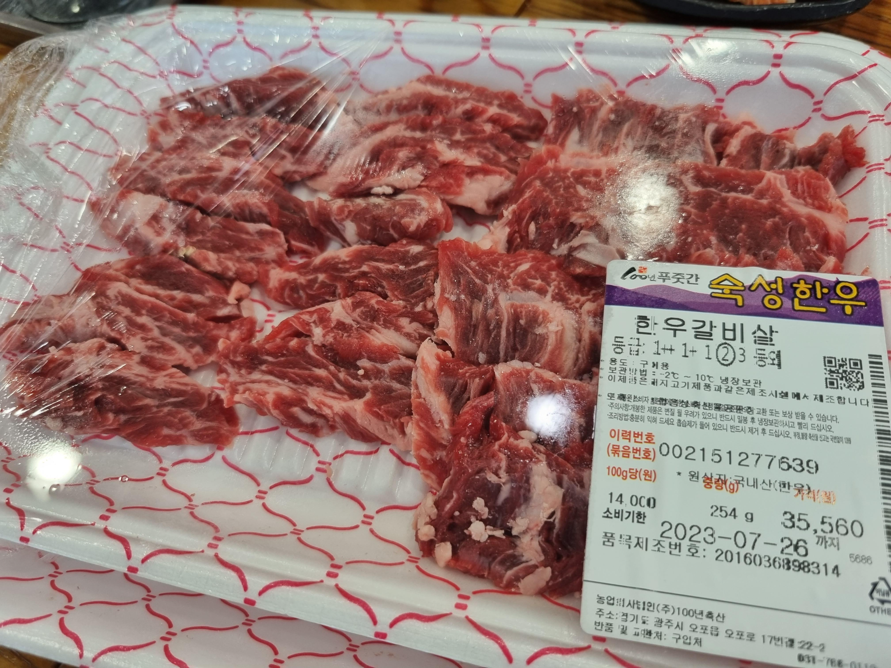 한우 갈비살 2등급 254g 35,500원입니다.