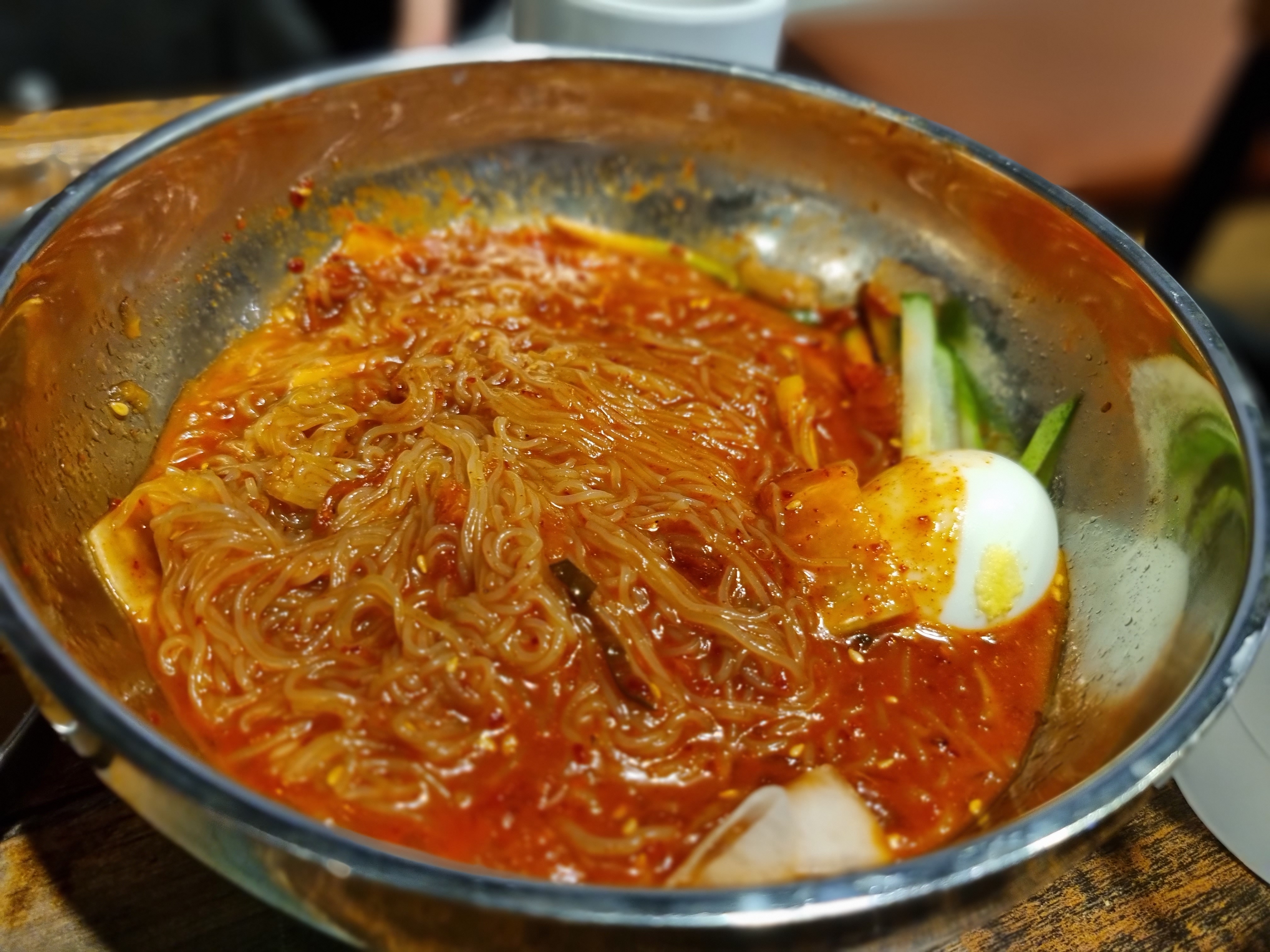 육수를 부어서 조금 묽게 만들었는데 갈비와 함께 먹기 딱 좋았습니다.