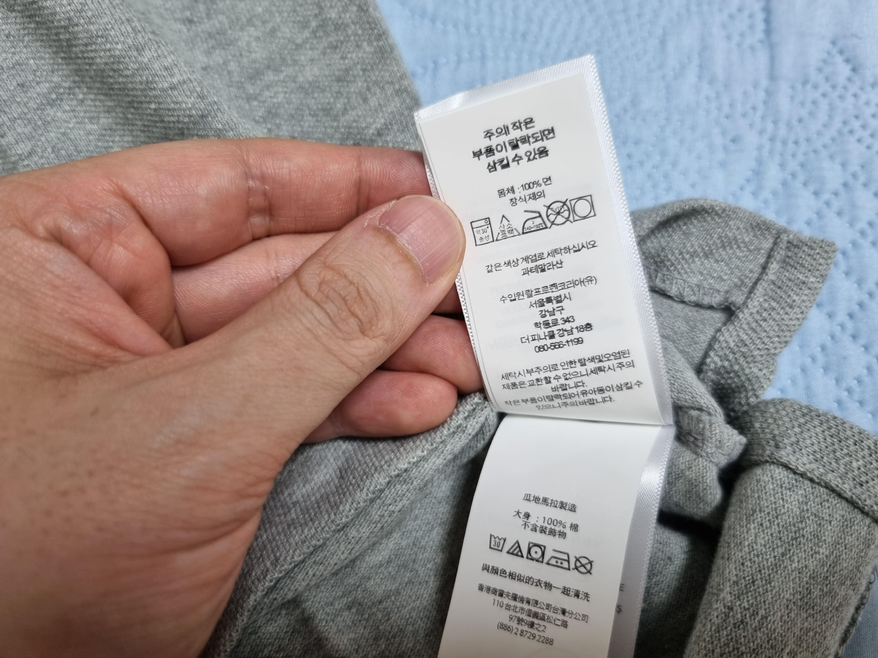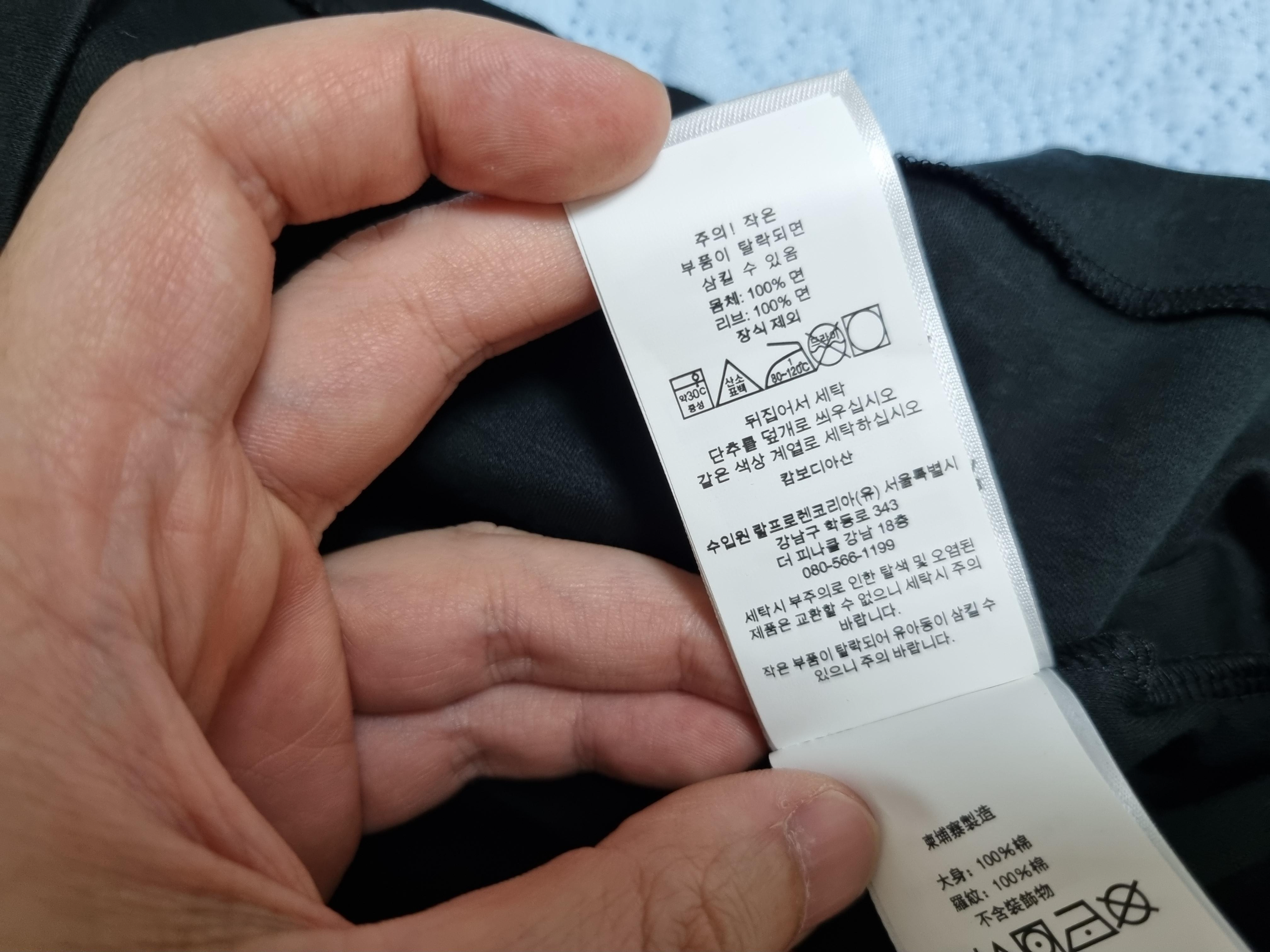 몸체가 100% 면인건 동일하지만 이 옷의 경우 리브 100% 면이 추가로 적혀있네요.