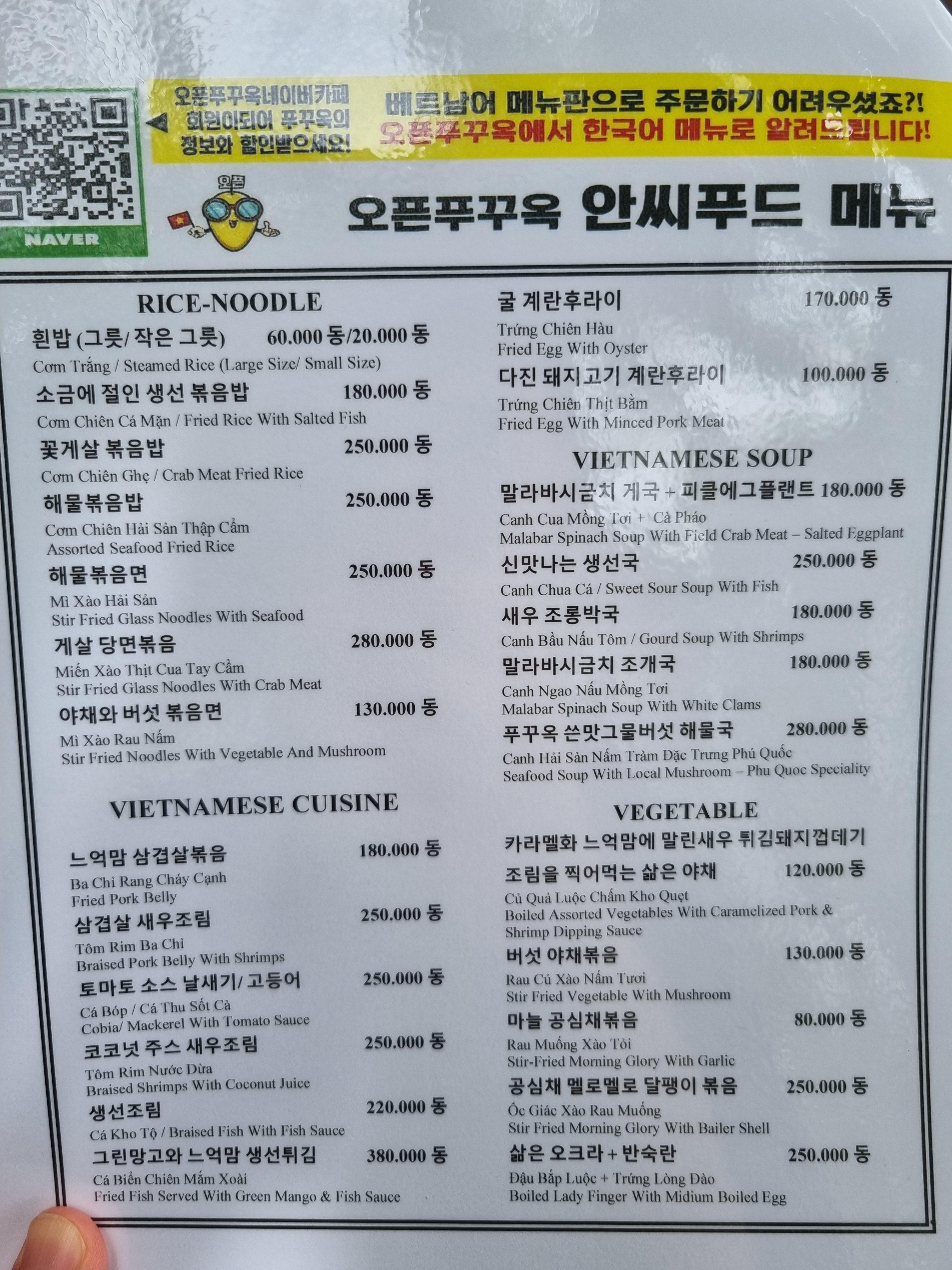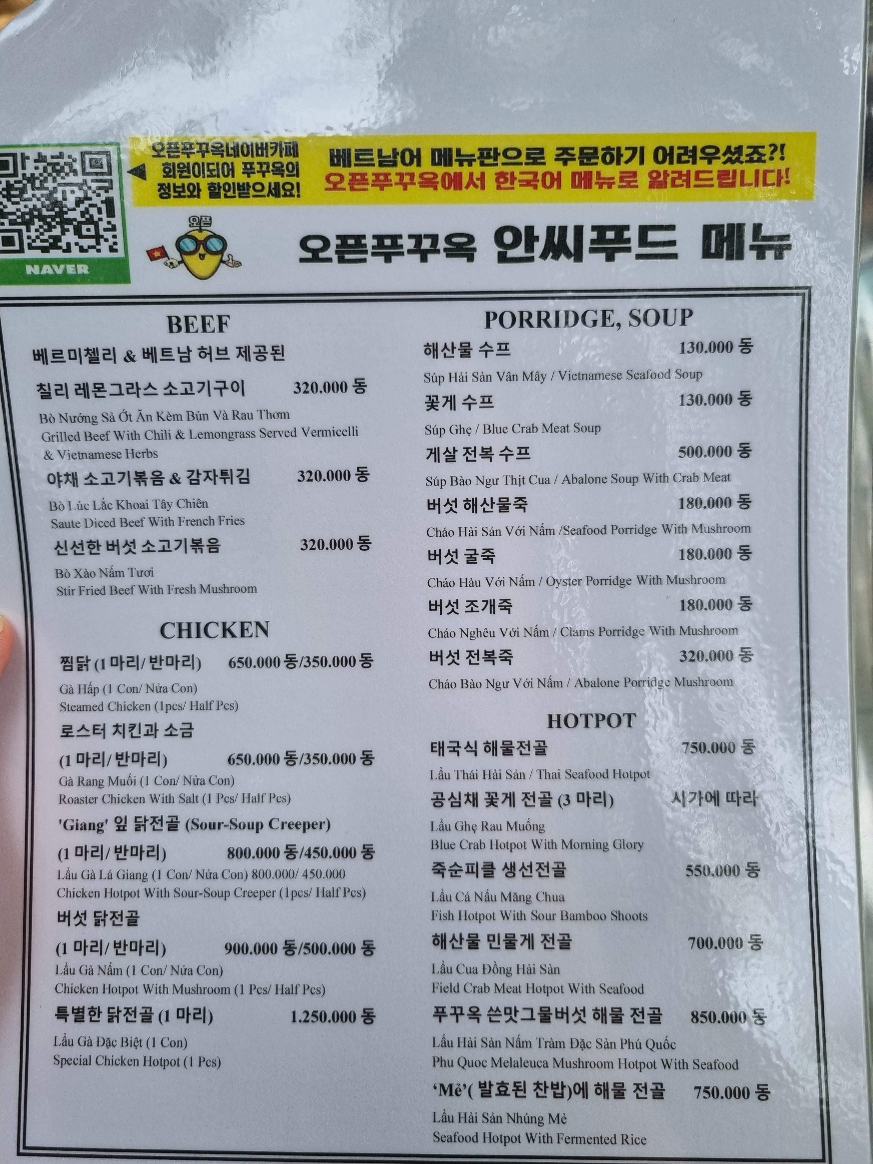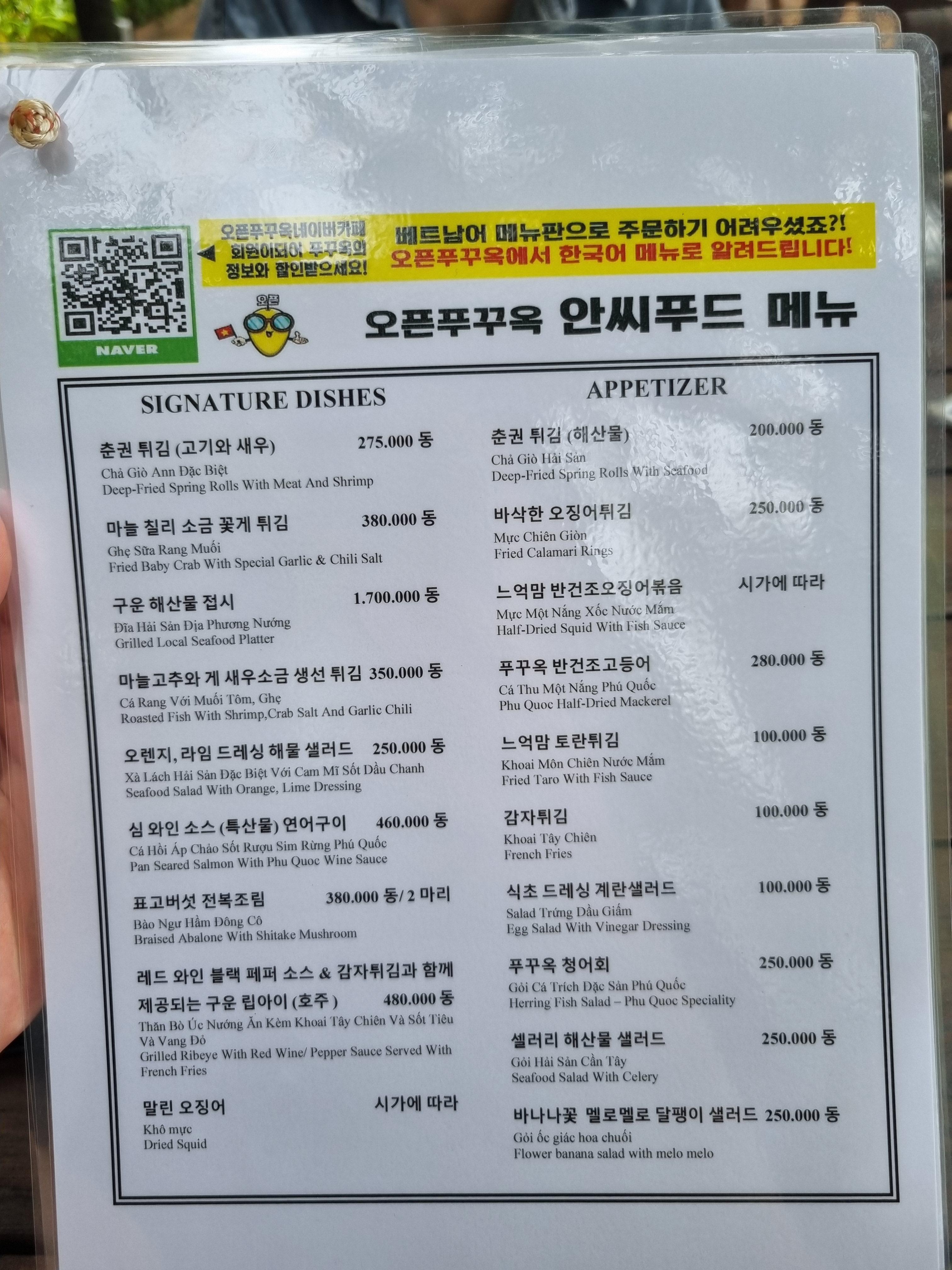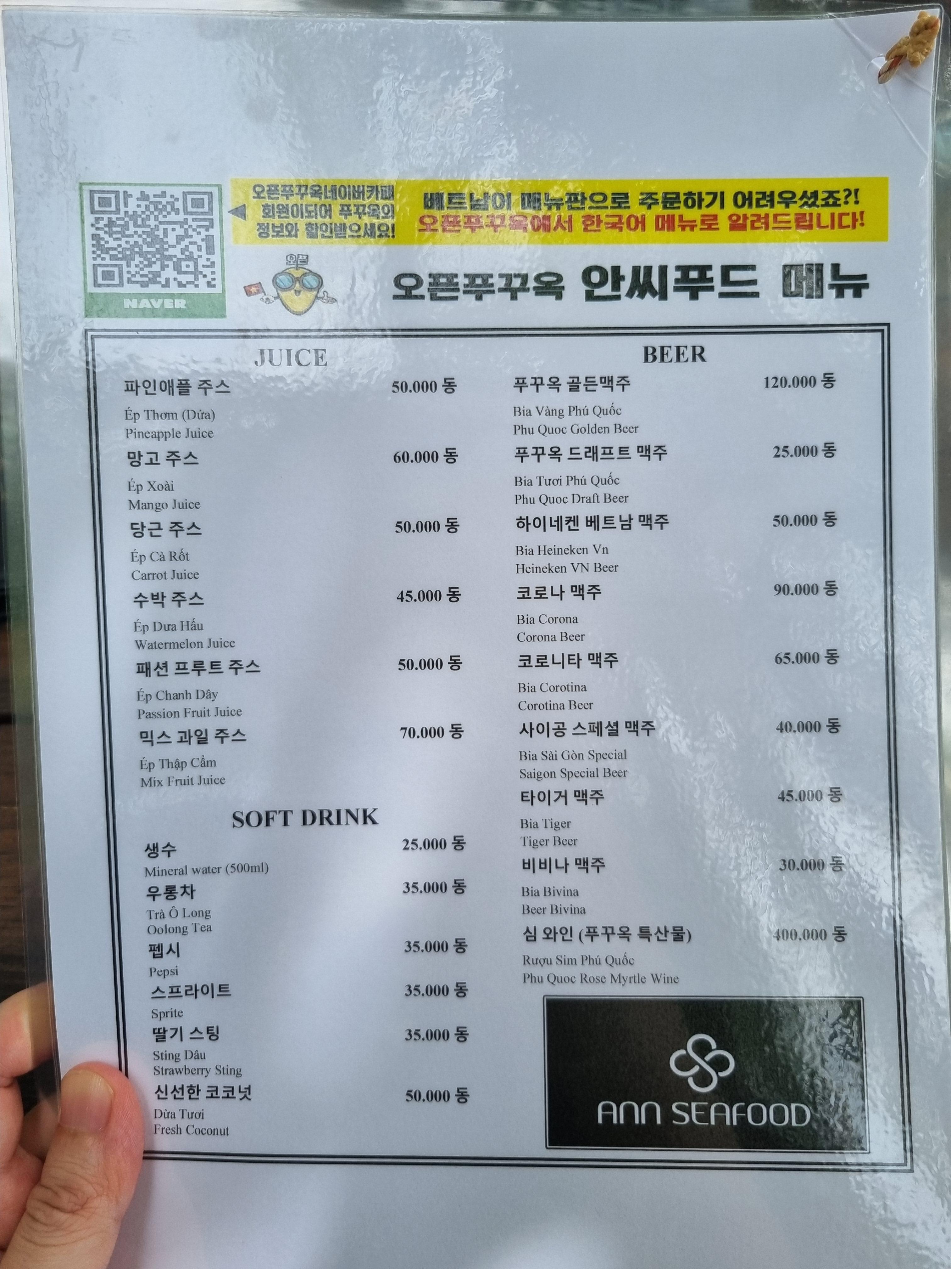 베트남 푸꾸옥 여행 남부 켐비치 맛집 안씨푸드 방문 후기