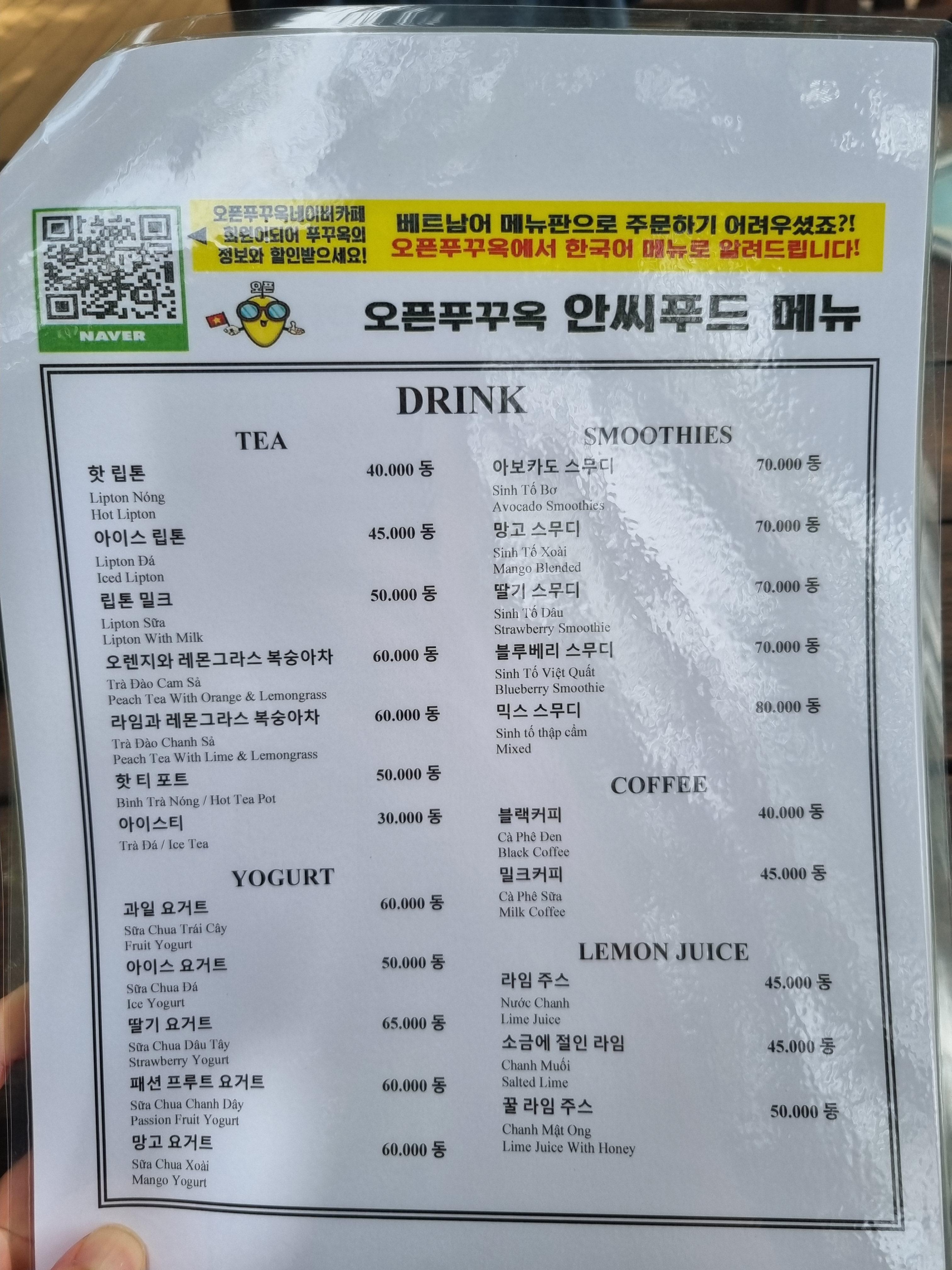 한국인들이 많이 방문하는 음식점답게 한국어 메뉴판이 준비되어 있습니다.
