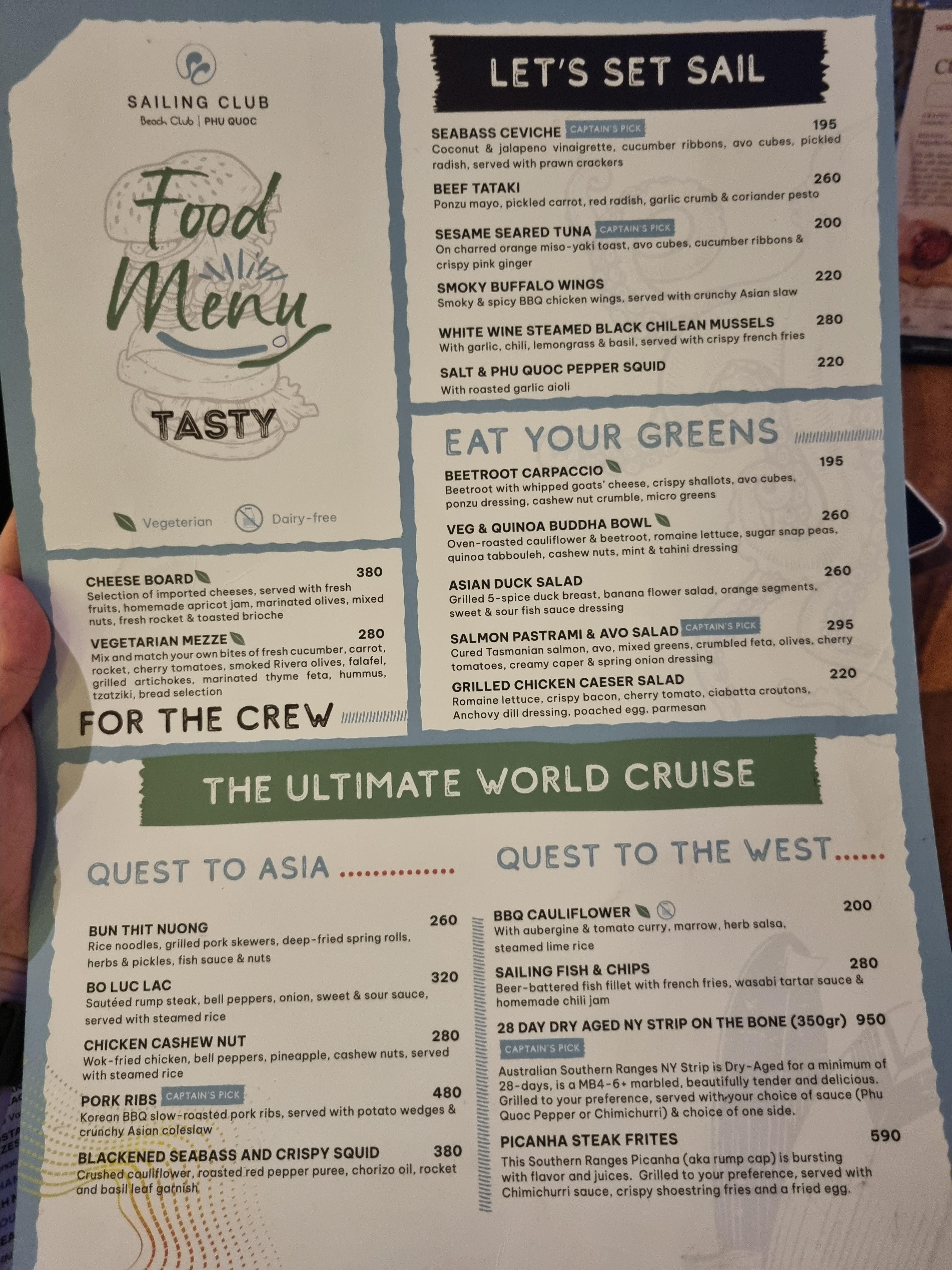 베트남 푸꾸옥 세일링클럽 레스토랑 메뉴 및 불쇼