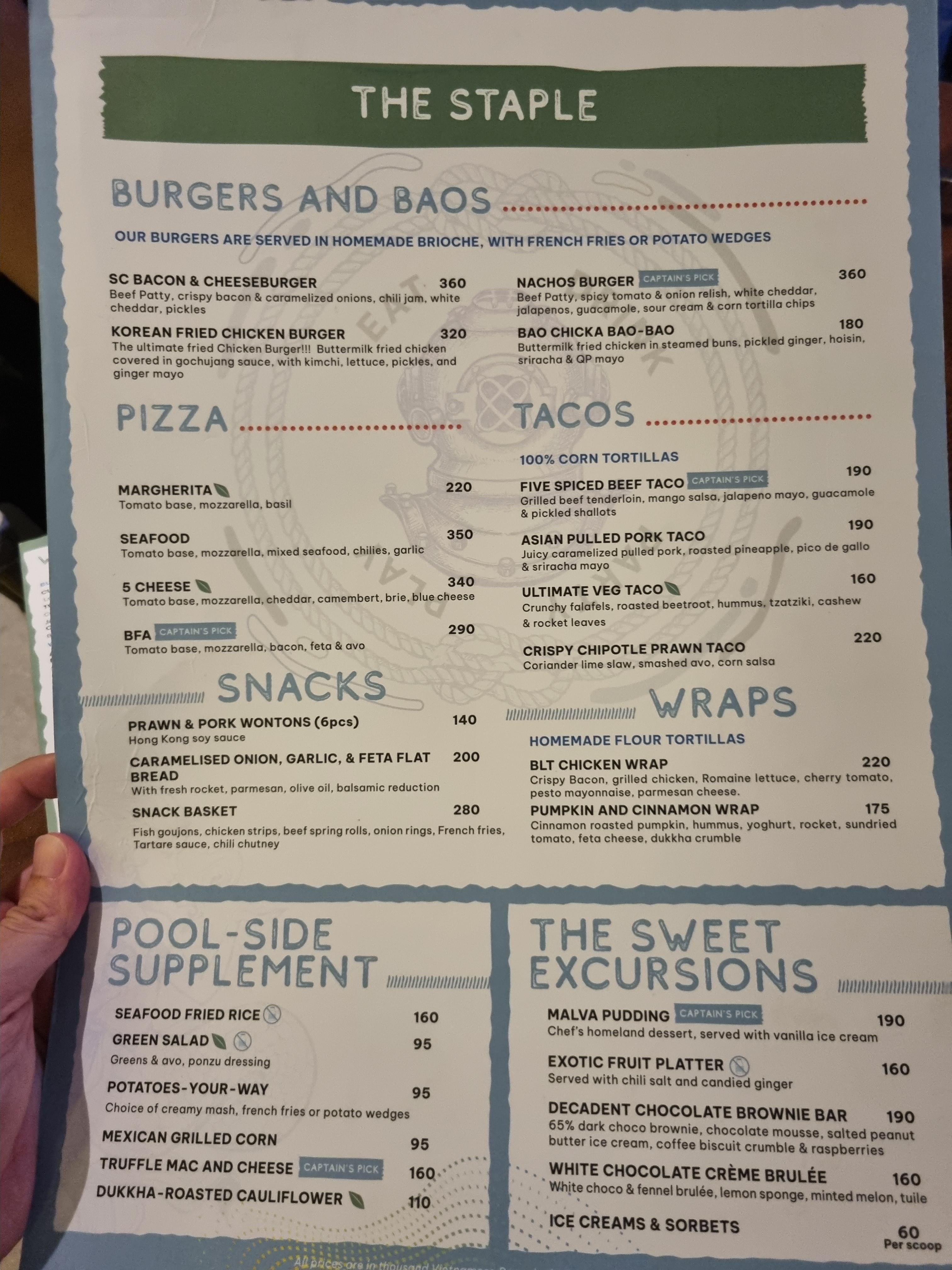 저는 BFA 피자, 나초스버거, 세일링 피쉬 앤 칩스, 망고주스, 칵테일 등을 주문했습니다.