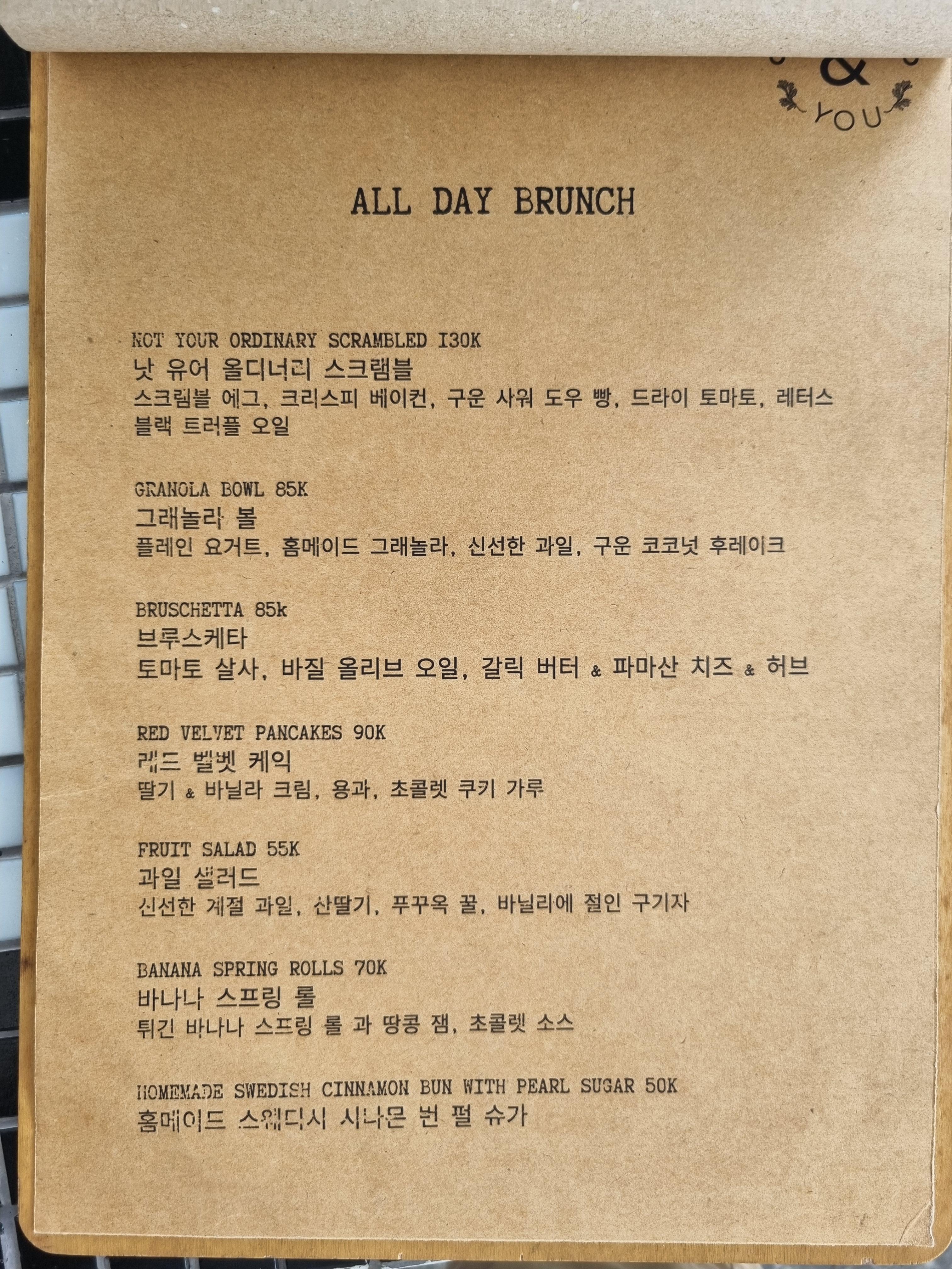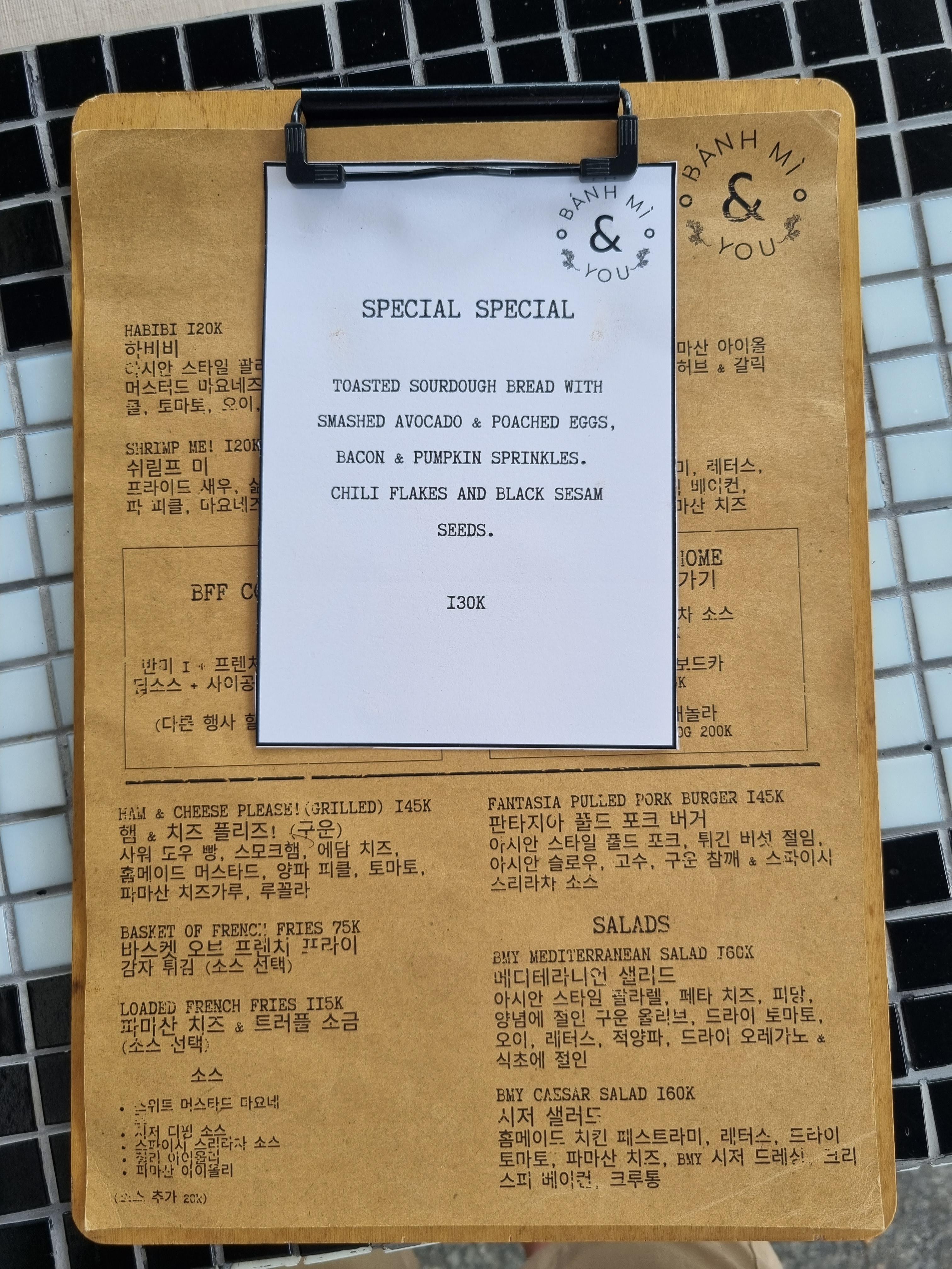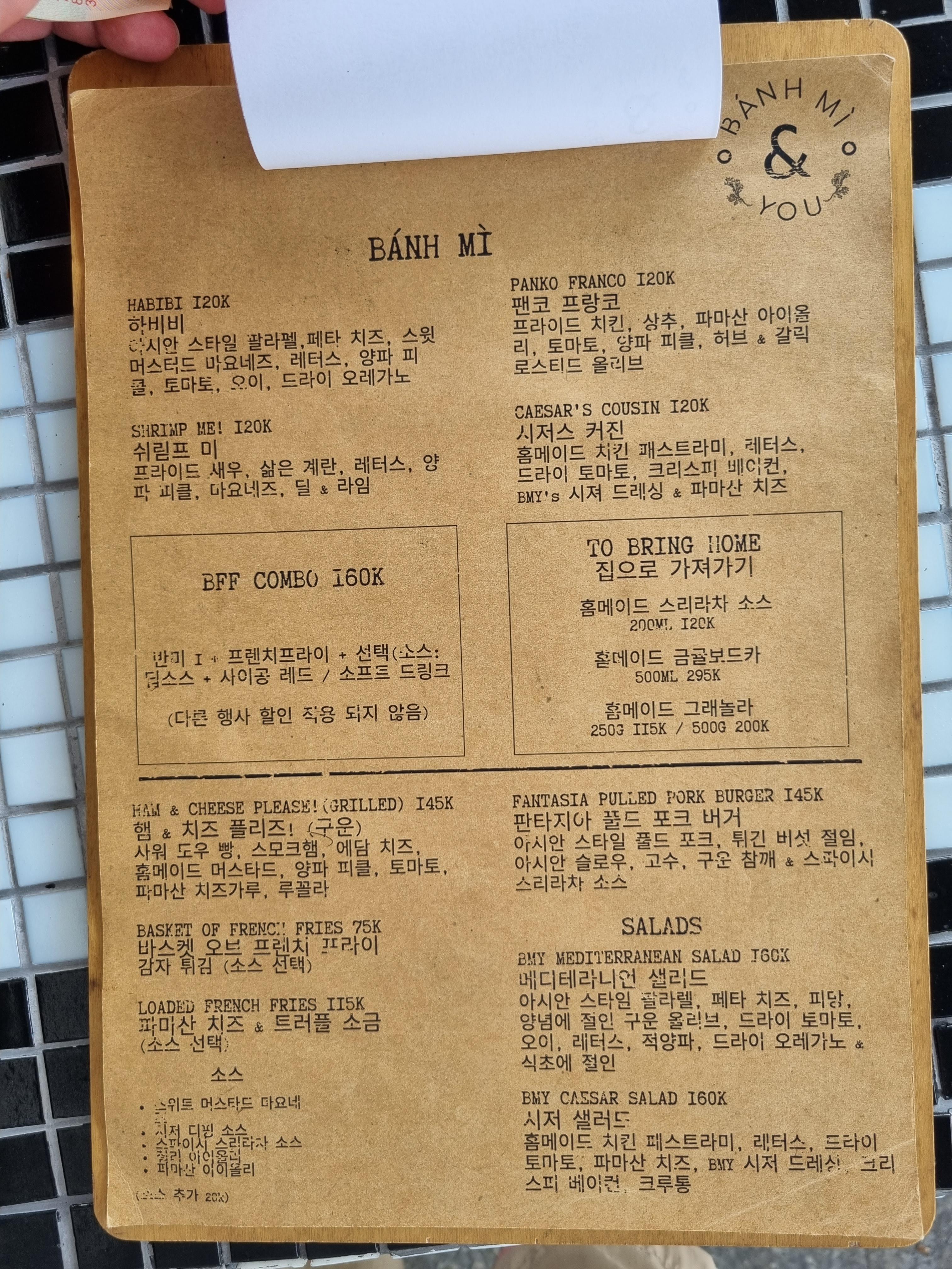 반미앤유에는 한국어 메뉴판이 있습니다.