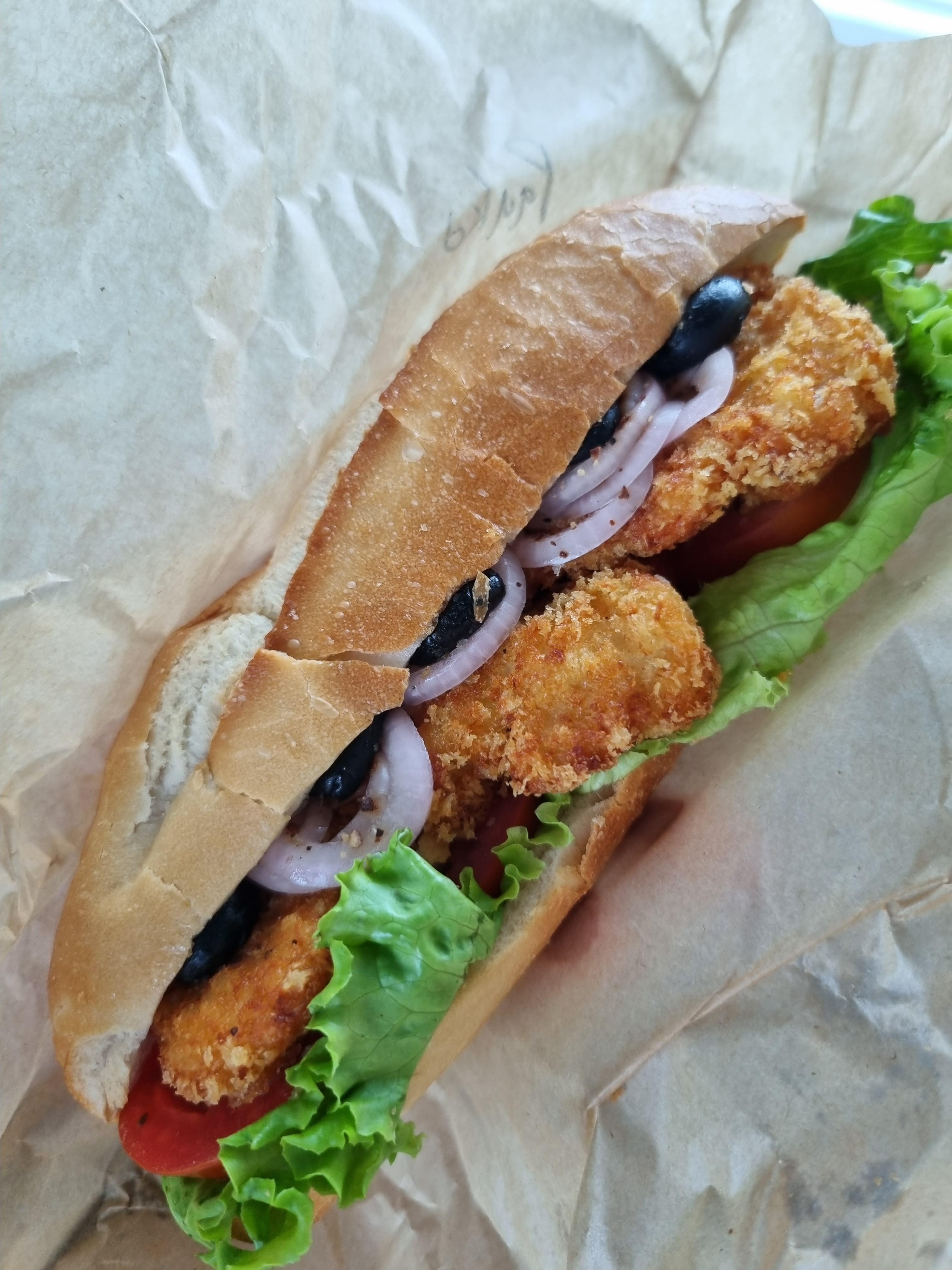 이건 쉬림프 미 샌드위치인데 안에 튀김이 아주 크고 맛있습니다.
