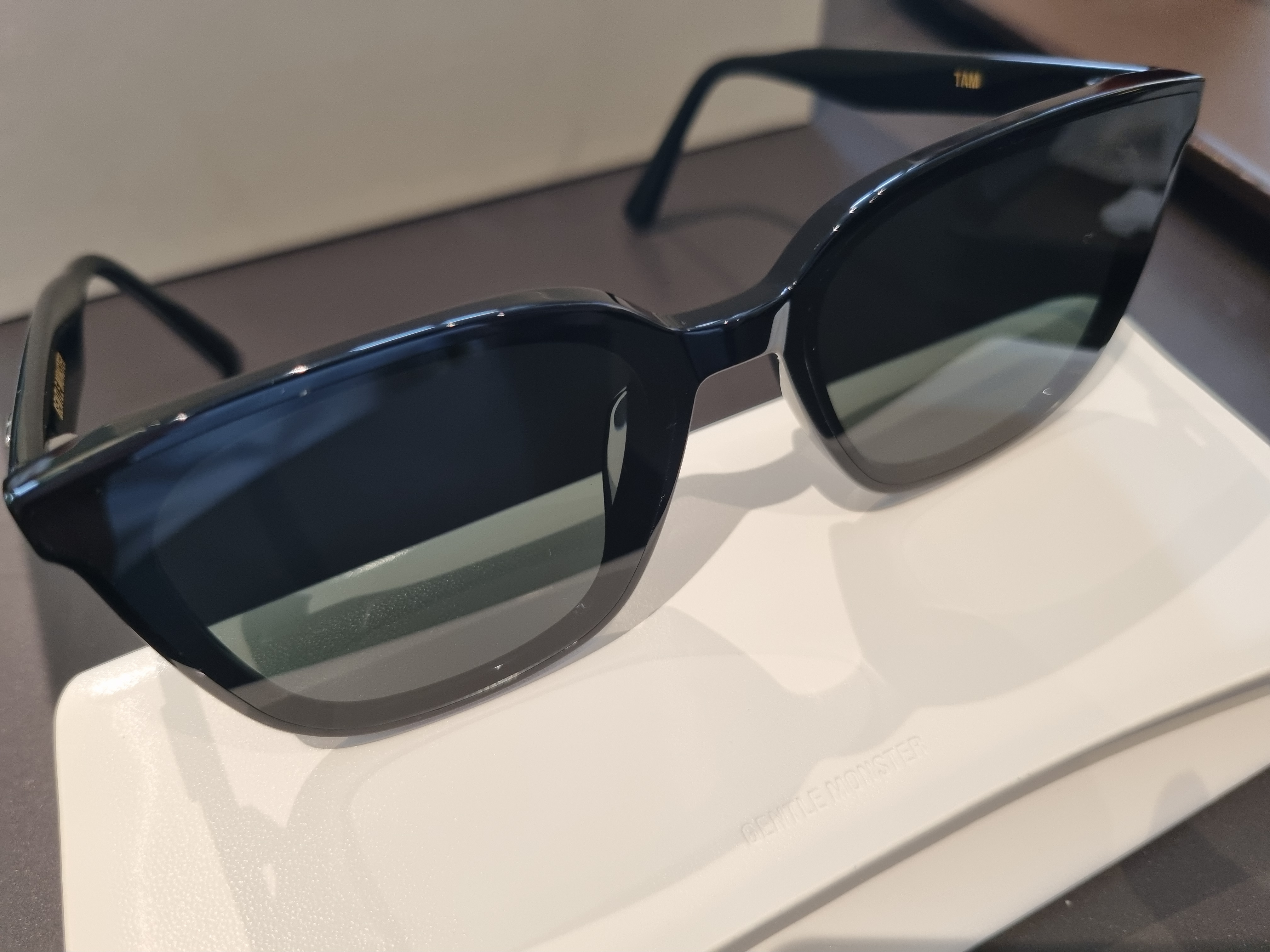 선글라스 알 색상은 블랙이며 테 안쪽에는 젠틀몬스터와 모델명인 TAM 각인되어 있습니다.