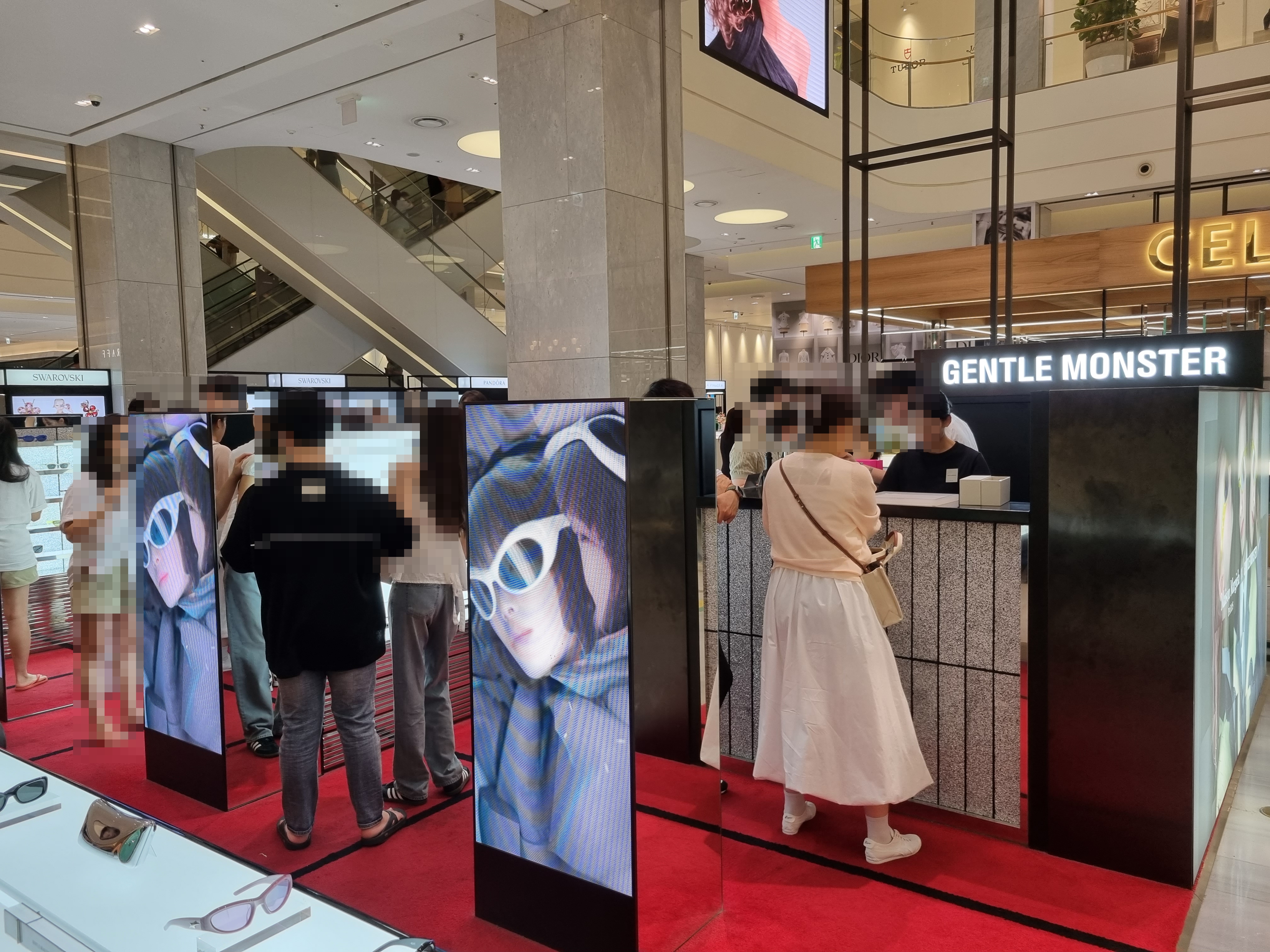 젠틀몬스터 판교점은 현대백화점 1층 에르메스 매장 바로 앞에 있습니다.