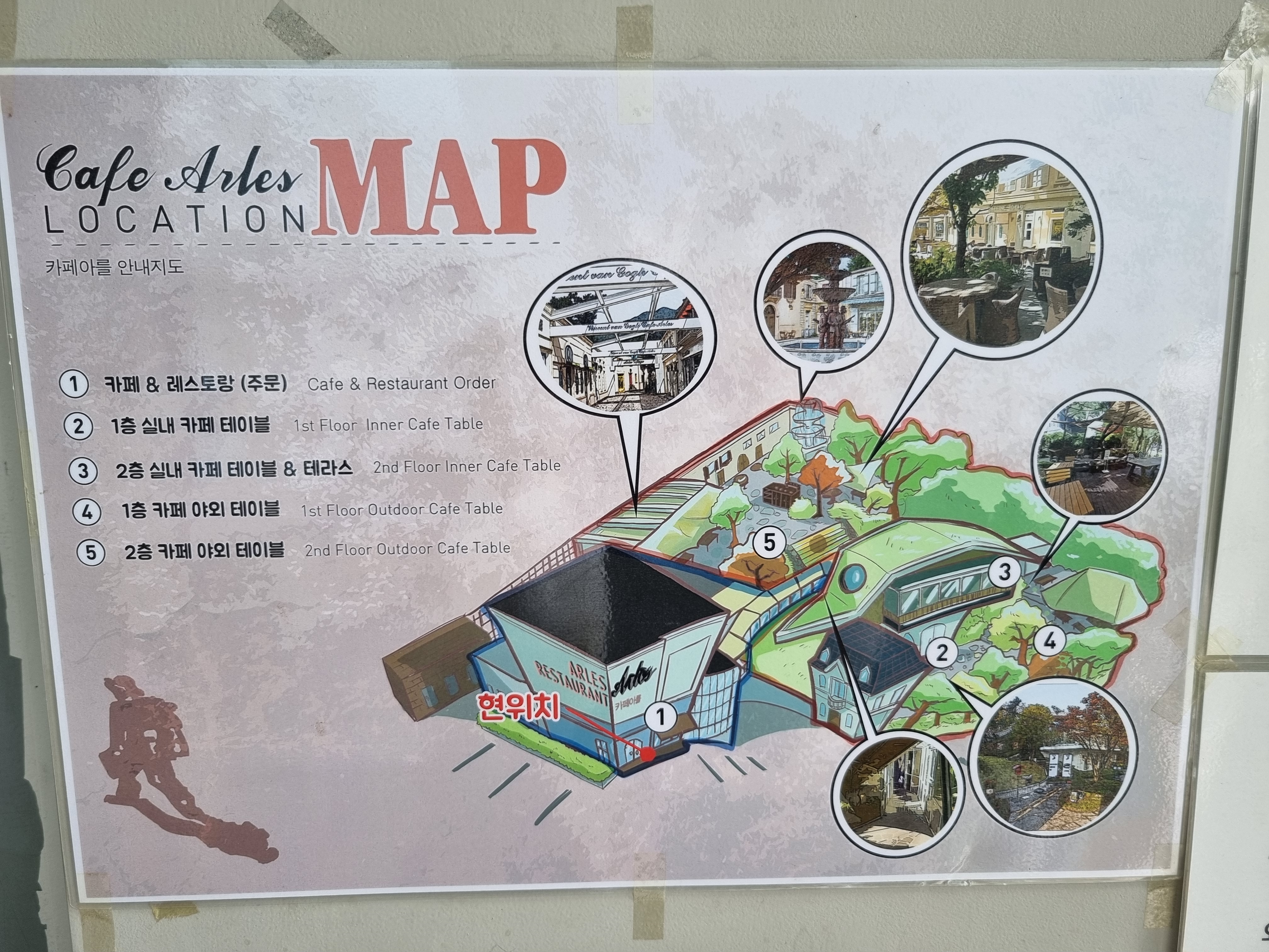 이렇게 입구를 들어서면 카페 아를 맵이 나오는데 많은 분들이 5번 위치에서 사진을 찍습니다.
