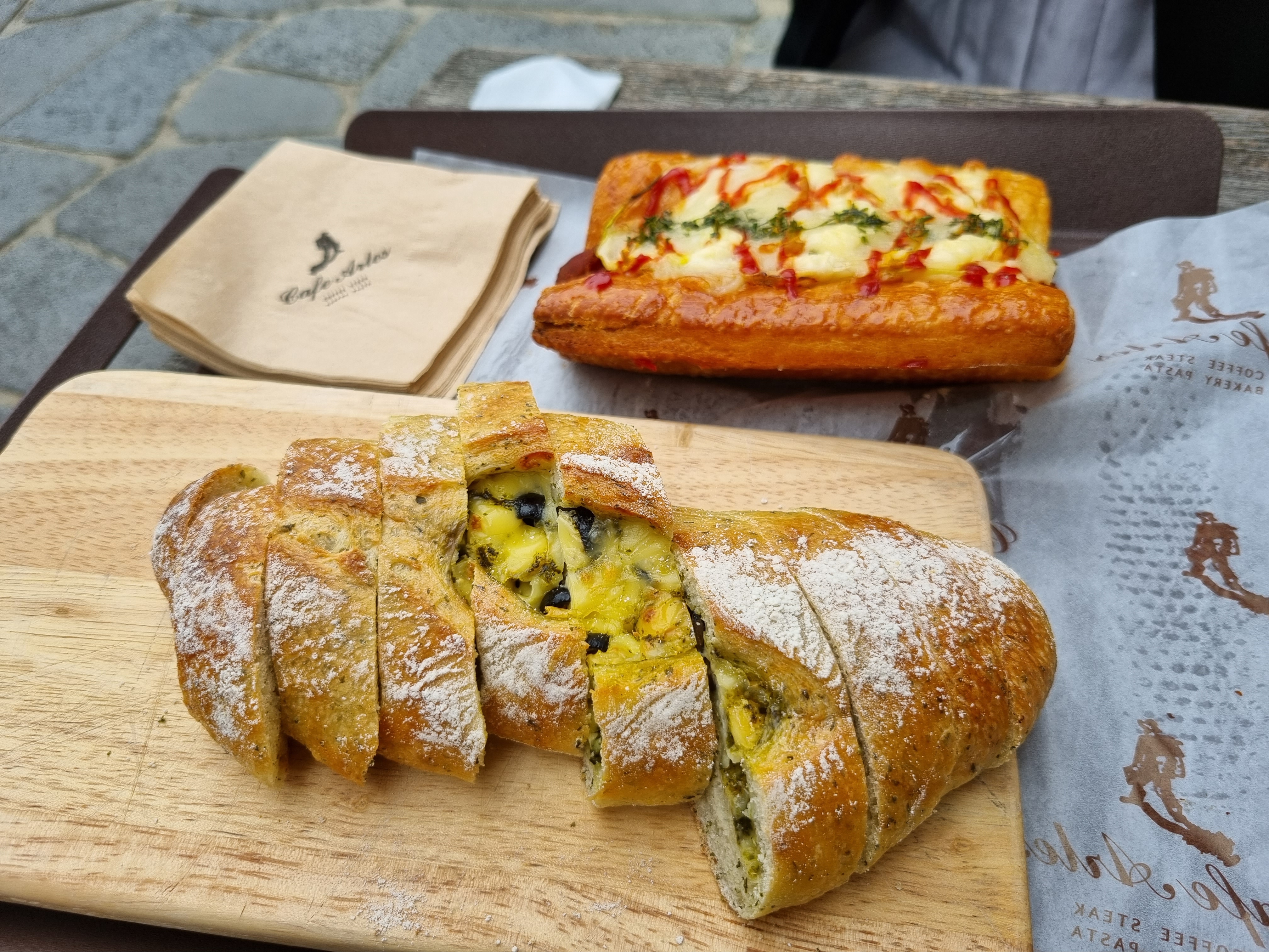 빵과 음료를 주문한 후 외부로 나가는 미로같은 길을 따라가보면 이처럼 야외 테이블이 있는 곳이 나옵니다.
