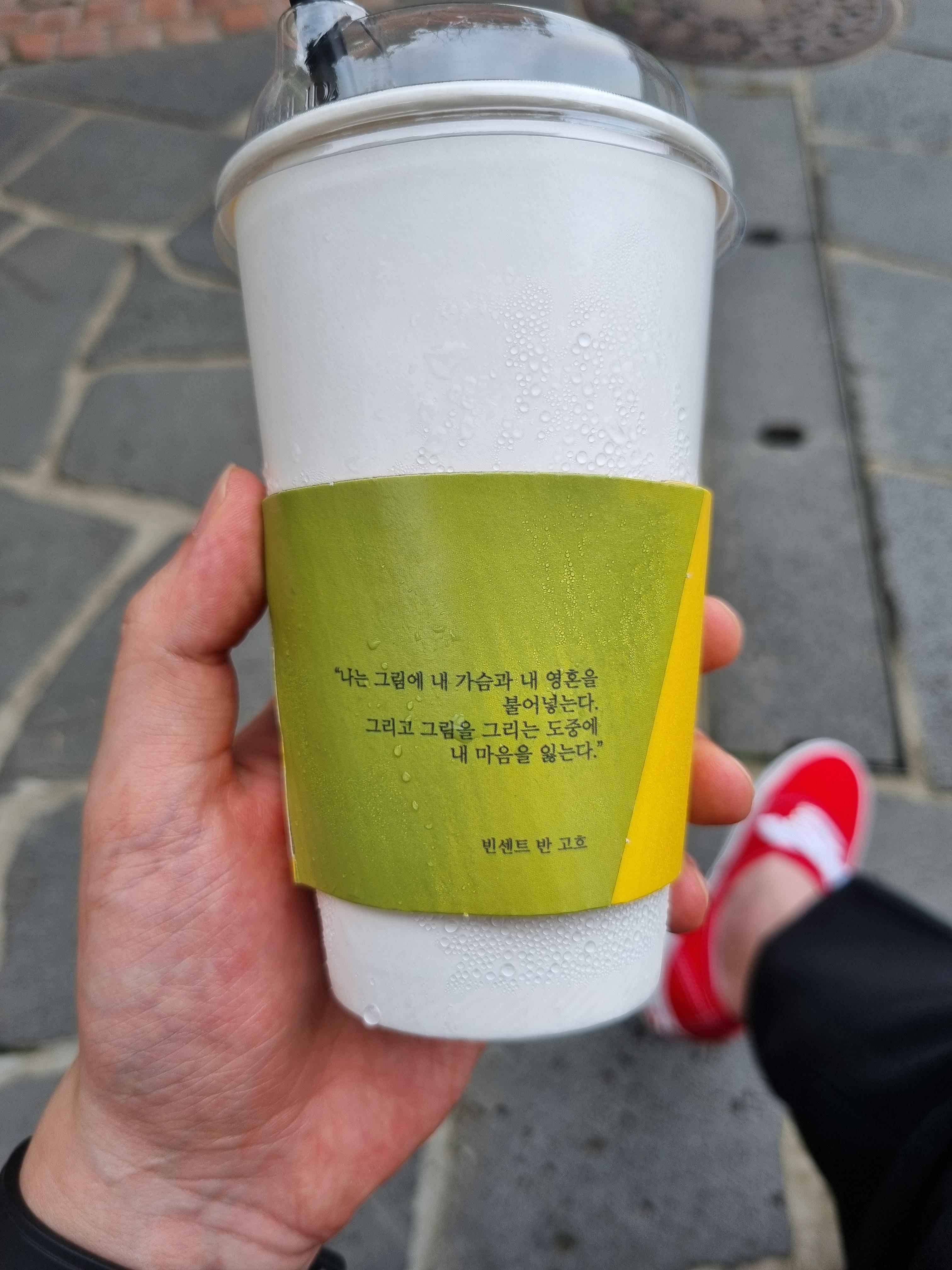 이렇게 커피컵에도 빈센트 반 고흐의 명언과 해바라기 그림이 그려져있습니다.