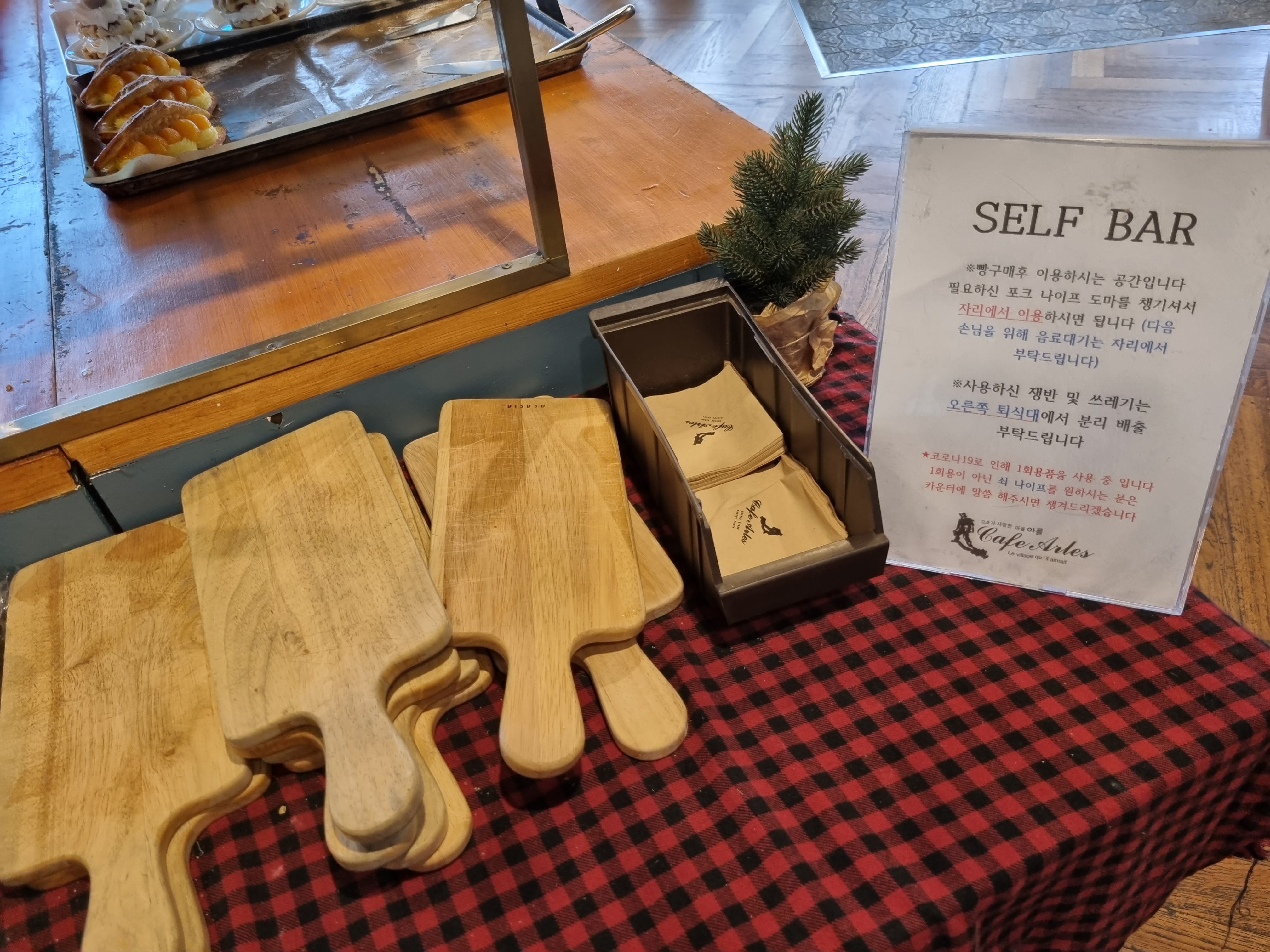빵을 구매한 후 이곳에서 도마와 나이프를 챙겨가시면 됩니다.