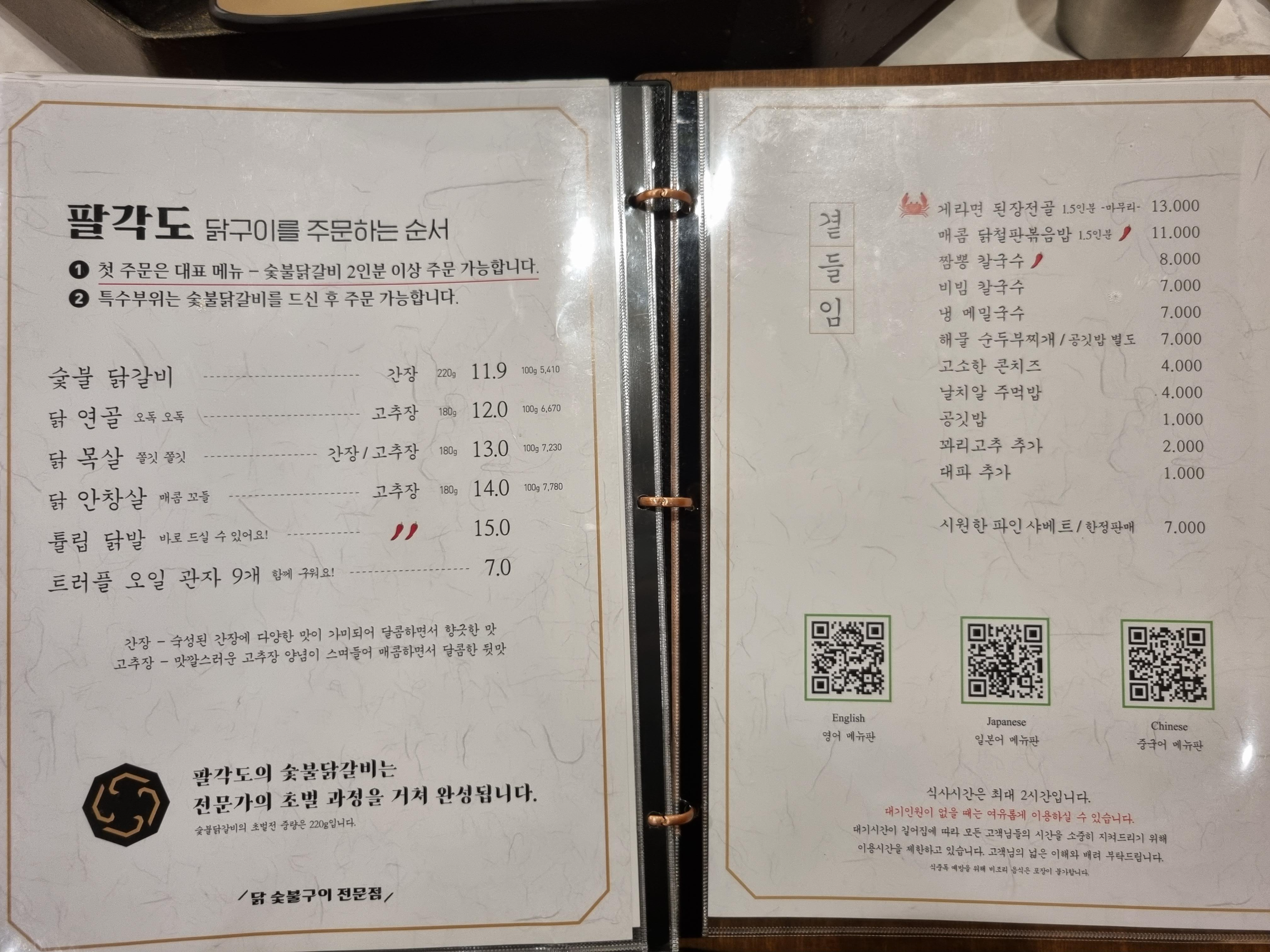 아주 지극히 개인적인 입맛으로는 팔각도 이곳도 맛있지만 닭고기는 숯불보단 철판이 맛있는것 같습니다.