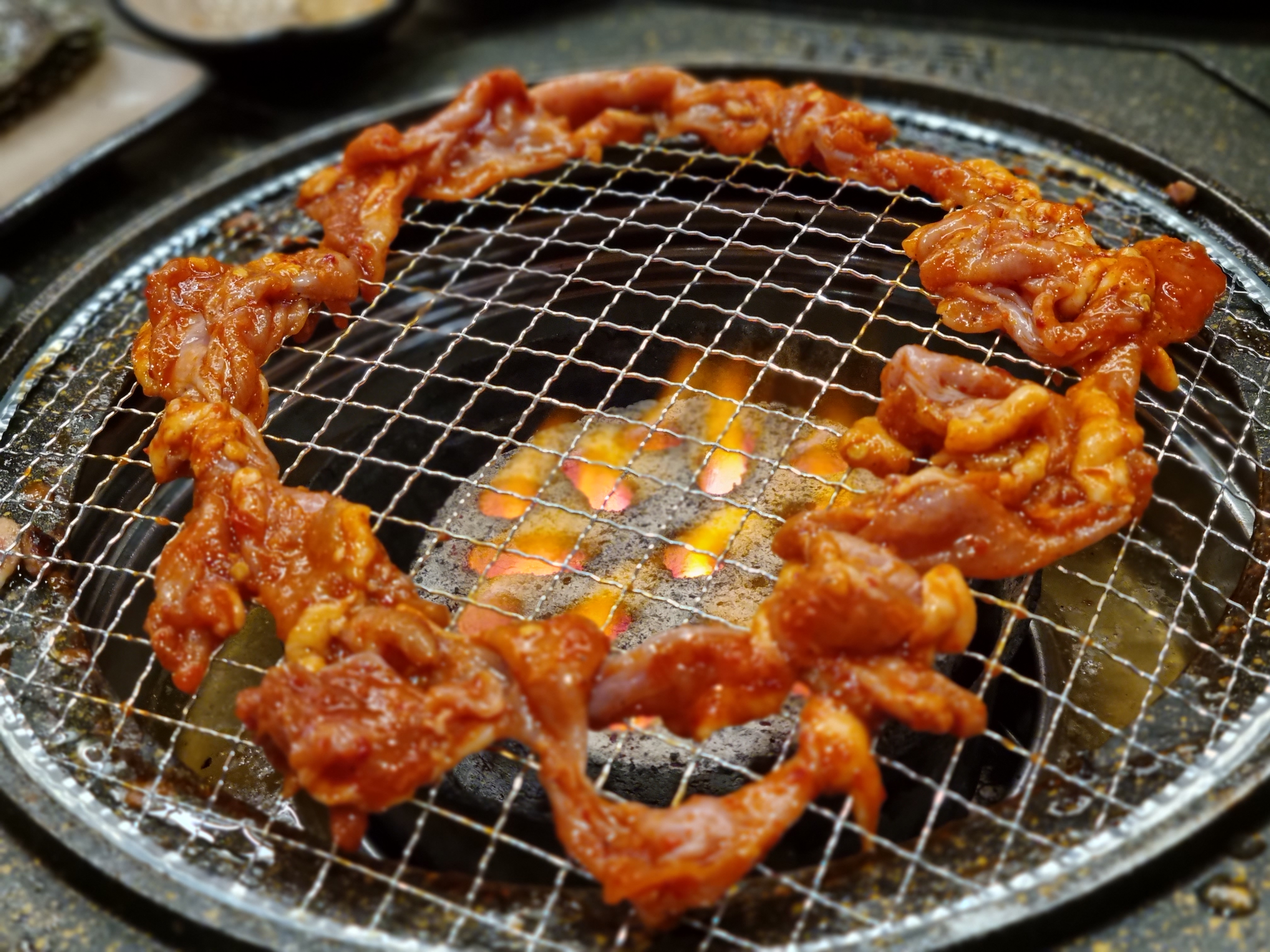 굽는데 좀 오래 걸리는 느낌이 있지만 돼지 또는 소고기와 달리 부드럽고 맛있습니다.